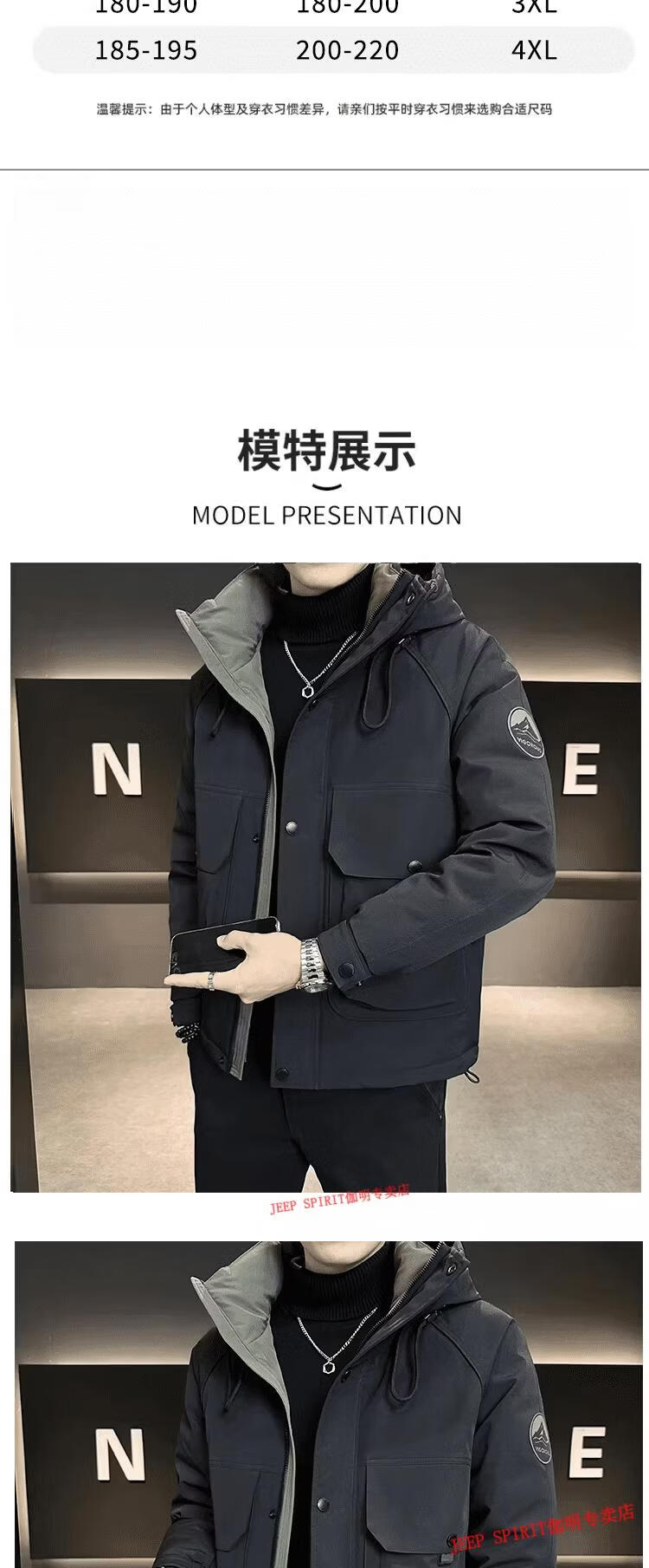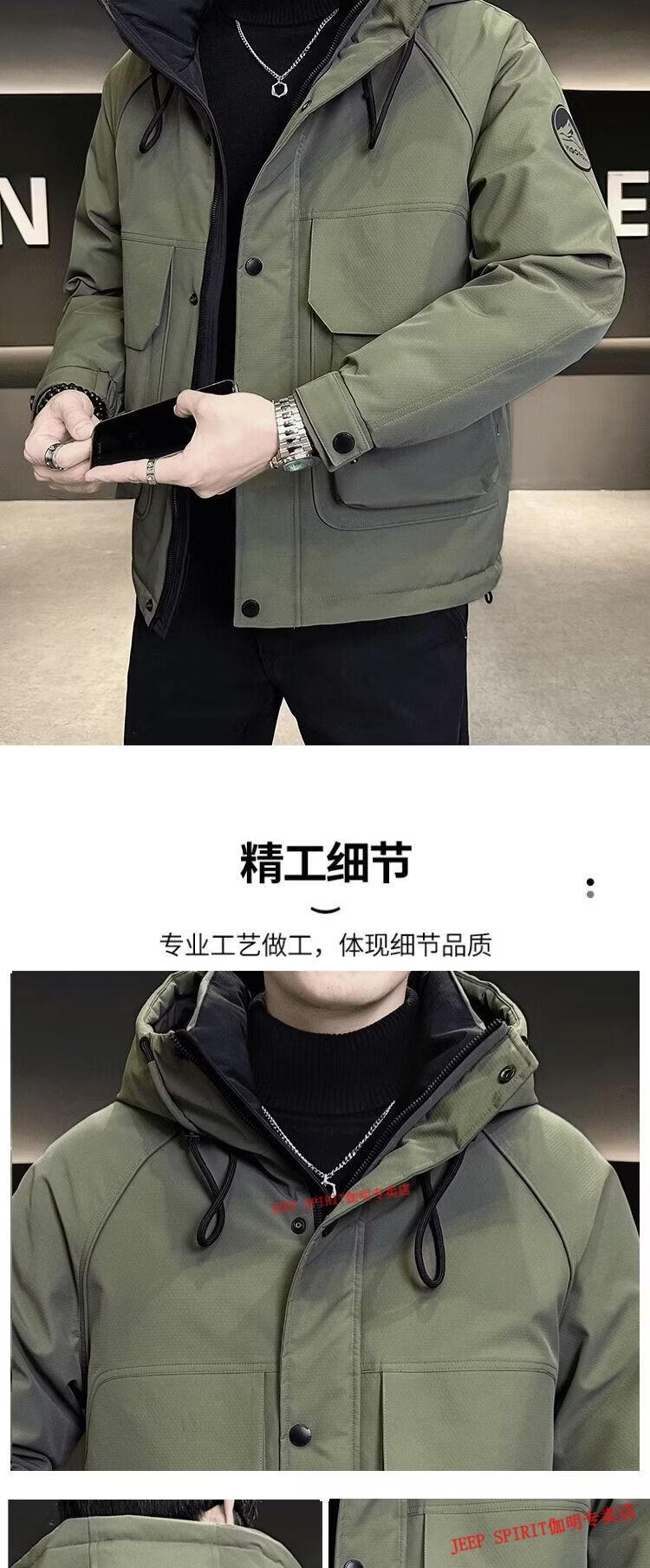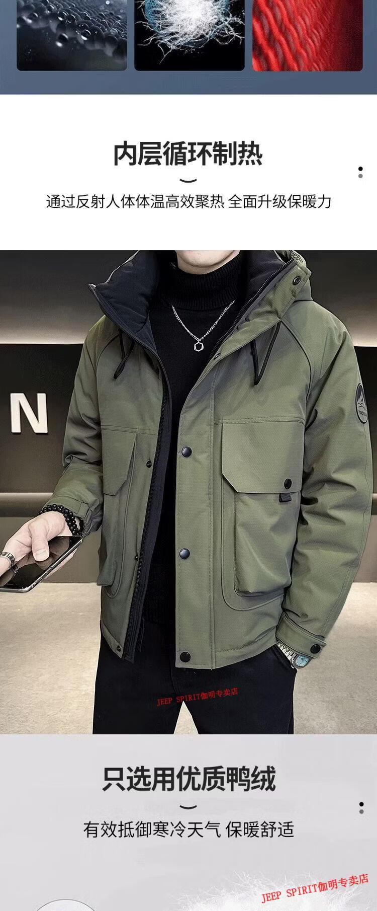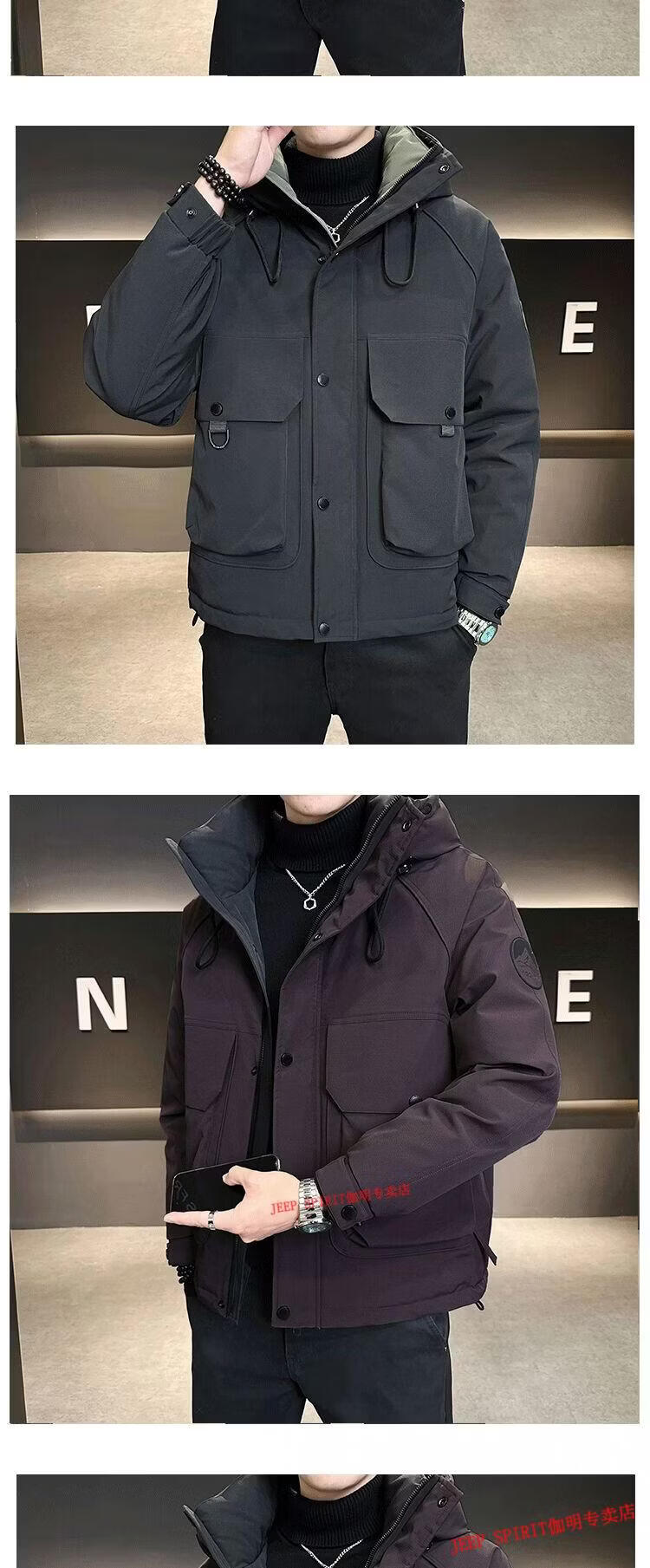 JEEP SPIRIT Jeep Down Jacket Men's Winter Thickened 2025 New Style Short Large Size Winter Outdoor Charge. Jacket Workwear Purple M