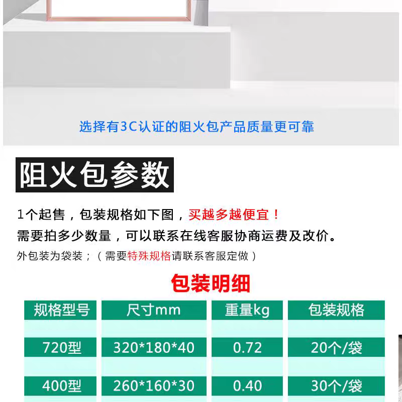 Gongma cable blocking fireproof package 250 type 400 type 720 fireproof package bridge frame fire pillow expansion fire protection 3C certification factory standard standard 720 type (one large bag of 20 packages)