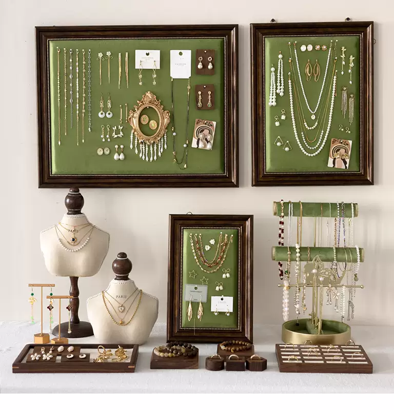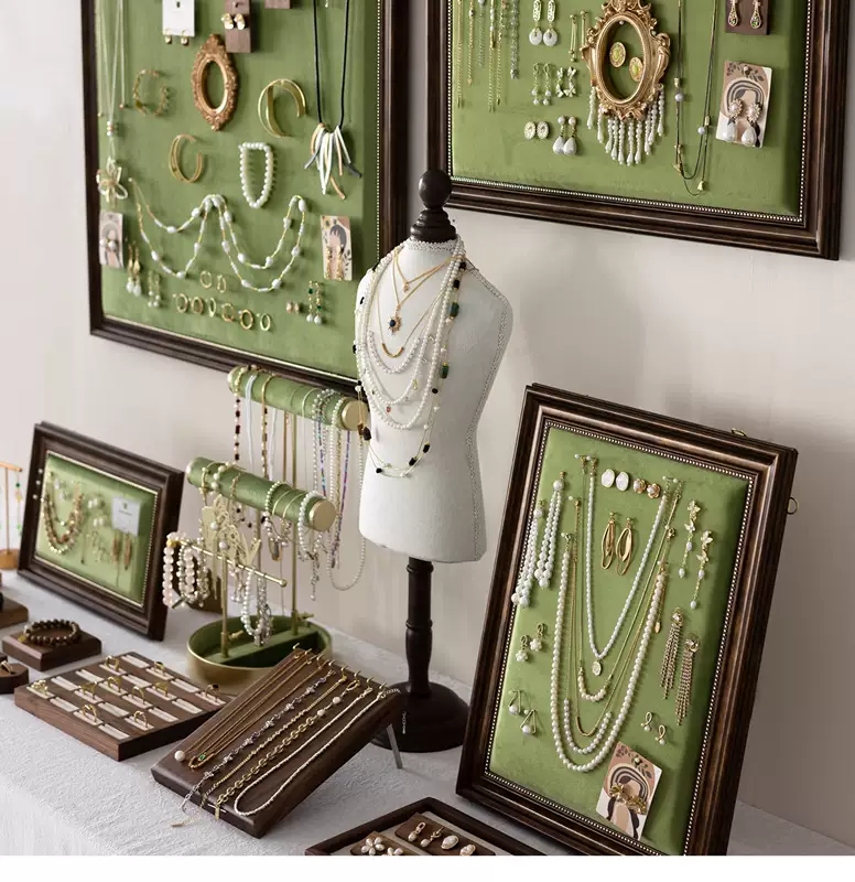Yusenyi Standing Retro Photo Frame Jewelry Display Rack Wall-mounted Jewelry Necklace Earrings Bracelet Jewelry Counter Stall Display Soft Pack Jewelry Display Frame Medium Size Can Be Wall-Hung Can Stand 1 Floor