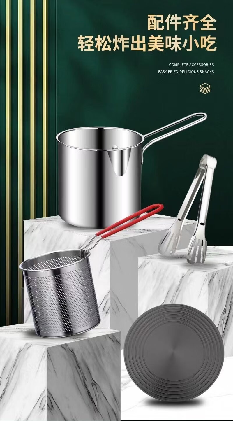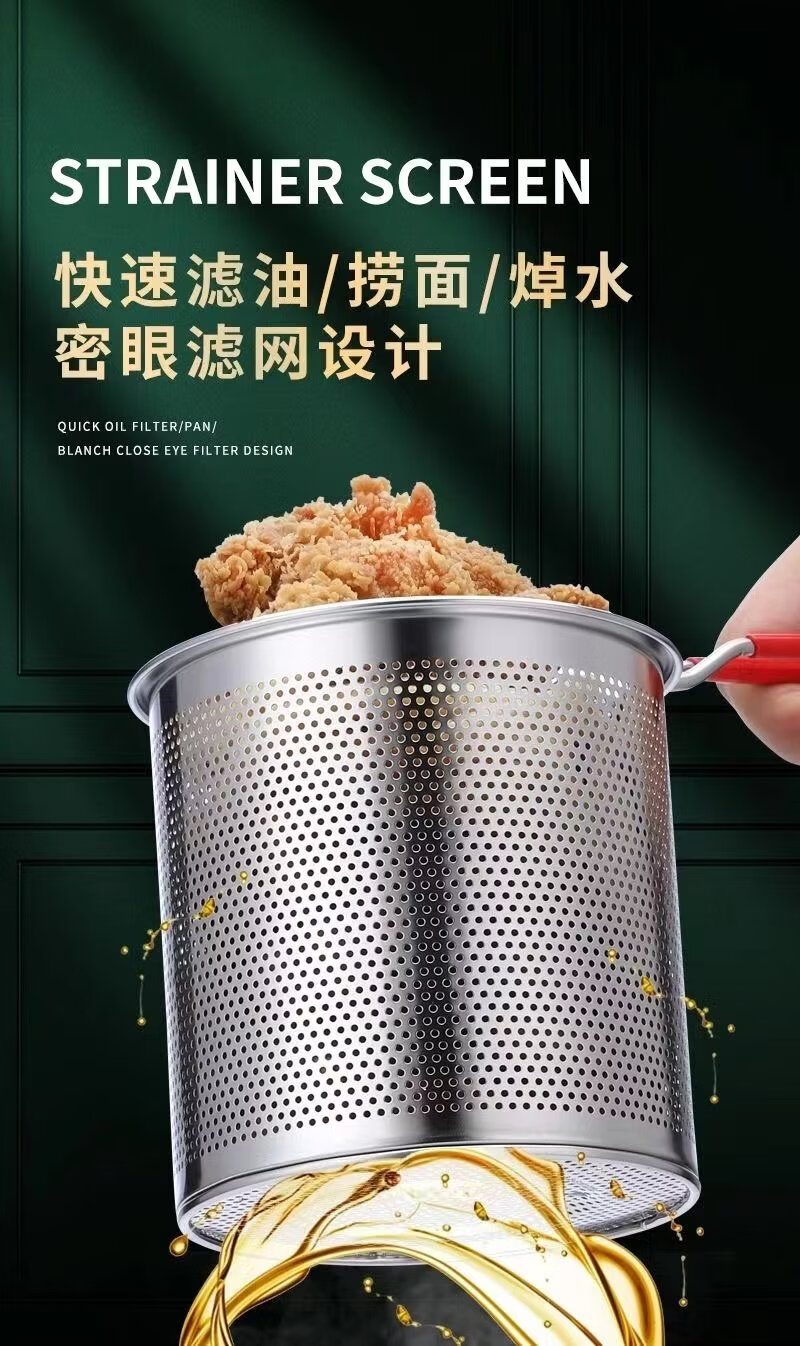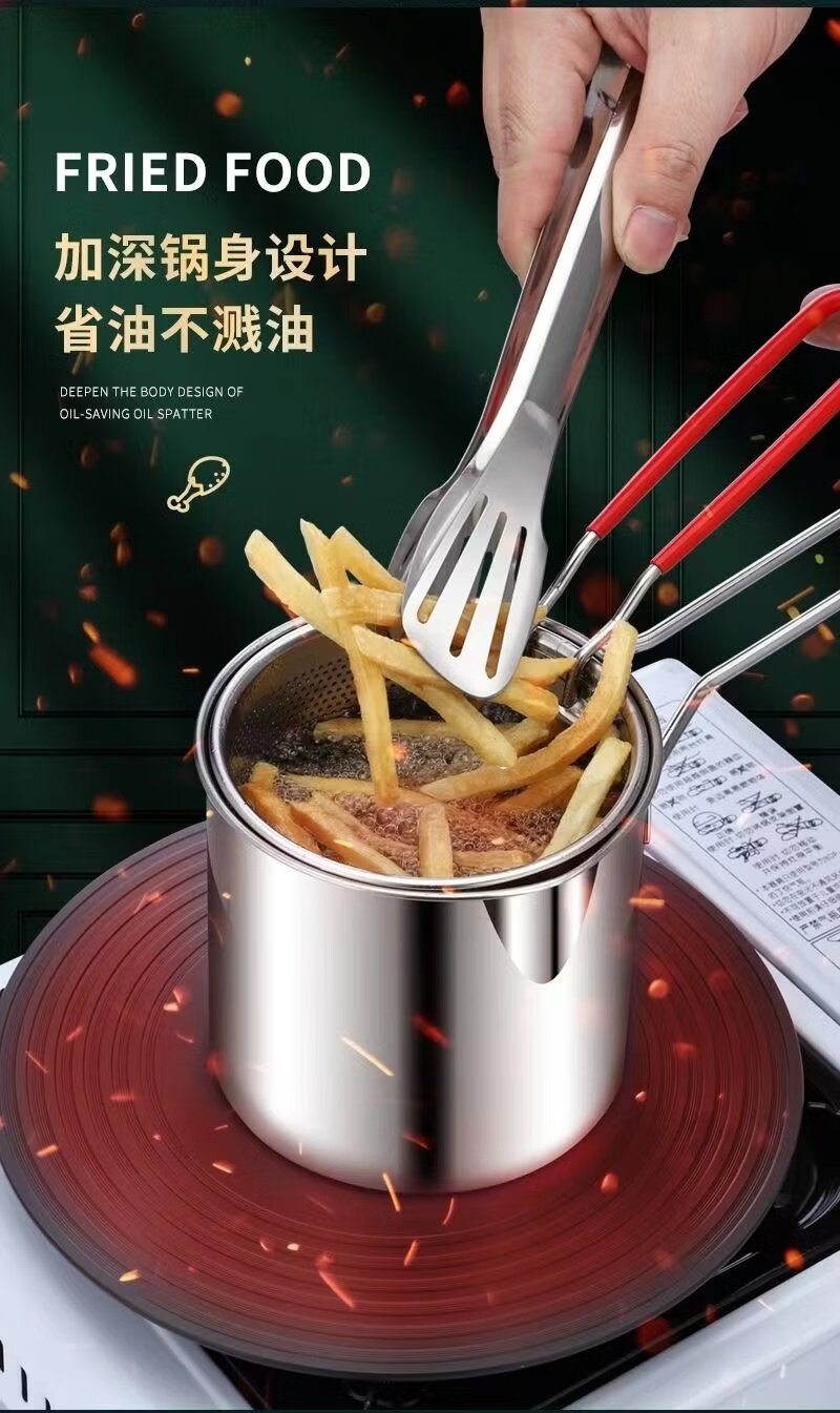 ZWILLING German quality 304 stainless steel frying pan household small frying pan with filter induction cooker gas pass (small size) stainless steel 304 frying pan + frying basket 1 inch 1200ml