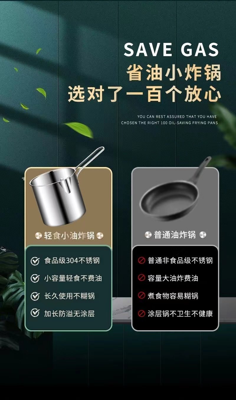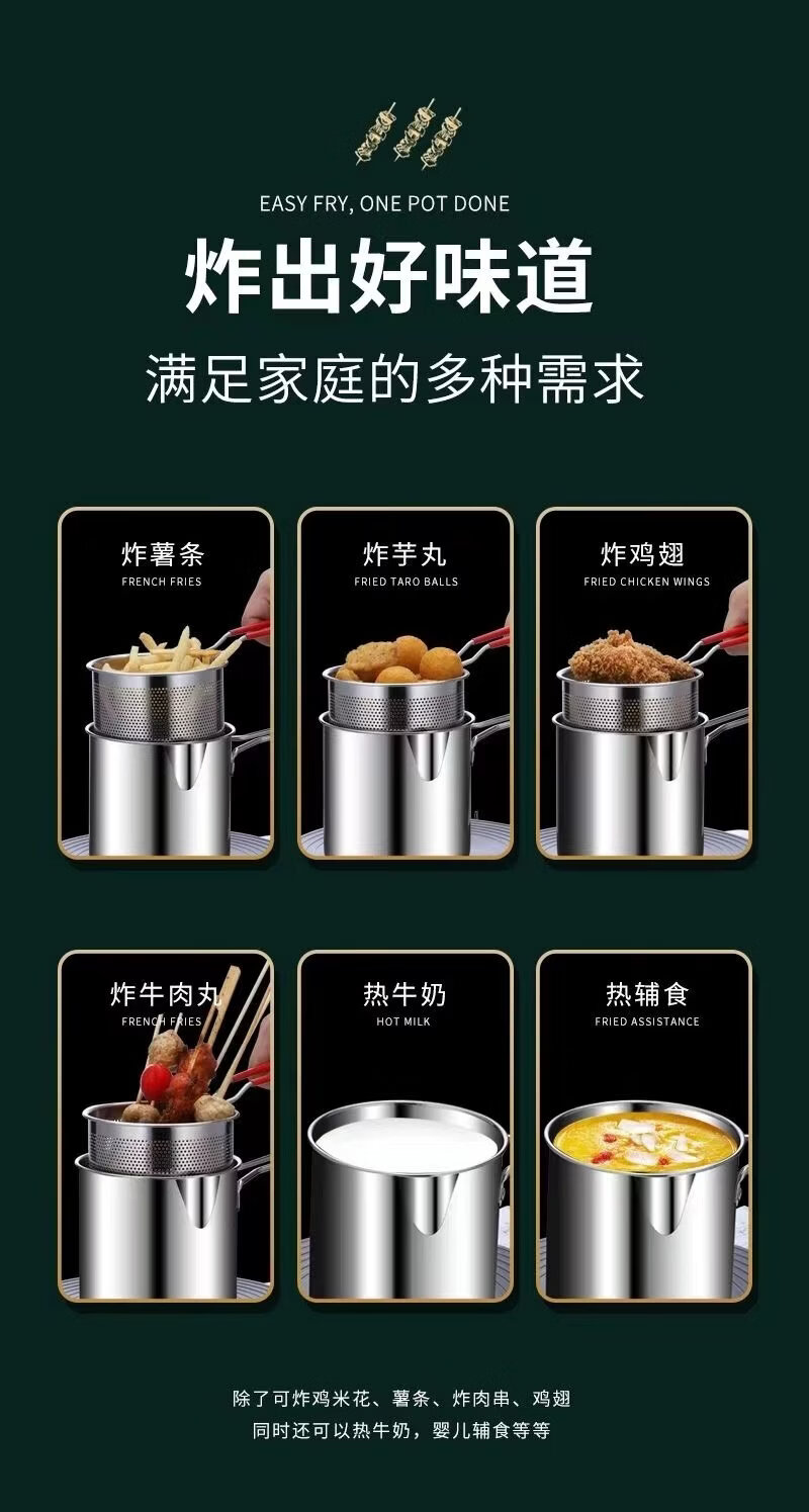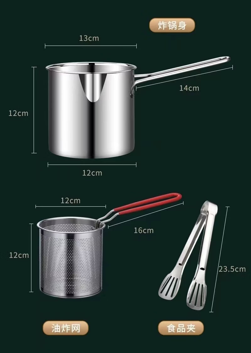 ZWILLING German quality 304 stainless steel frying pan household small frying pan with filter induction cooker gas pass (small size) stainless steel 304 frying pan + frying basket 1 inch 1200ml