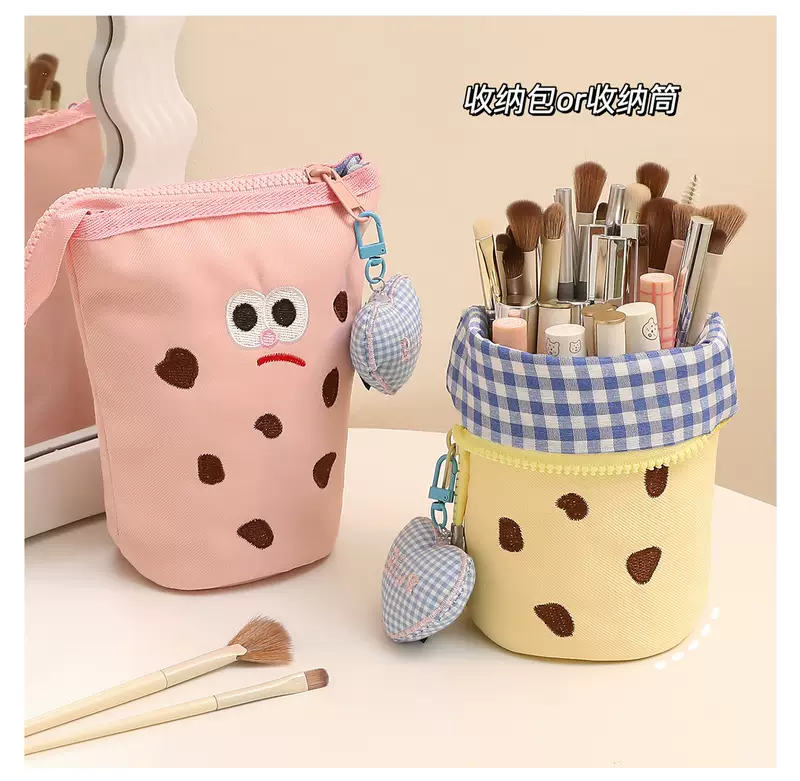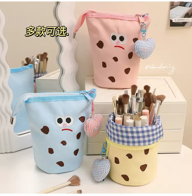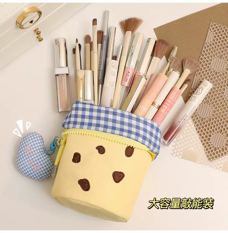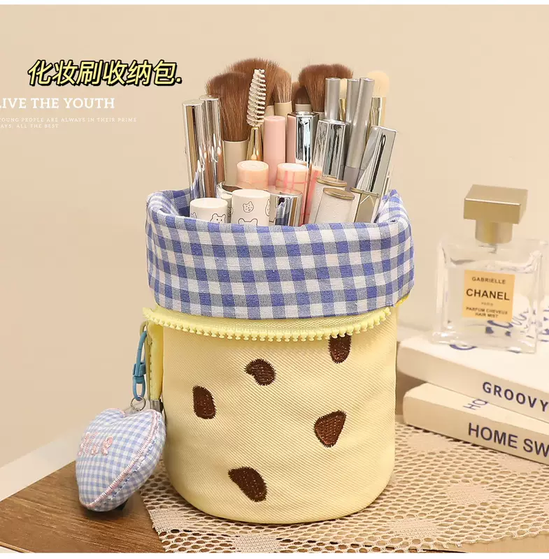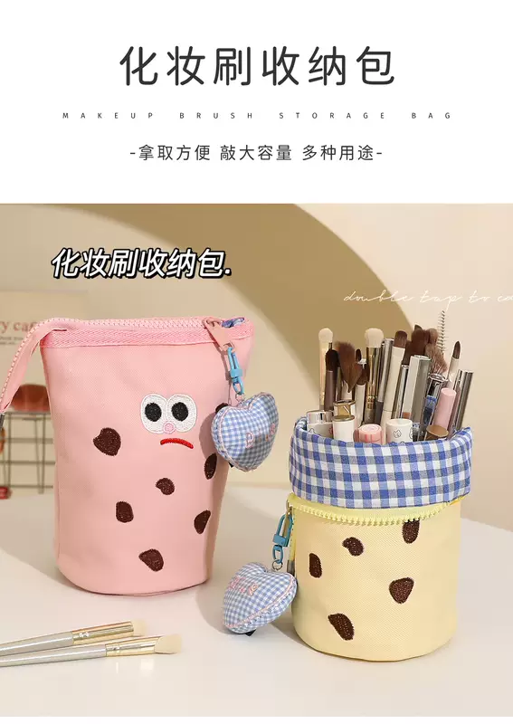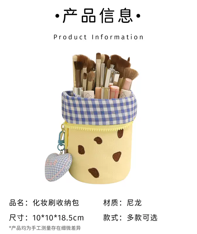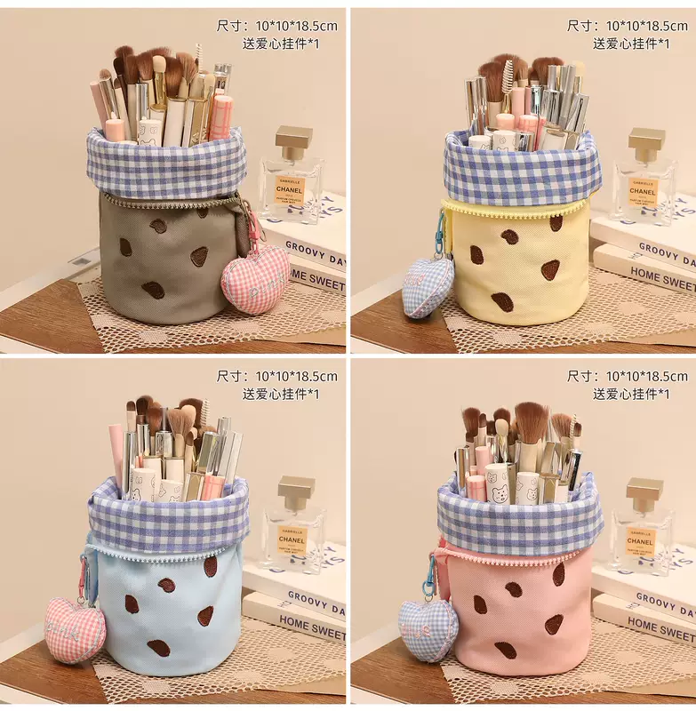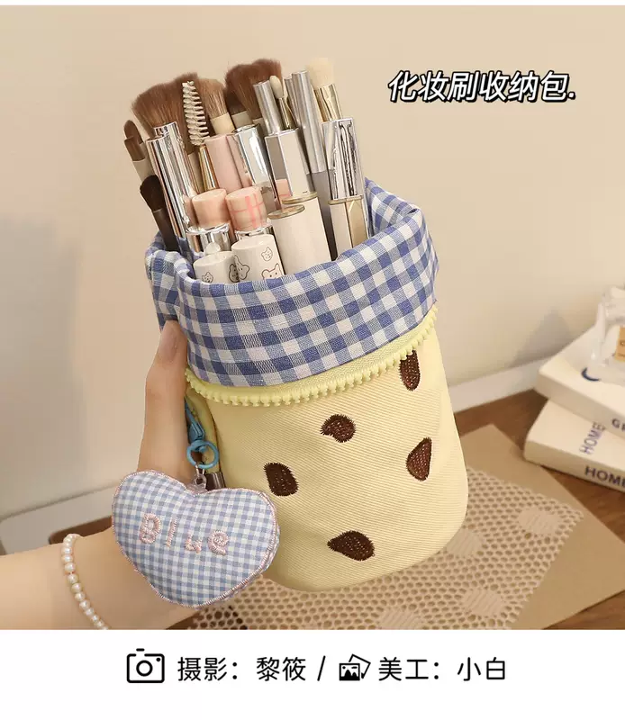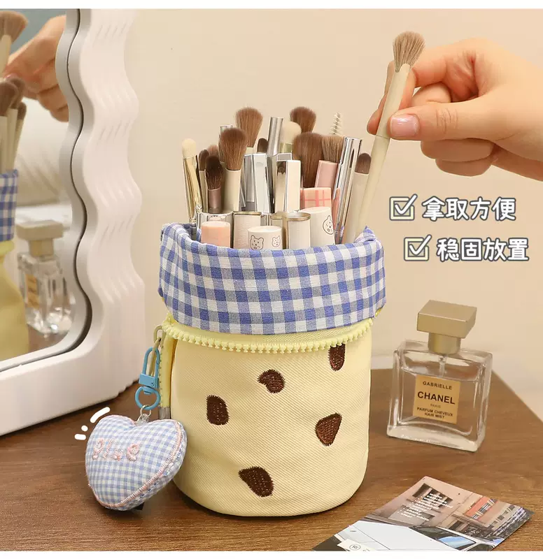 Yusenyi Makeup Brush Storage Bag Portable Upright High-Looking Large Capacity Cute Makeup Brush Box Lipstick Eyebrow Pen Makeup Brush Bucket Blue Cookie x Free Love Pendant Blue Cookie x Free Love pendant