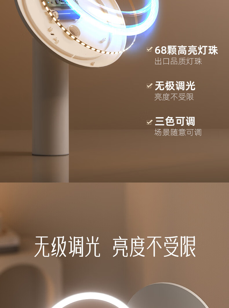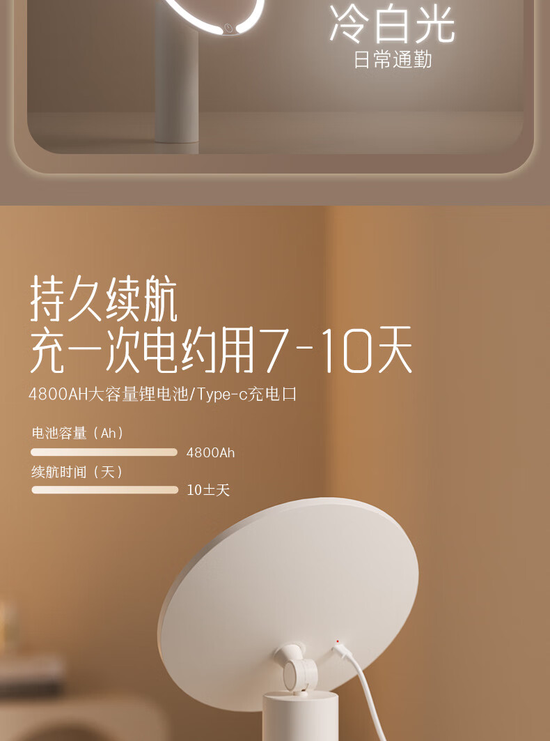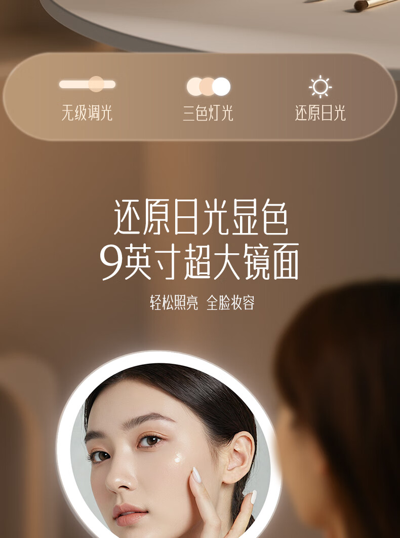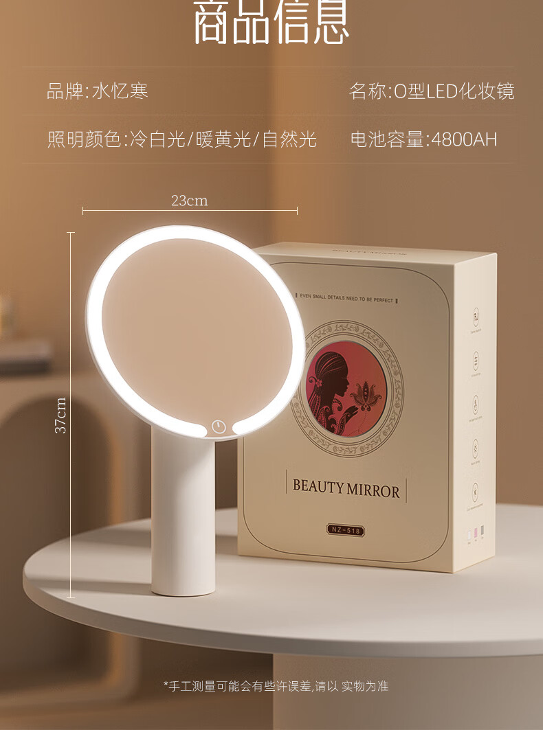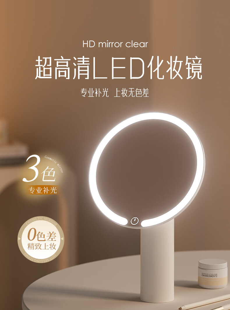 Mirror makeup mirror LED with light smart office desktop desktop home luminous dressing high-definition light luxury space silver + gift box-2400AH