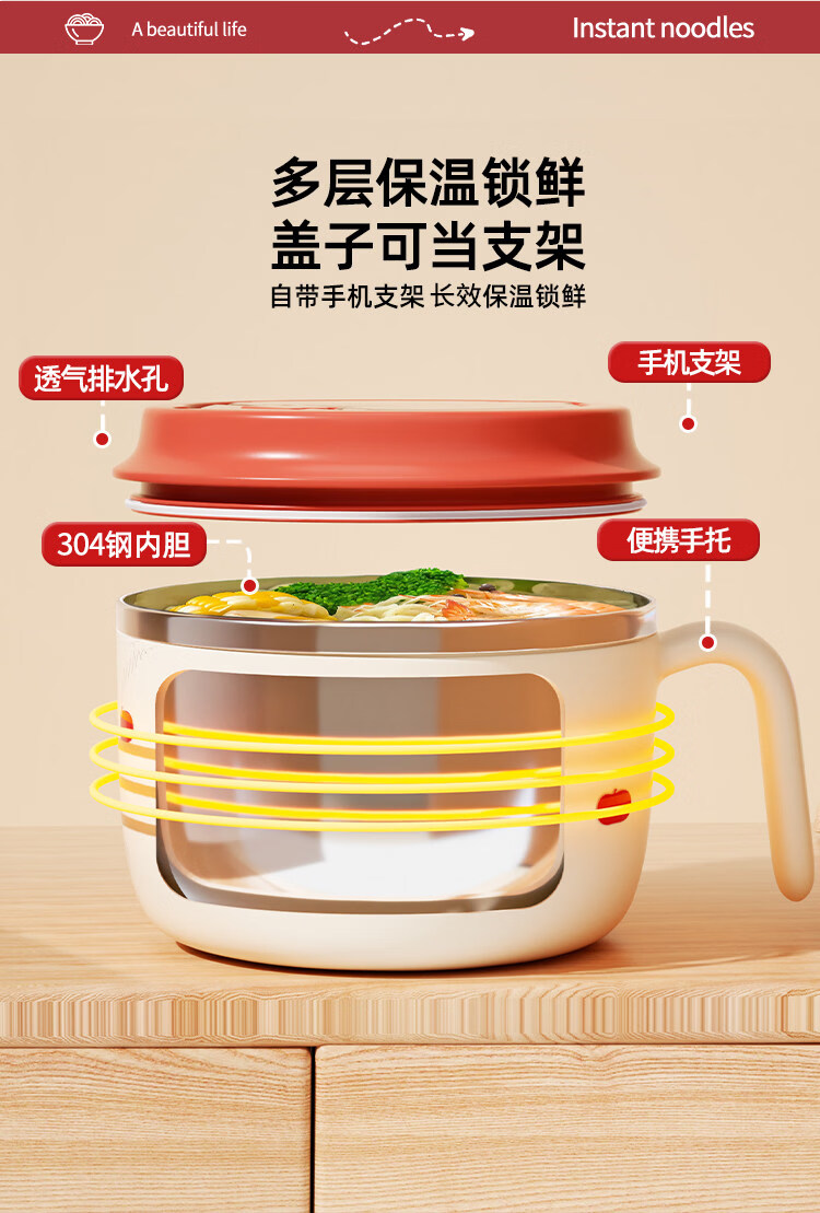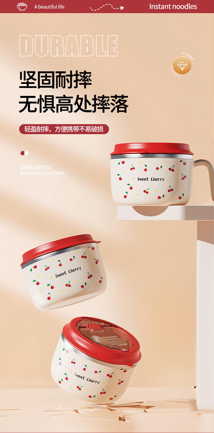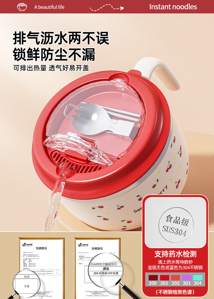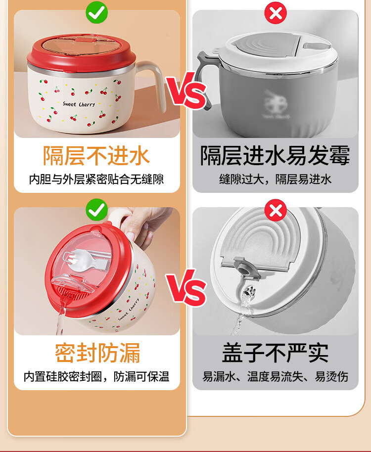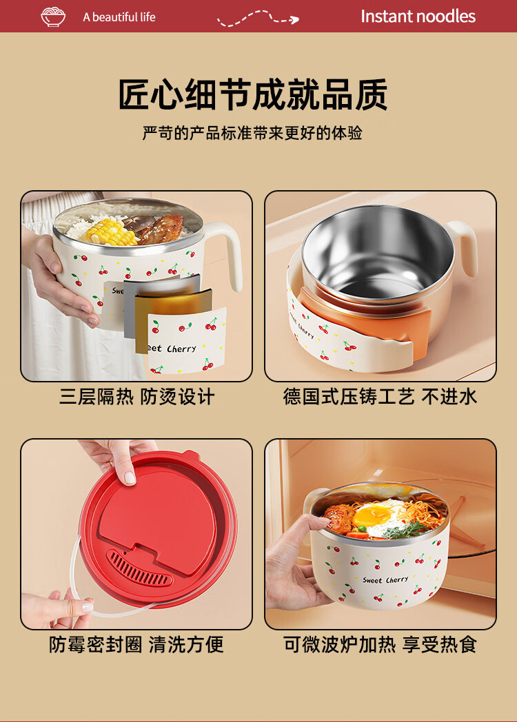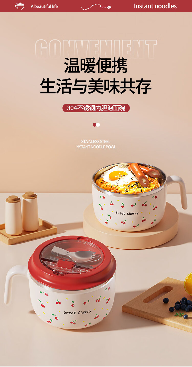 Tuojin stainless steel instant noodle bowl with lid for student dormitory, portable lunch box and chopsticks set for work, 304 steel, Black Cat joint model + tableware 1350ml