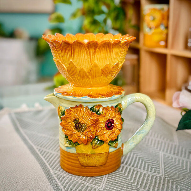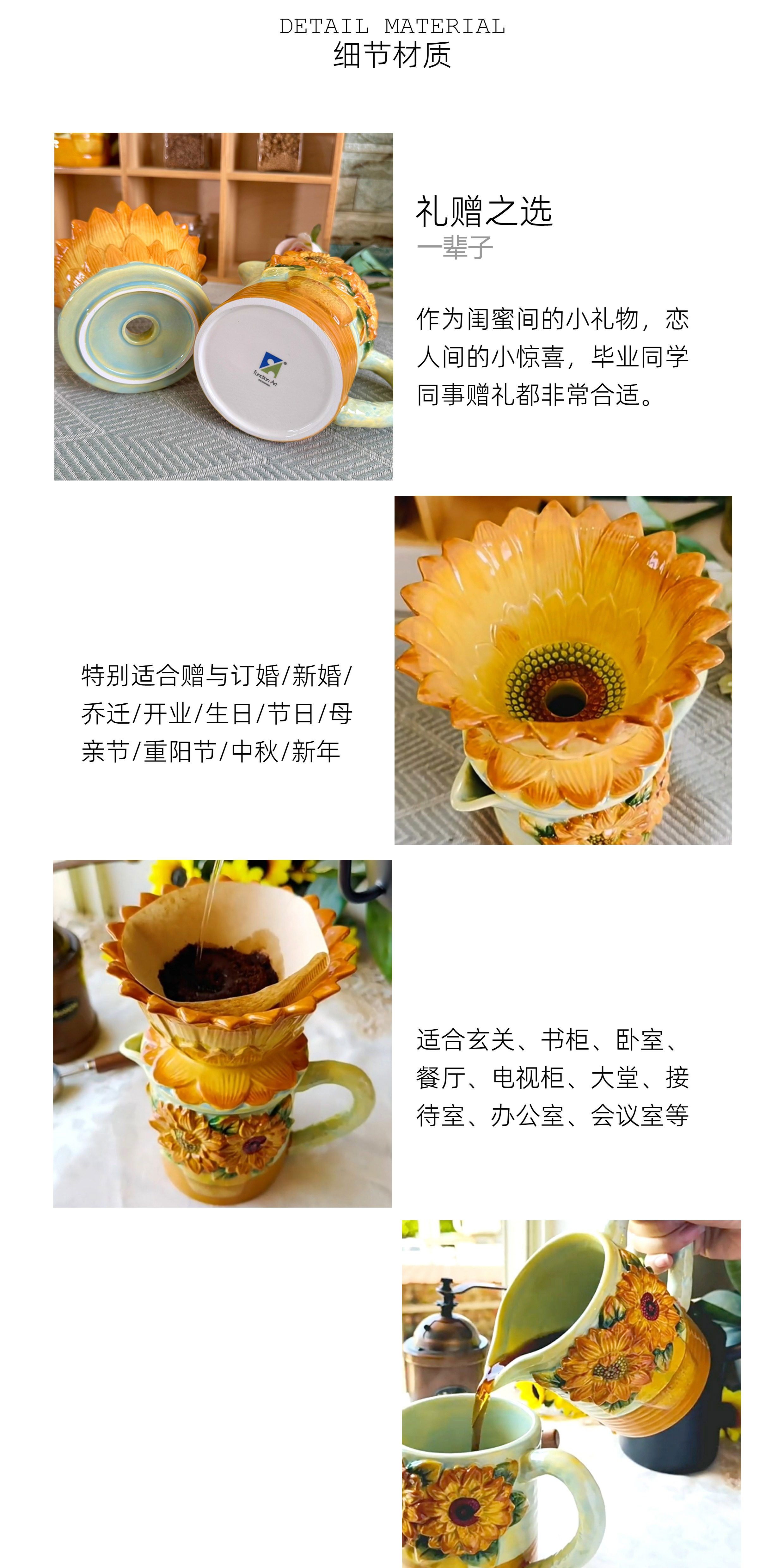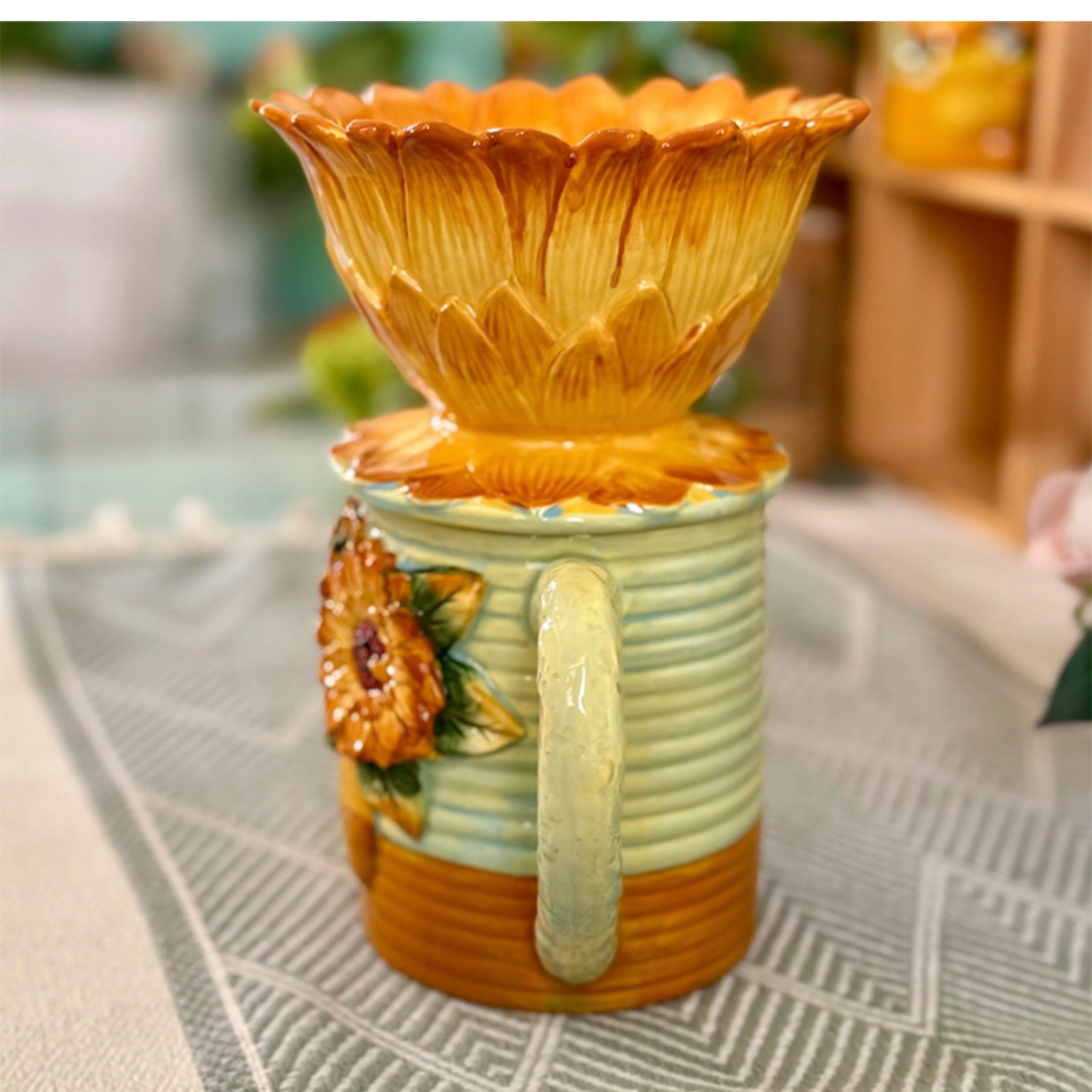 Van Gogh Ceramic Cup Sunflower Creative Personality Trendy Literary Oil Painting Style Hand-brewed Coffee Filter Pot Filter Cup Van Gogh Sunflower Filter Cup 600ml