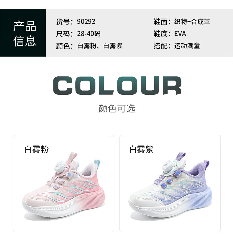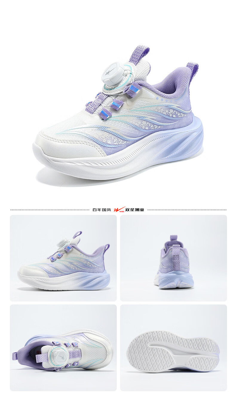 Double Star (shuangxing) Double Star Children's Shoes Girls' Shoes 2026 Spring New Style Mesh Breathable Girls Soft Soled Casual Shoes Children's Sports Shoes 90293 White Mist Purple (Mesh Breathable) Size 37 37 The inner length of the shoe is about 23.5cm