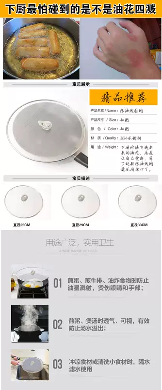 Yusenyi food-grade round oil-proof net stainless steel oil-proof net for frying vegetables and fish anti-oil explosion net oil-proof cover oil cover round 25CM