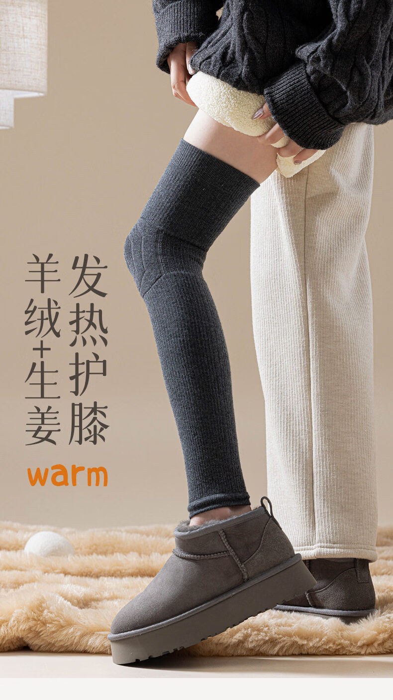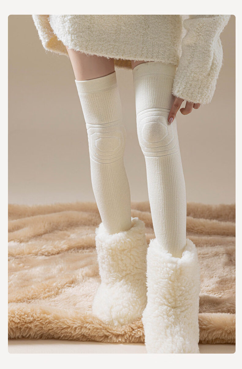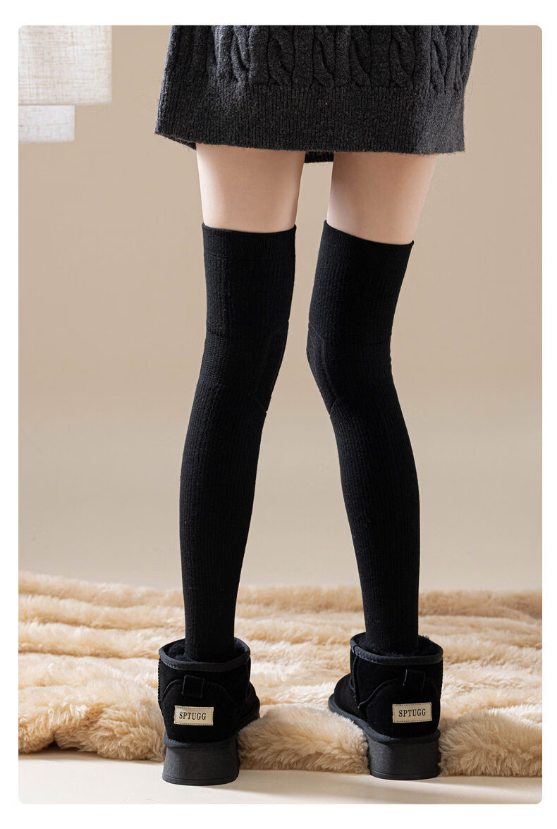 Shijanu Velvet Ginger Heated Velvet Knee Socks for Women Anti-Slip - Velvet Ginger Heated Knee Socks Black + White 2 Pairs