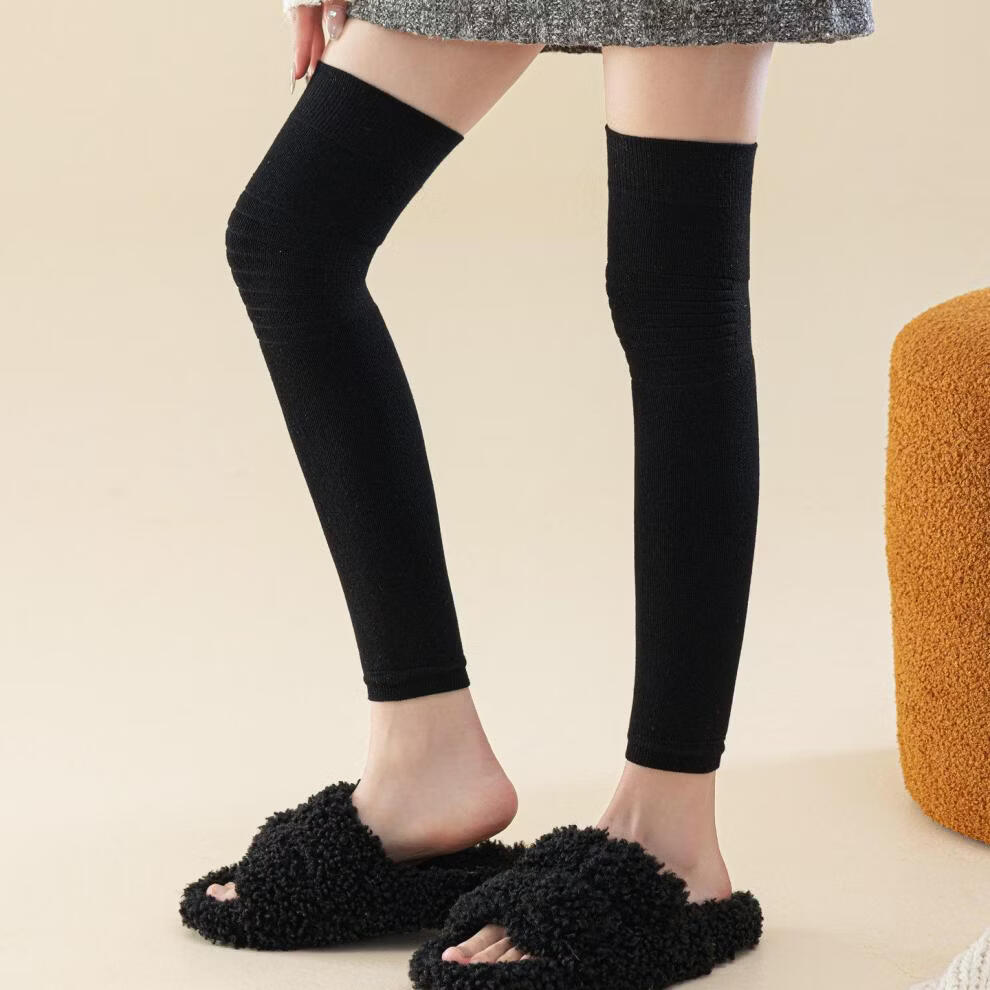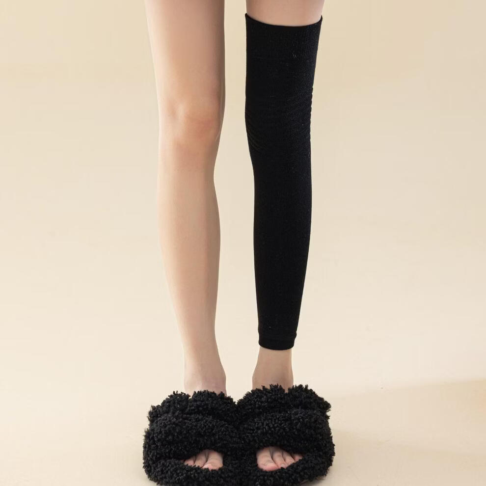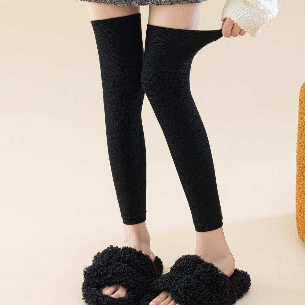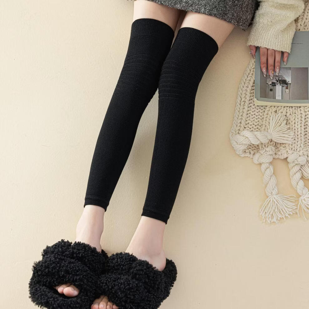Shijanu's new thickened terry knee socks for women, autumn and winter high-top over-the-knee anti-slip stockings XC2413 wool socks set_black 1 pair one size