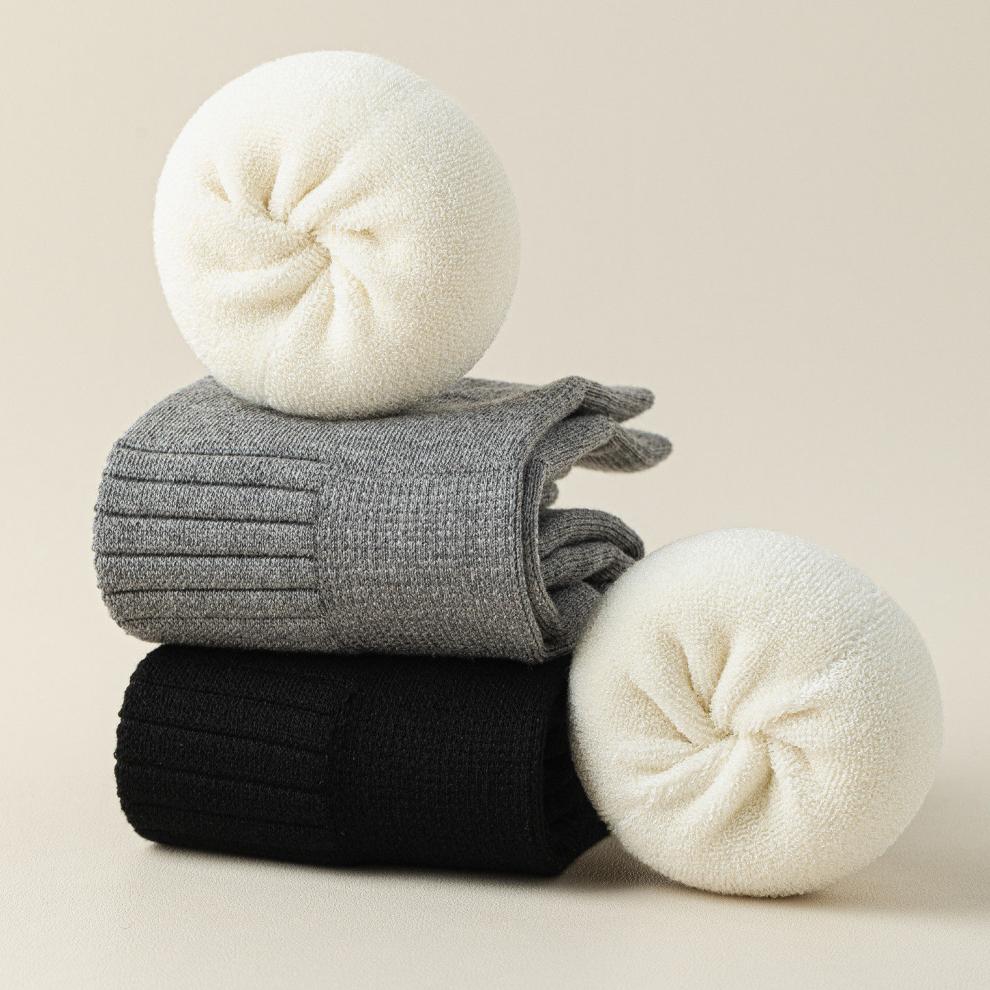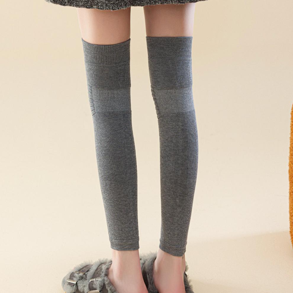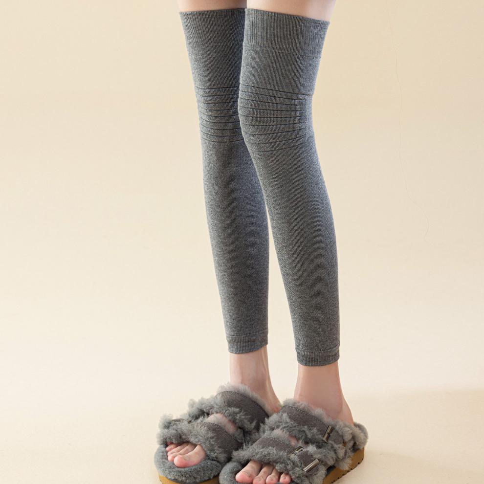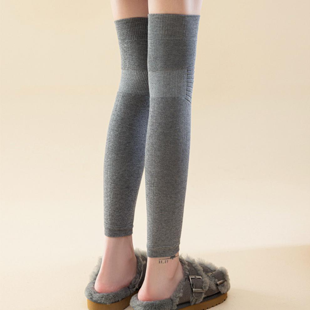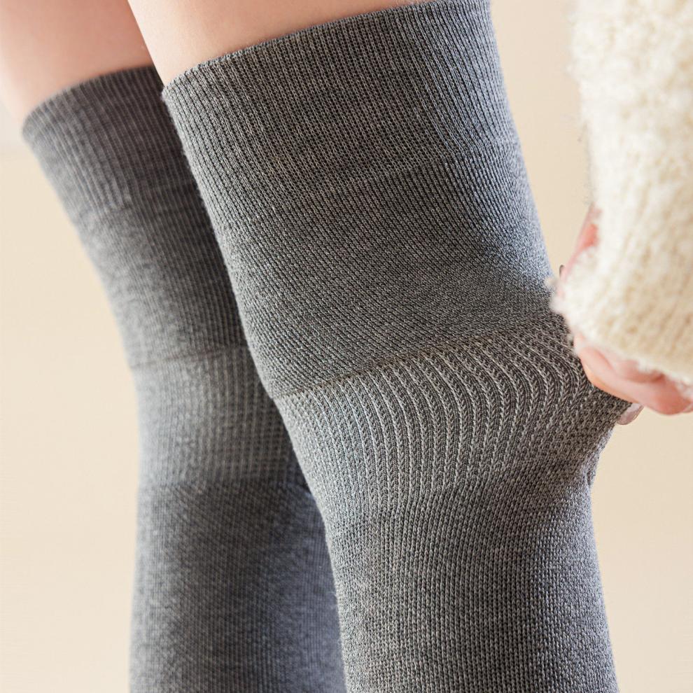 Shijanu's new thickened terry knee socks for women, autumn and winter high-top over-the-knee anti-slip stockings XC2413 wool socks set_black 1 pair one size