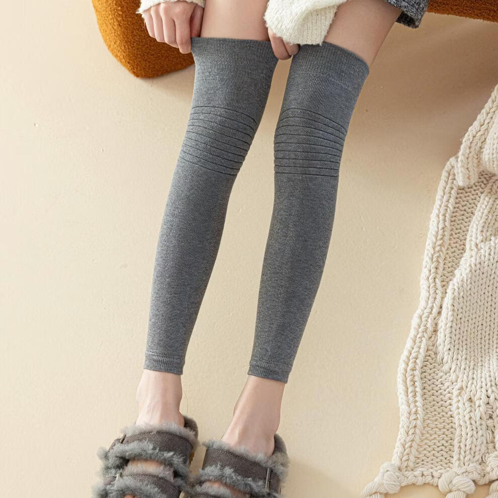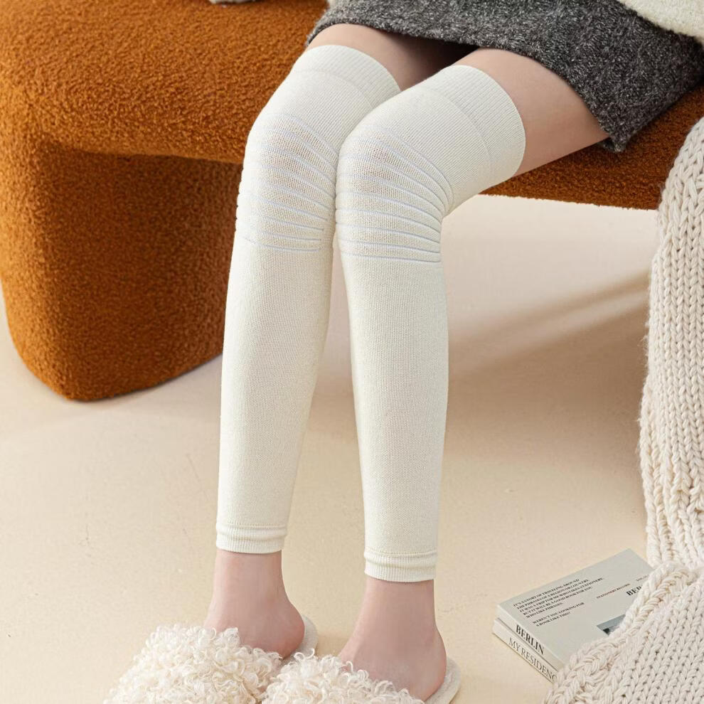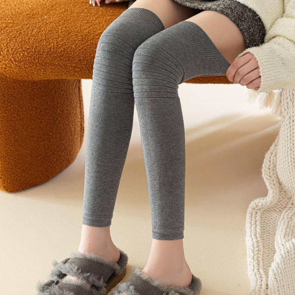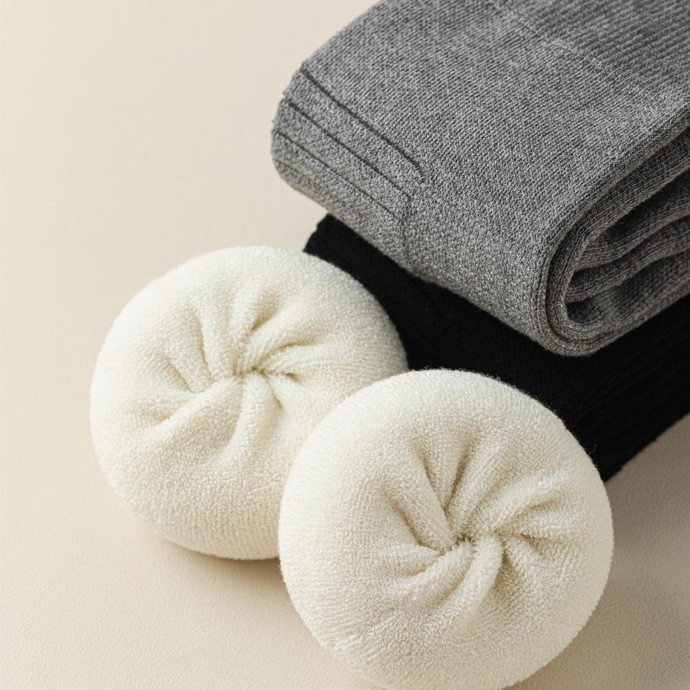 Shijanu's new thickened terry knee socks for women, autumn and winter high-top over-the-knee anti-slip stockings XC2413 wool socks set_black 1 pair one size