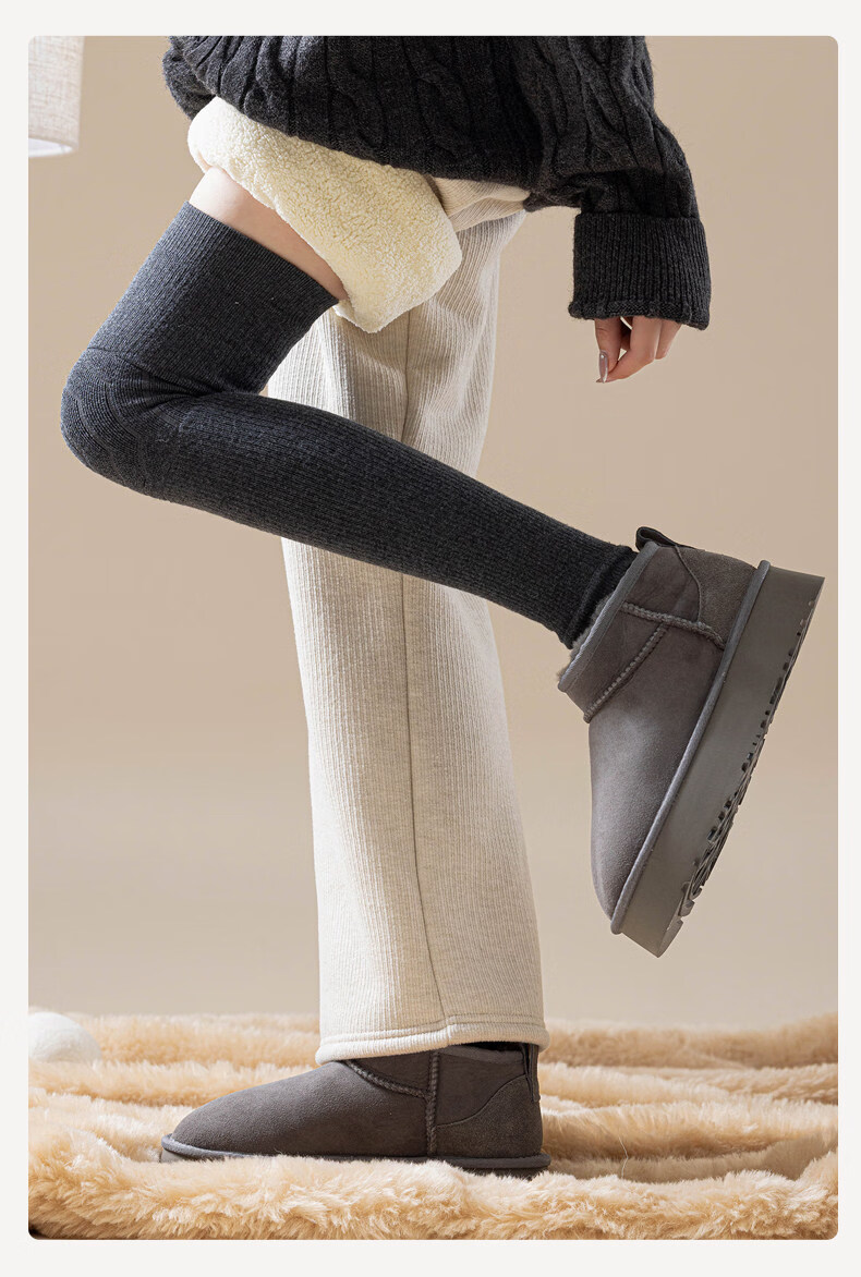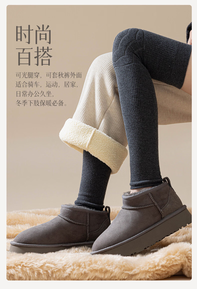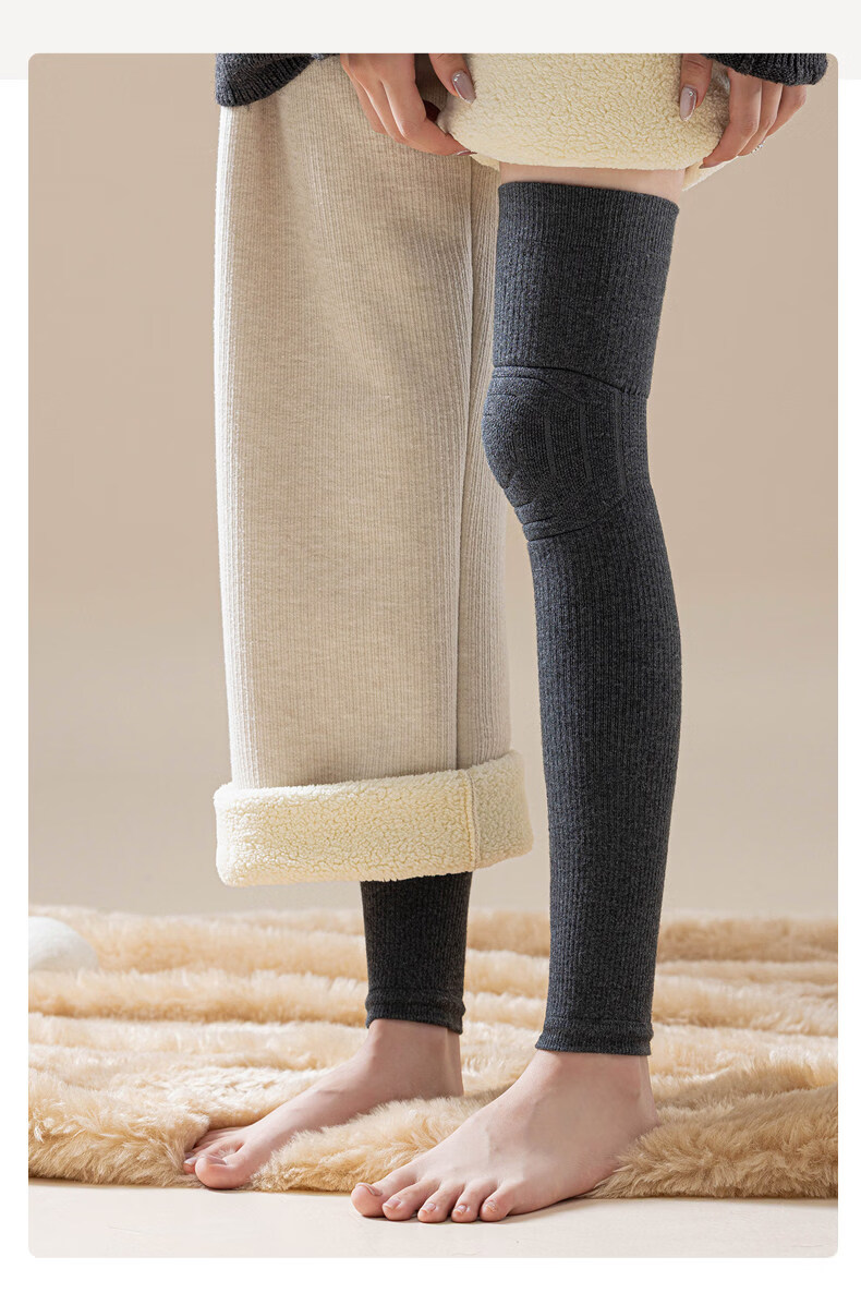Shijanu's new ginger heated knee socks for women, thickened, warm and deodorant, over-the-knee long sleeves_Velvet ginger heated knee socks, dark gray + light gray, 2 pairs, one size fits all, warm knee pads_beautiful legs slimming