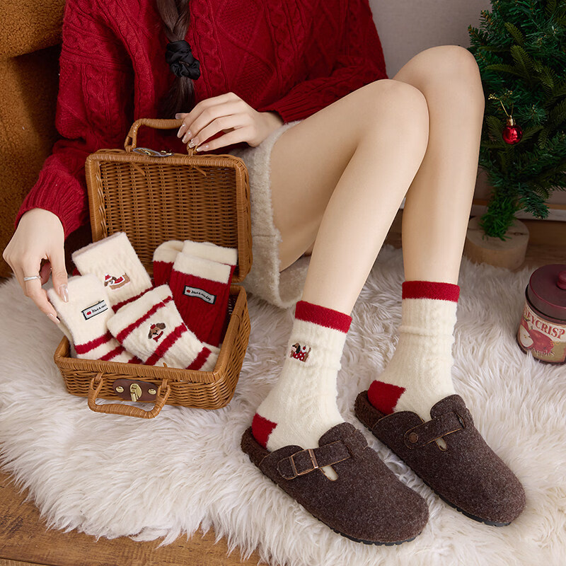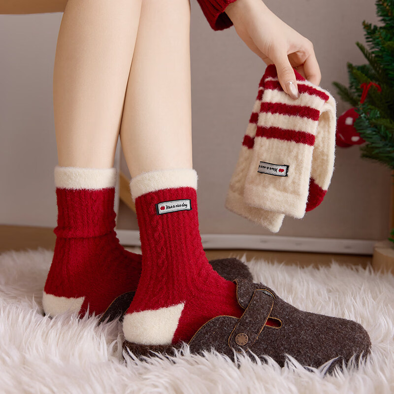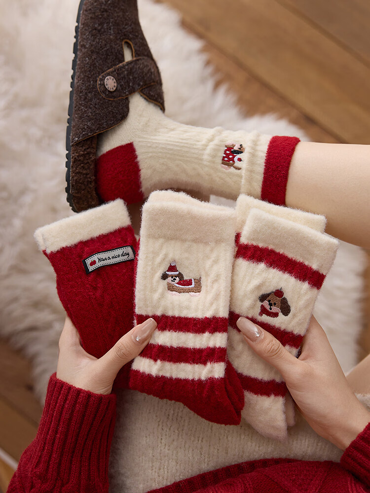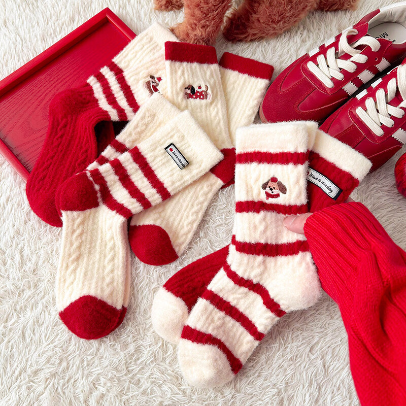 Shijanu winter thickened Australian velvet puppy socks for women mid-calf big red plush stockings 172 Australian velvet 5 pairs one size