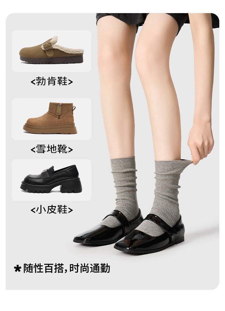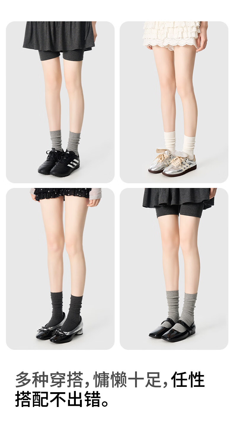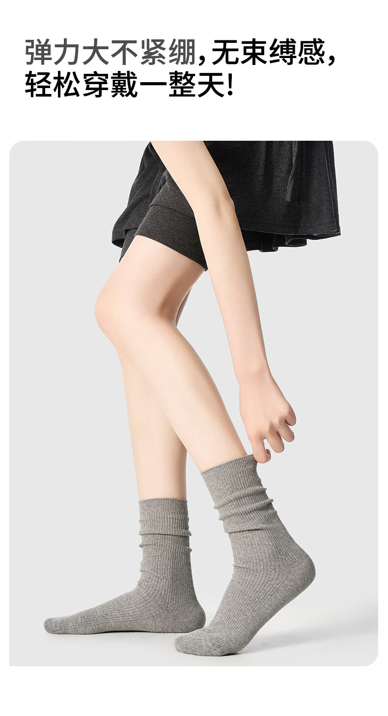 Pami (pami) gray socks women's mid-calf socks spring and summer style pile socks breathable with small leather shoes ins trendy long socks summer gray + white + black one size fits all 35-39_vertical pattern_pile_boneless