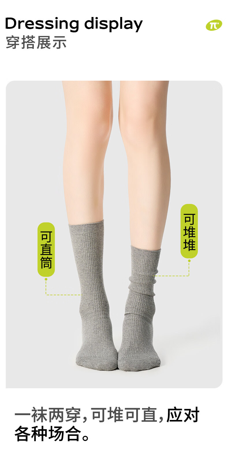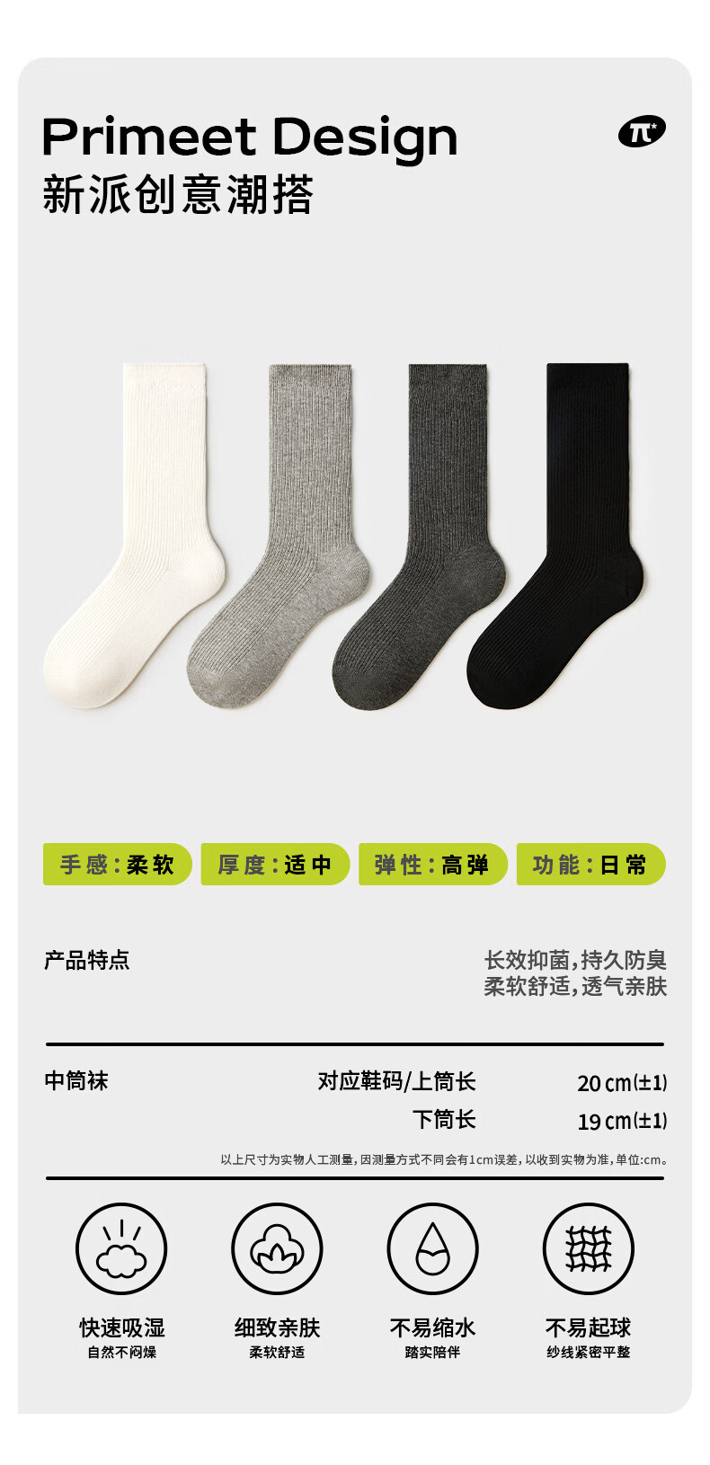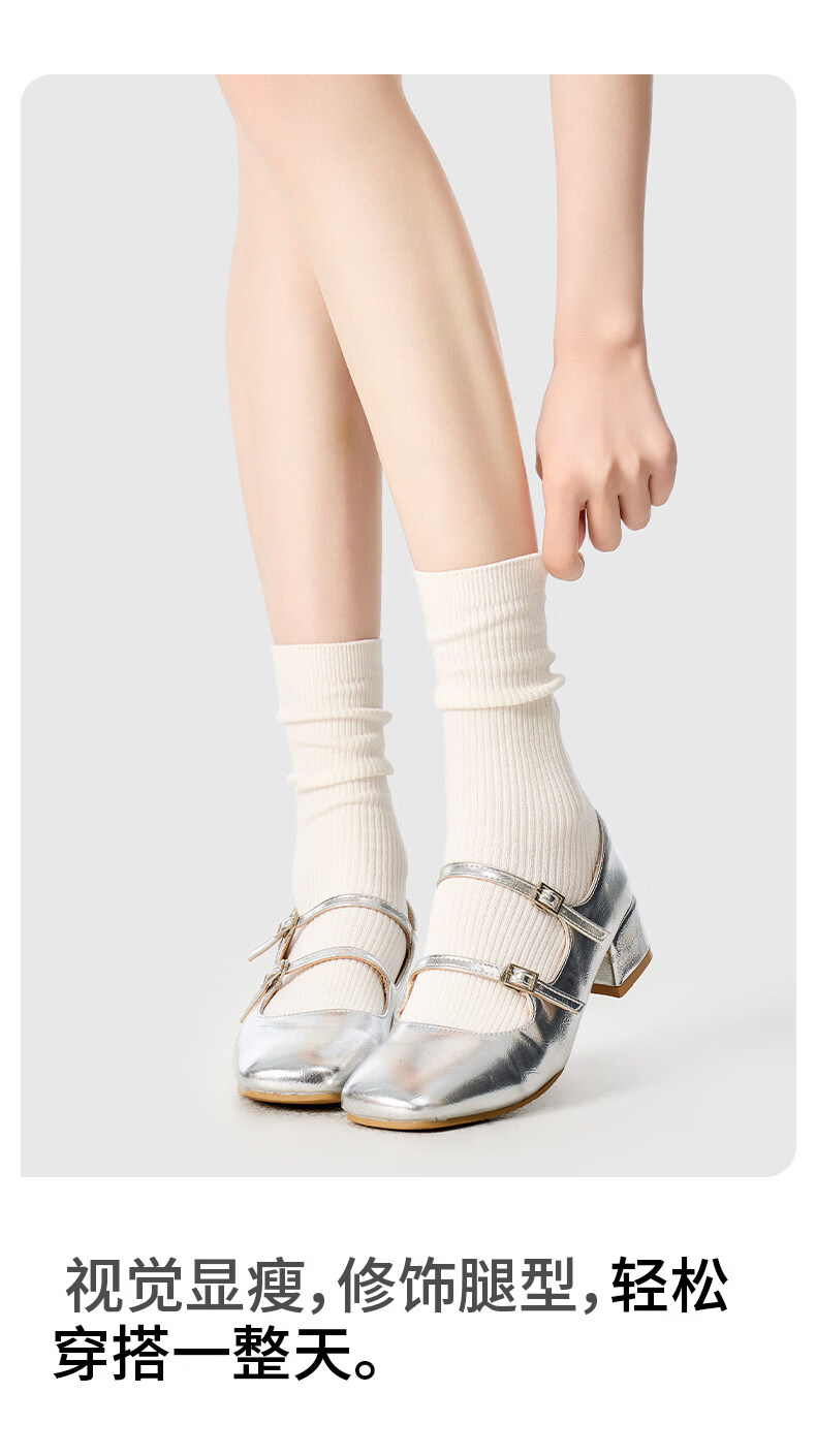 Pami (pami) gray socks women's mid-calf socks spring and summer style pile socks breathable with small leather shoes ins trendy long socks summer gray + white + black one size fits all 35-39_vertical pattern_pile_boneless
