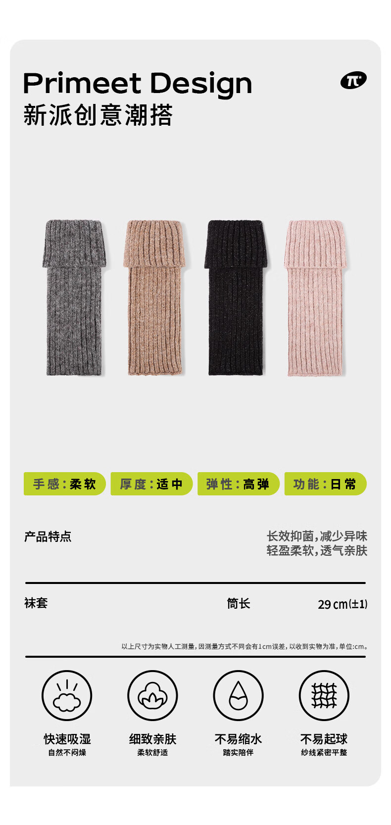 Pami gray socks for women spring and summer leg covers with shark pants socks knitted pile socks spring black calf socks gray-pack_(tube height 29cm) 1 pair one size fits all