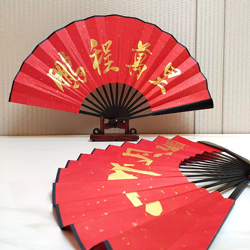 Yu Sen Yi Guo Feng Kao special folding fan, bungee fan, custom-made fan, folding fan, silk cloth, custom-made medium and high advertising, ancient style man, red silk cloth folding fan, double-sided inscription customization