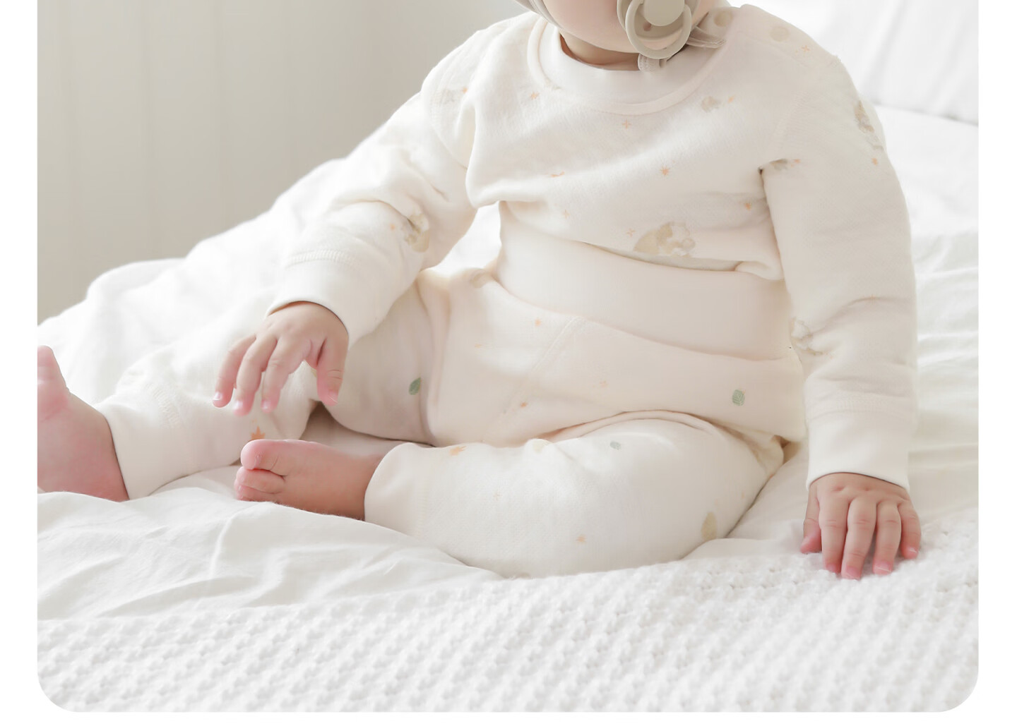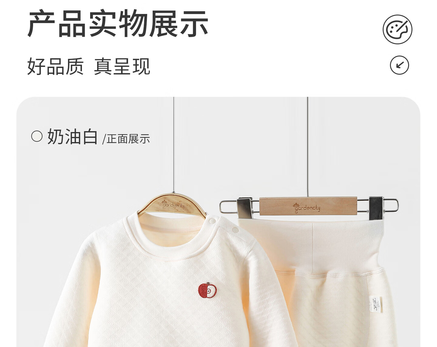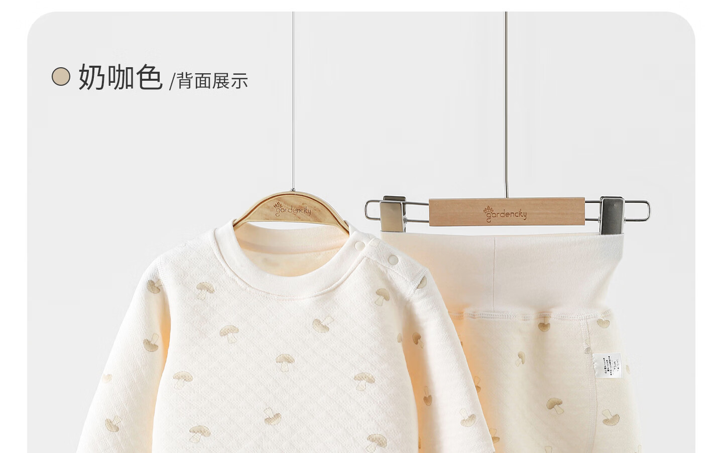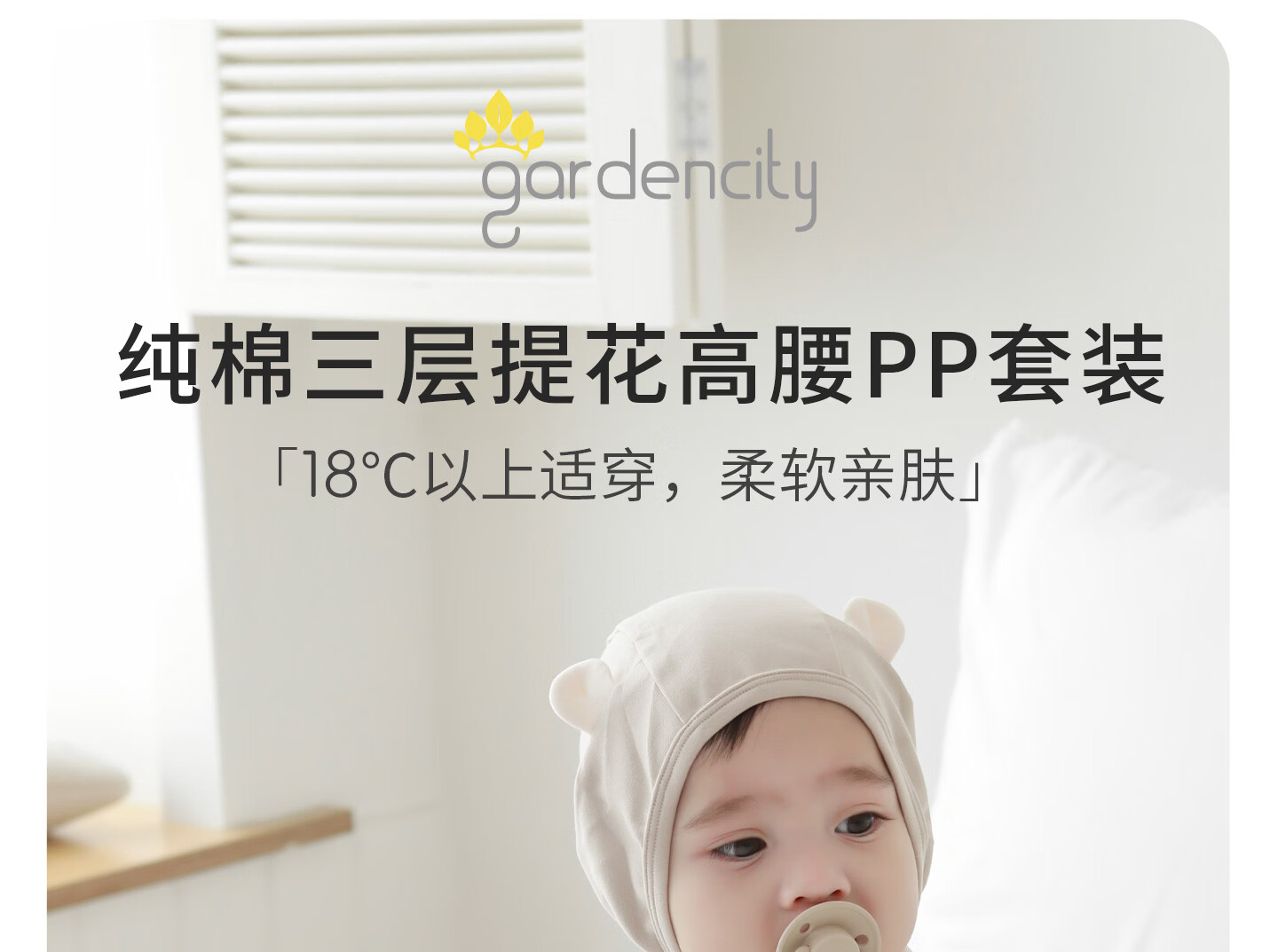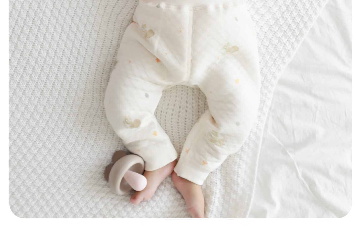 GARDEN CITY baby three-layer thermal underwear autumn and winter pure cotton high-waisted large PP pants for boys and girls, thickened autumn clothes and autumn pants, milky apricot color, suitable for wear above 18 degrees, 73 cm 8-10kg丨Choose the fit according to your height