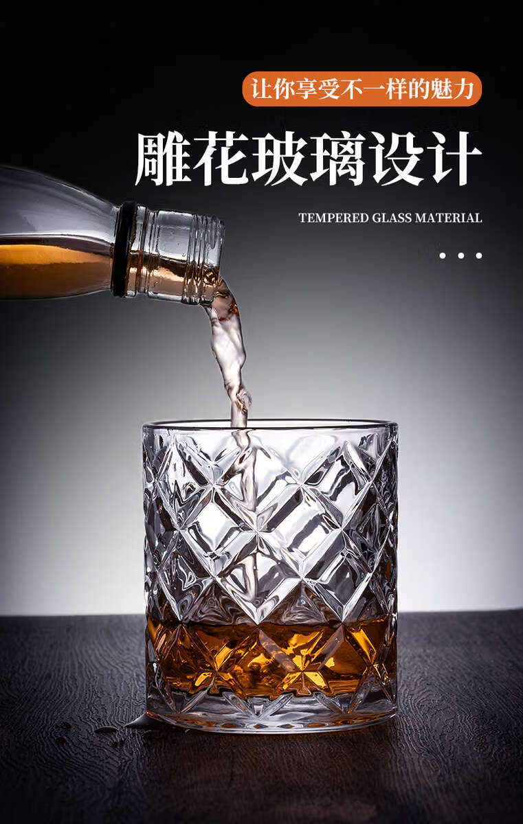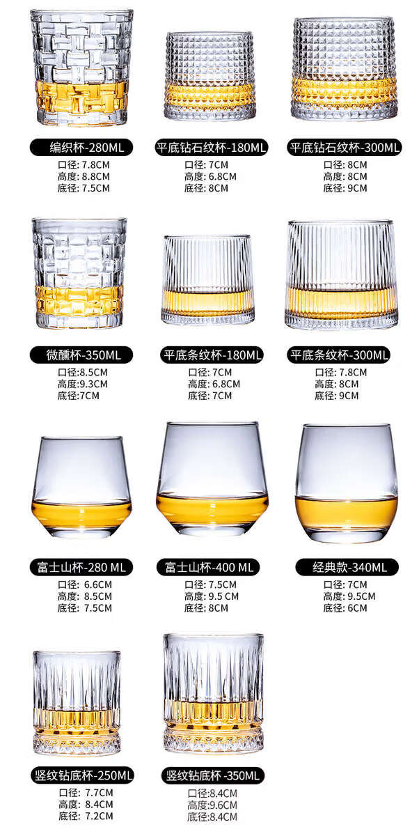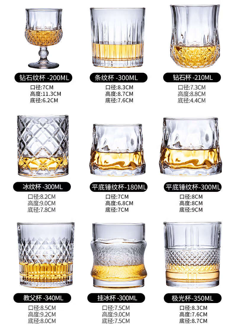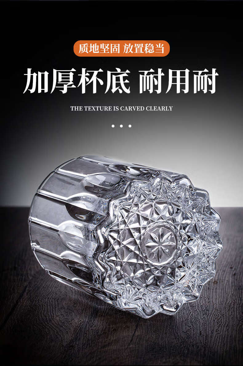 He Jiagong whiskey glass, foreign wine glass, KTV bar brandy glass, beer glass, classical glass, starburst style + 200ML, thick bottom/2 pieces