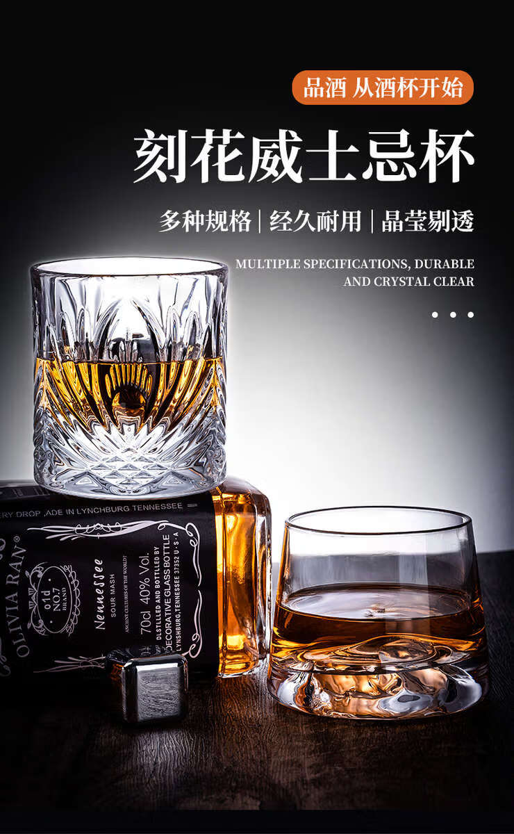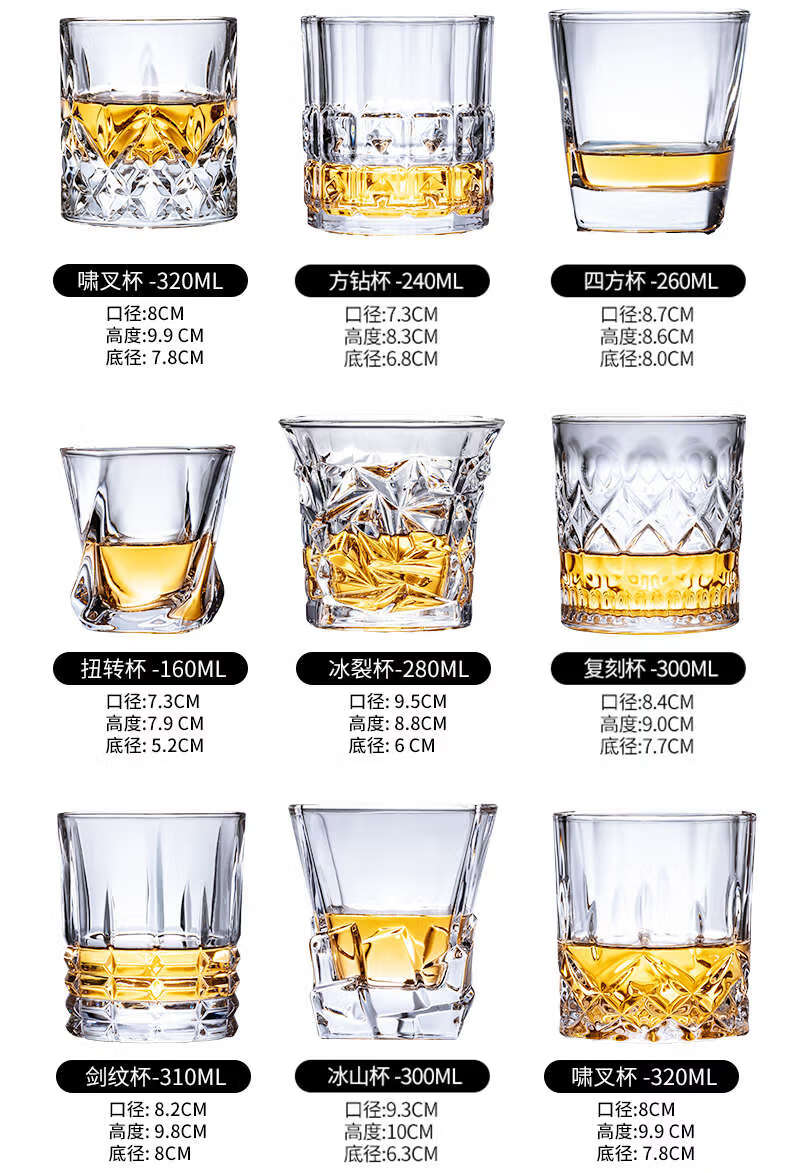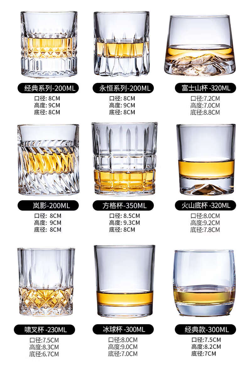 He Jiagong whiskey glass, foreign wine glass, KTV bar brandy glass, beer glass, classical glass, starburst style + 200ML, thick bottom/2 pieces