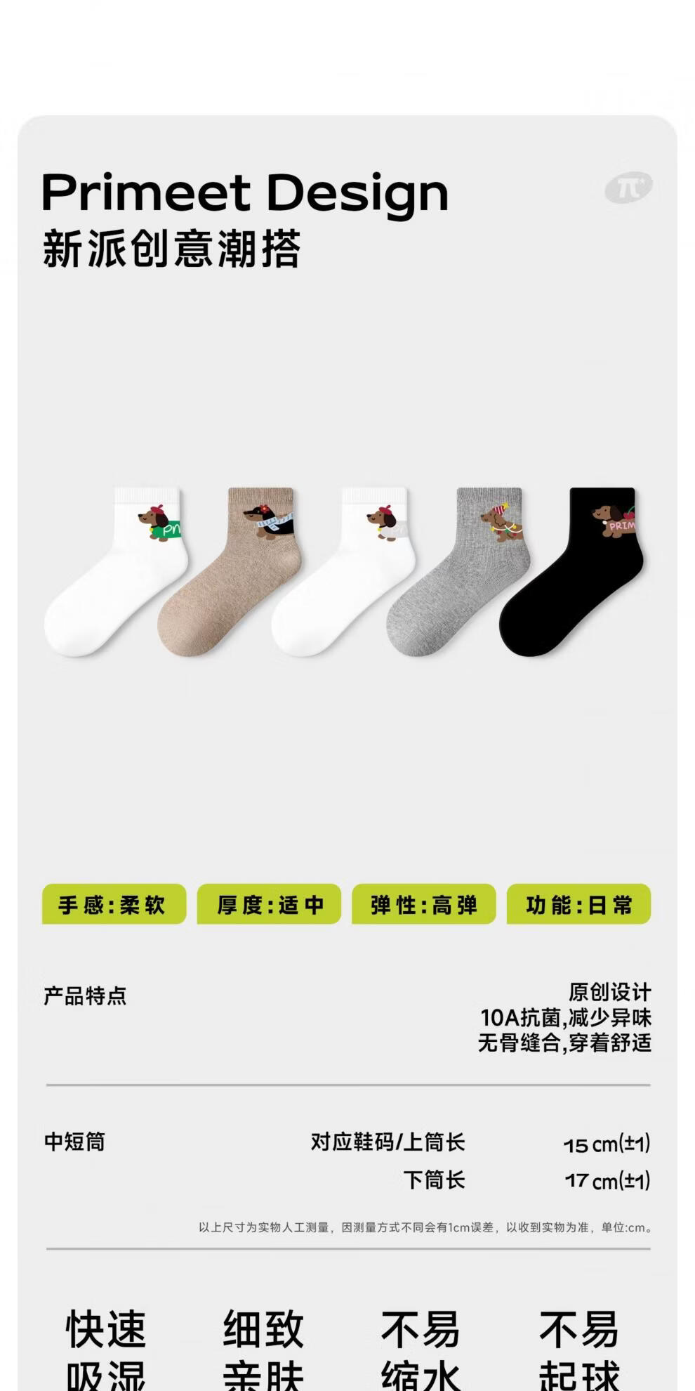 Pami socks women's spring and autumn mid-calf socks 2025 new cute dachshund puppy white short socks with Birkenstock socks Dachshund puppy-pack 5 pairs