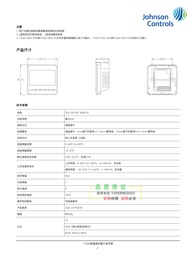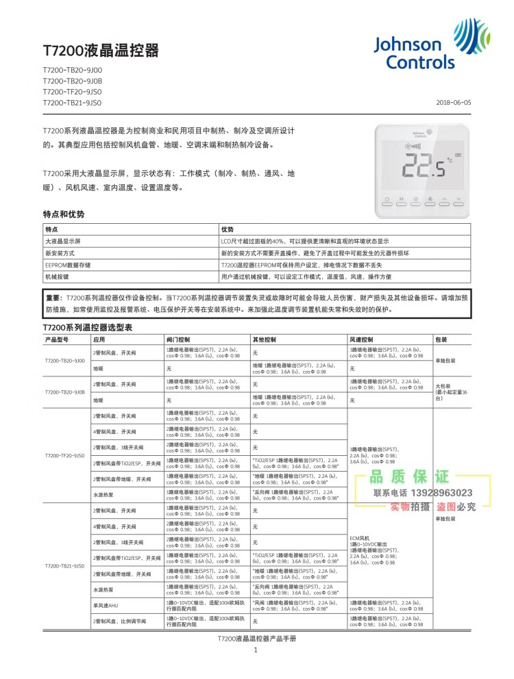 Johnson LCD thermostat T7200-TF20-9JS0-9JS1-TB21-9JS0-9JS1 air conditioner plus floor heating T7200-TB21-9JS0 proportional thermostat