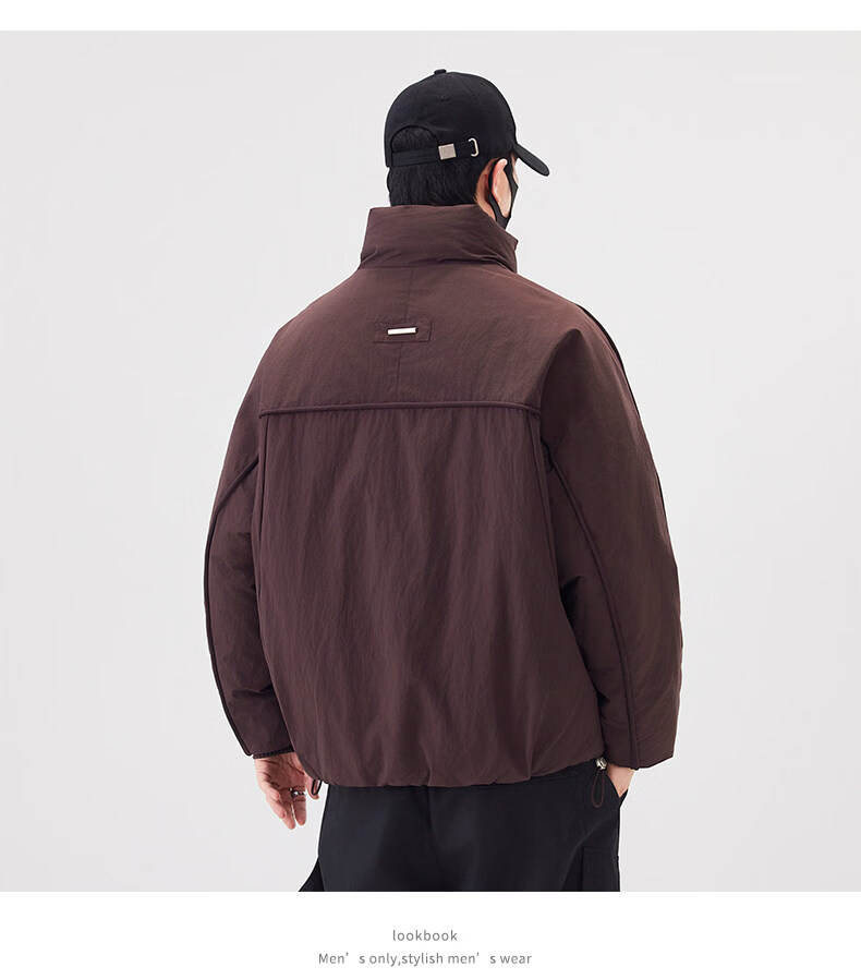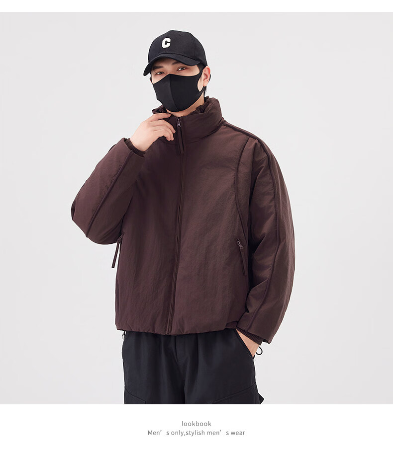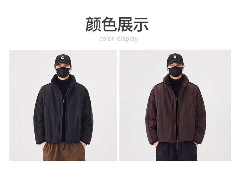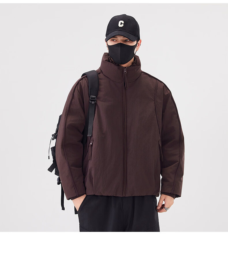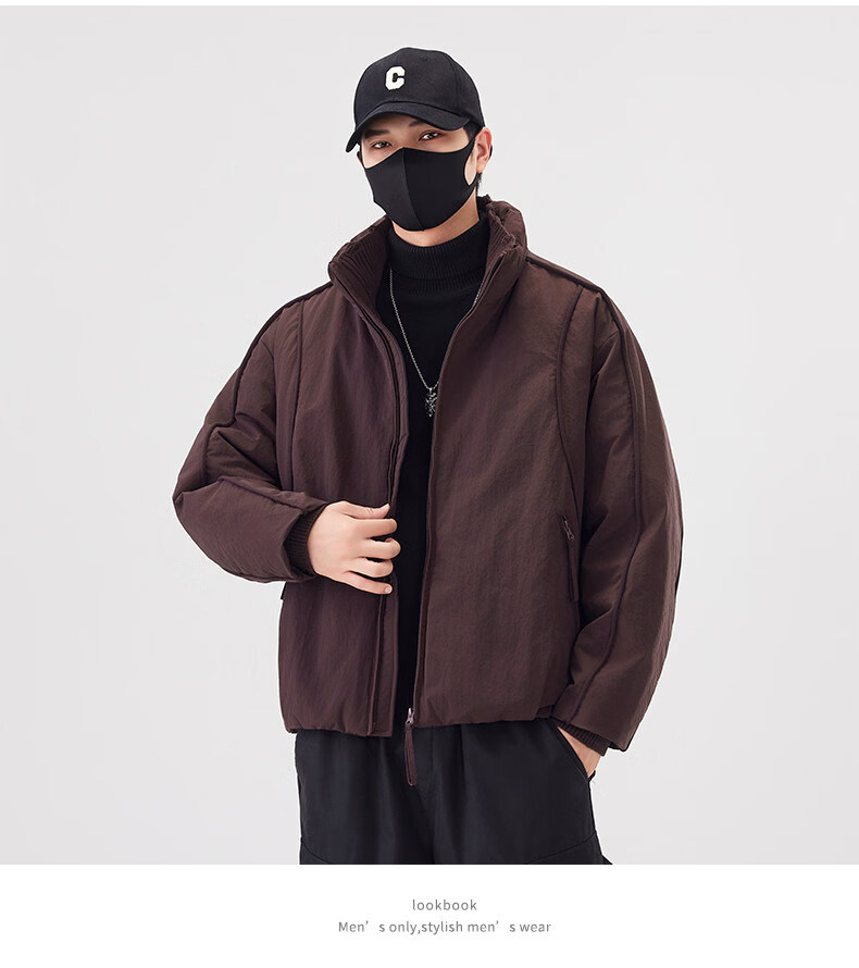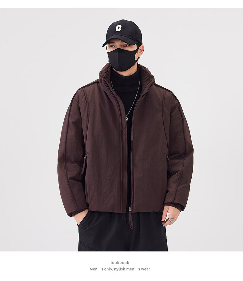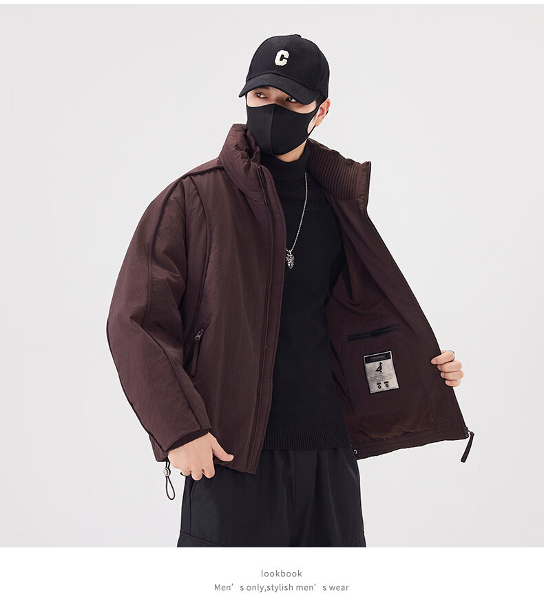 KBXNG劲霸新款男士工装羽绒服短款潮牌立领上衣加厚保暖面包服冬装外套 咖啡色 M 120斤内