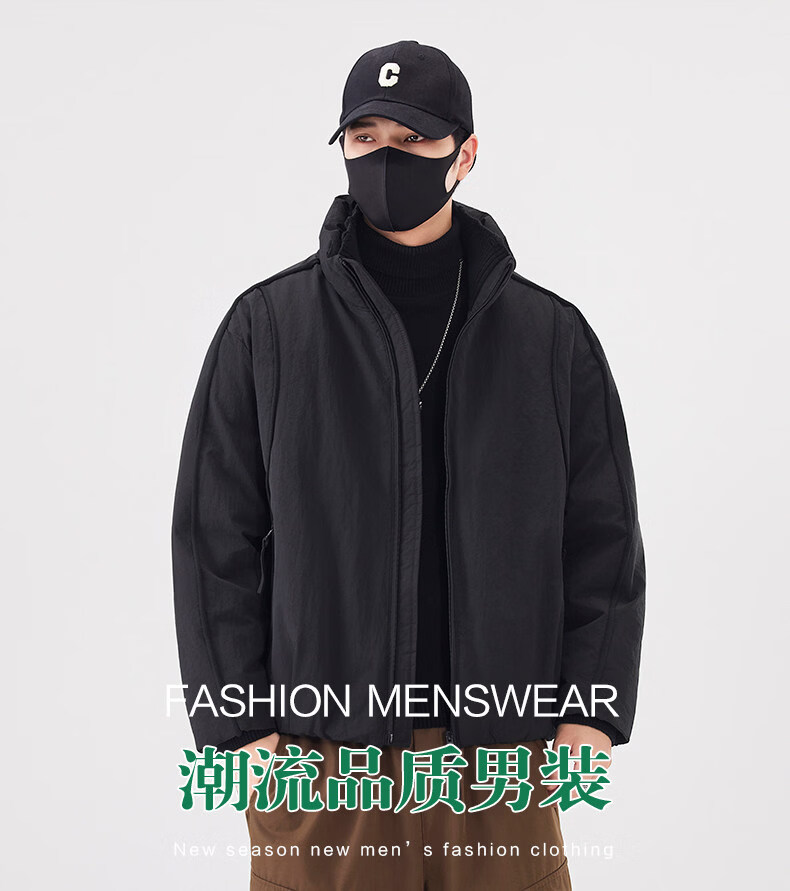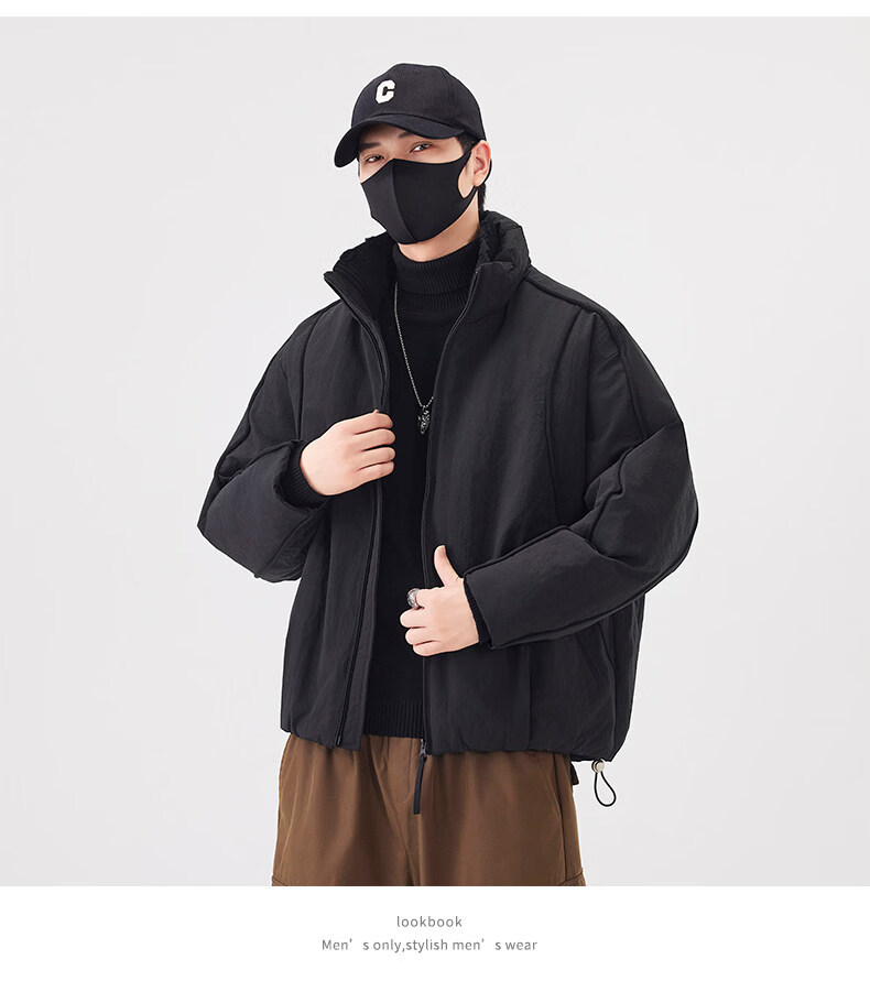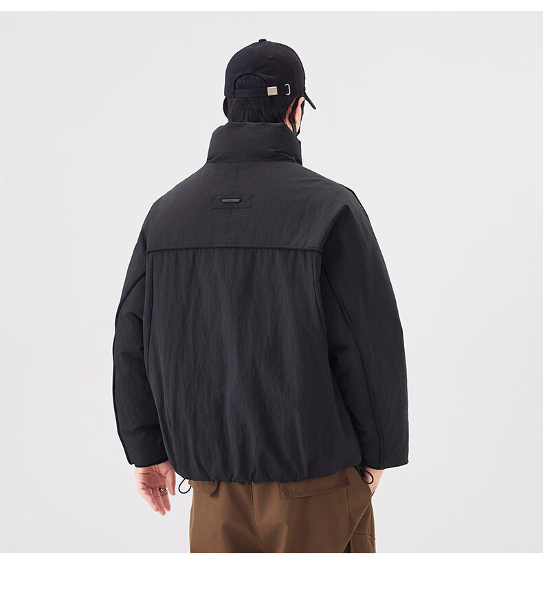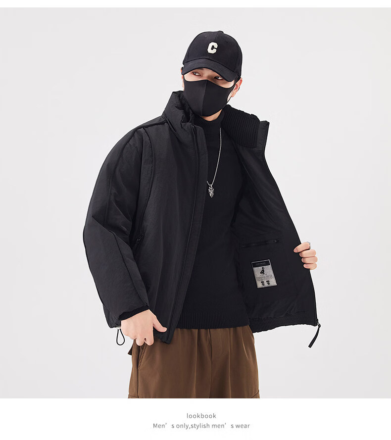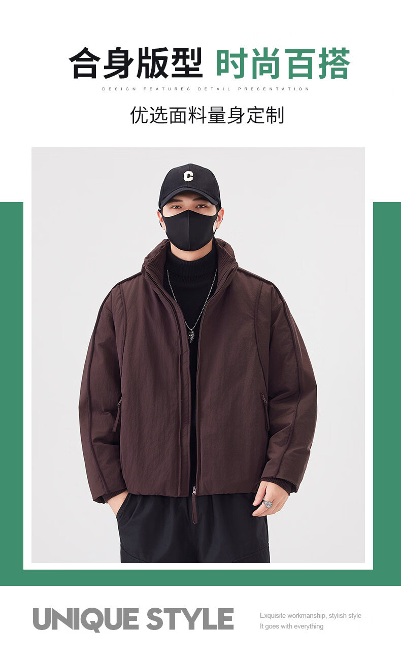 KBXNG劲霸新款男士工装羽绒服短款潮牌立领上衣加厚保暖面包服冬装外套 咖啡色 M 120斤内