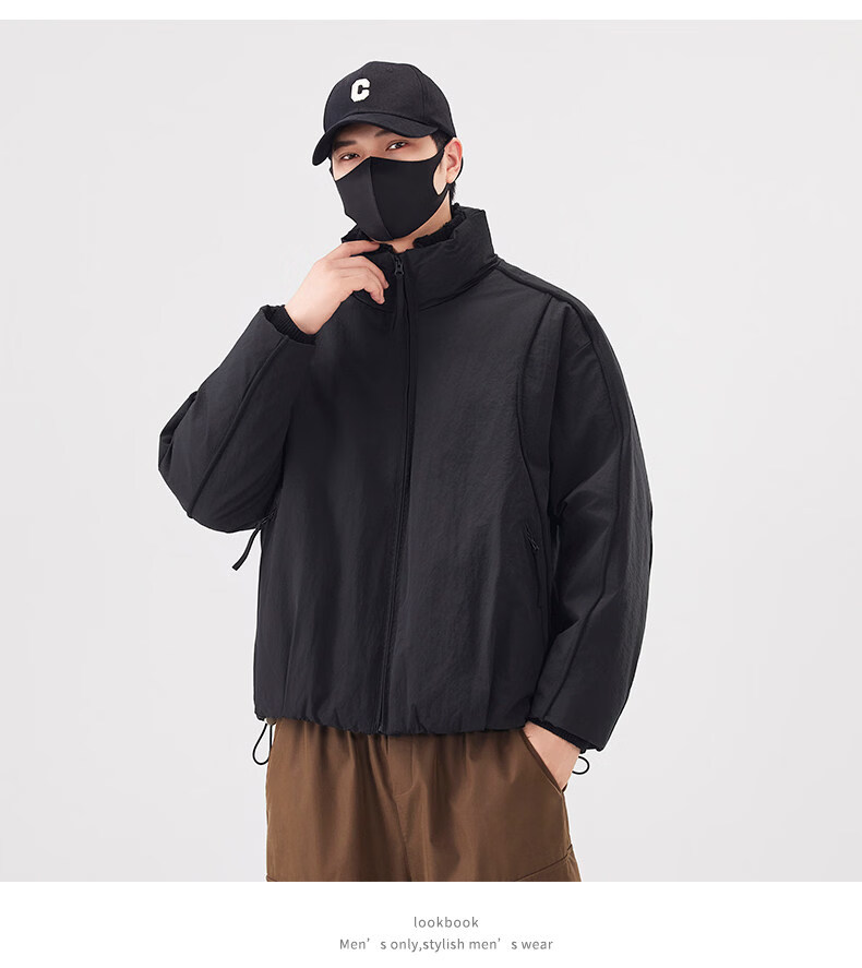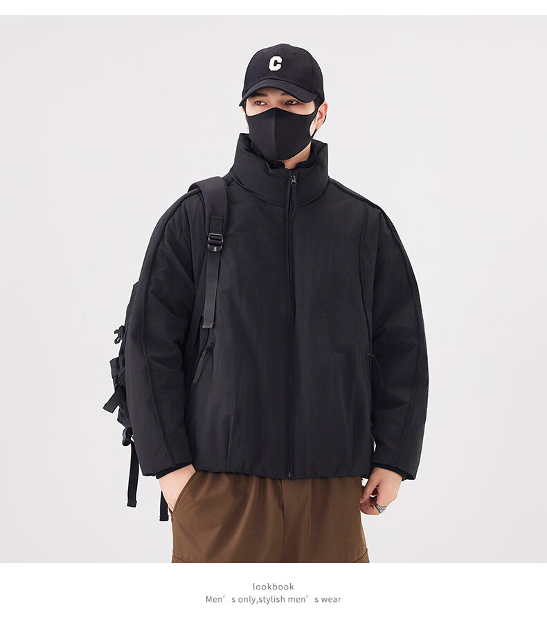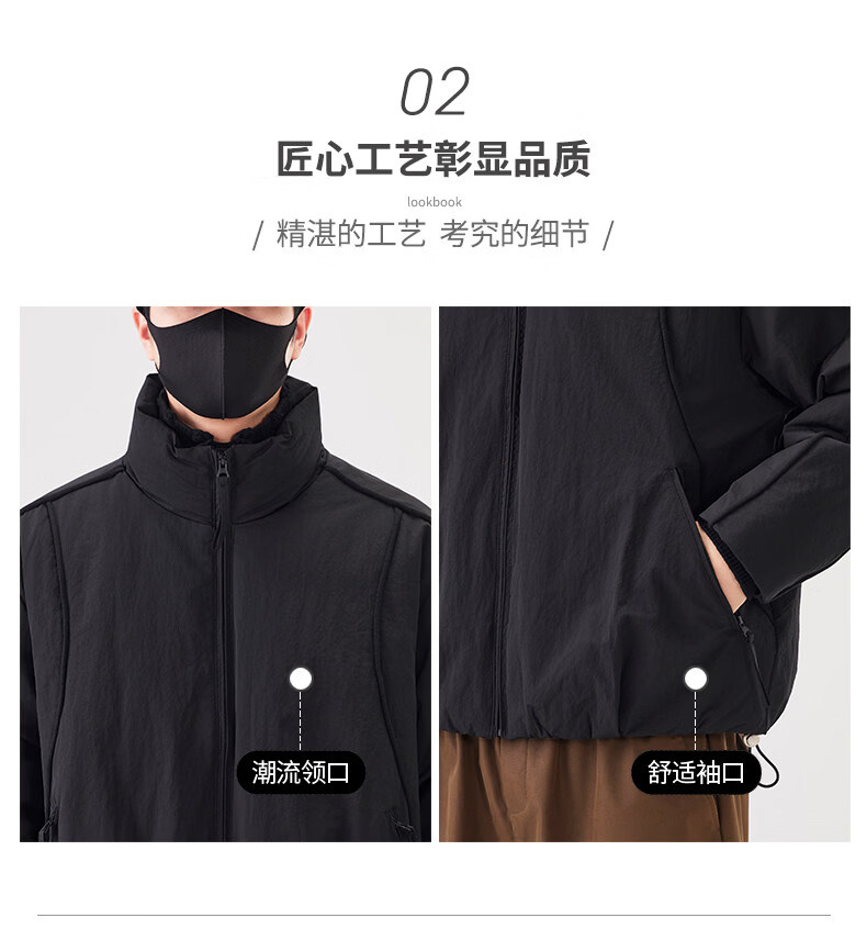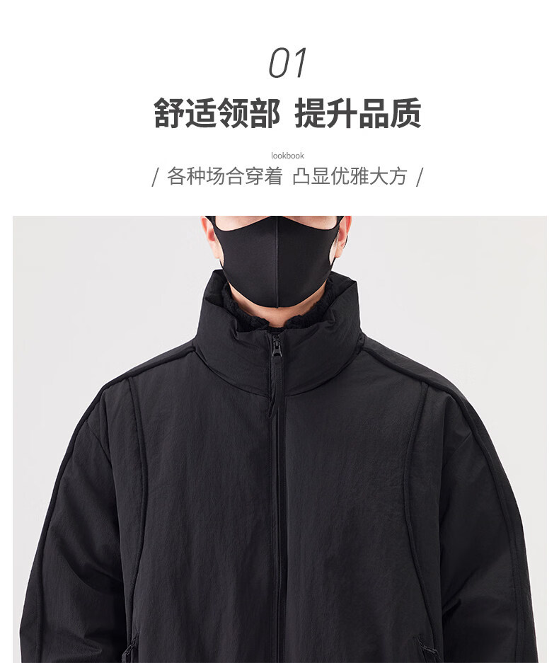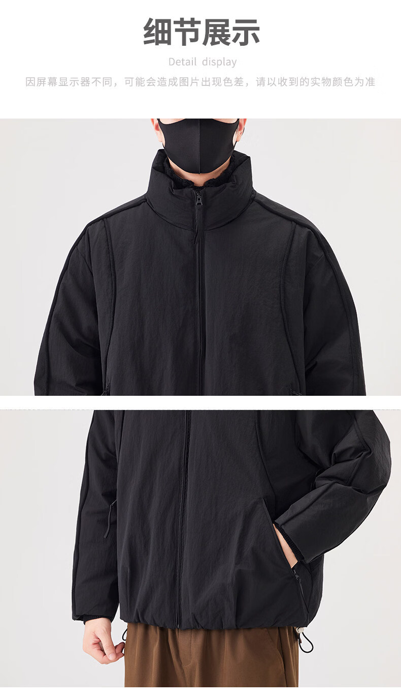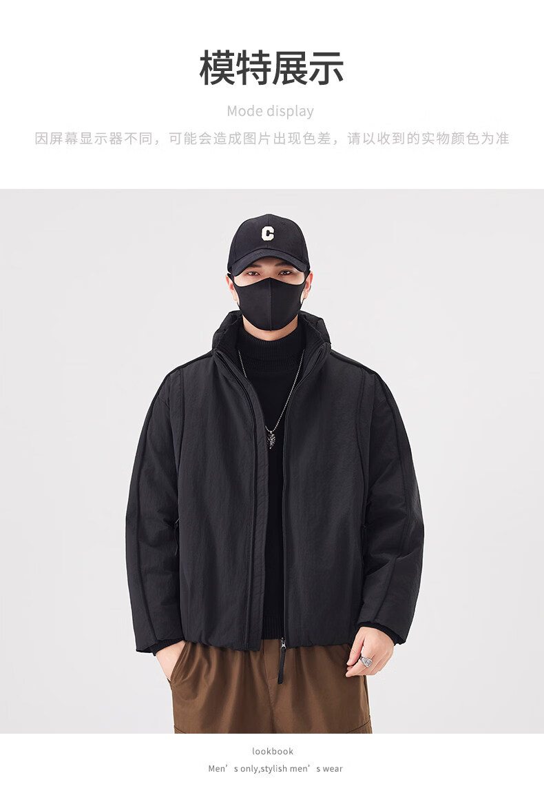 KBXNG劲霸新款男士工装羽绒服短款潮牌立领上衣加厚保暖面包服冬装外套 咖啡色 M 120斤内