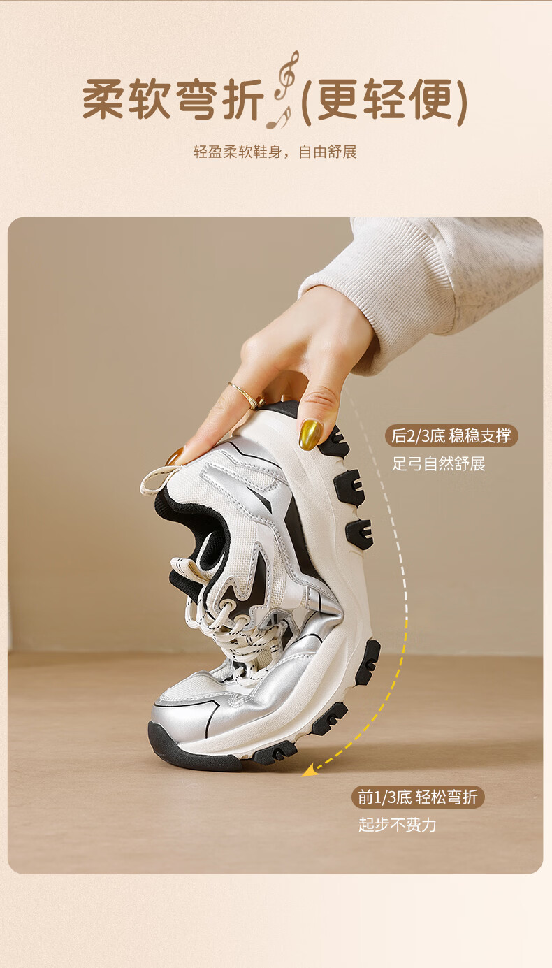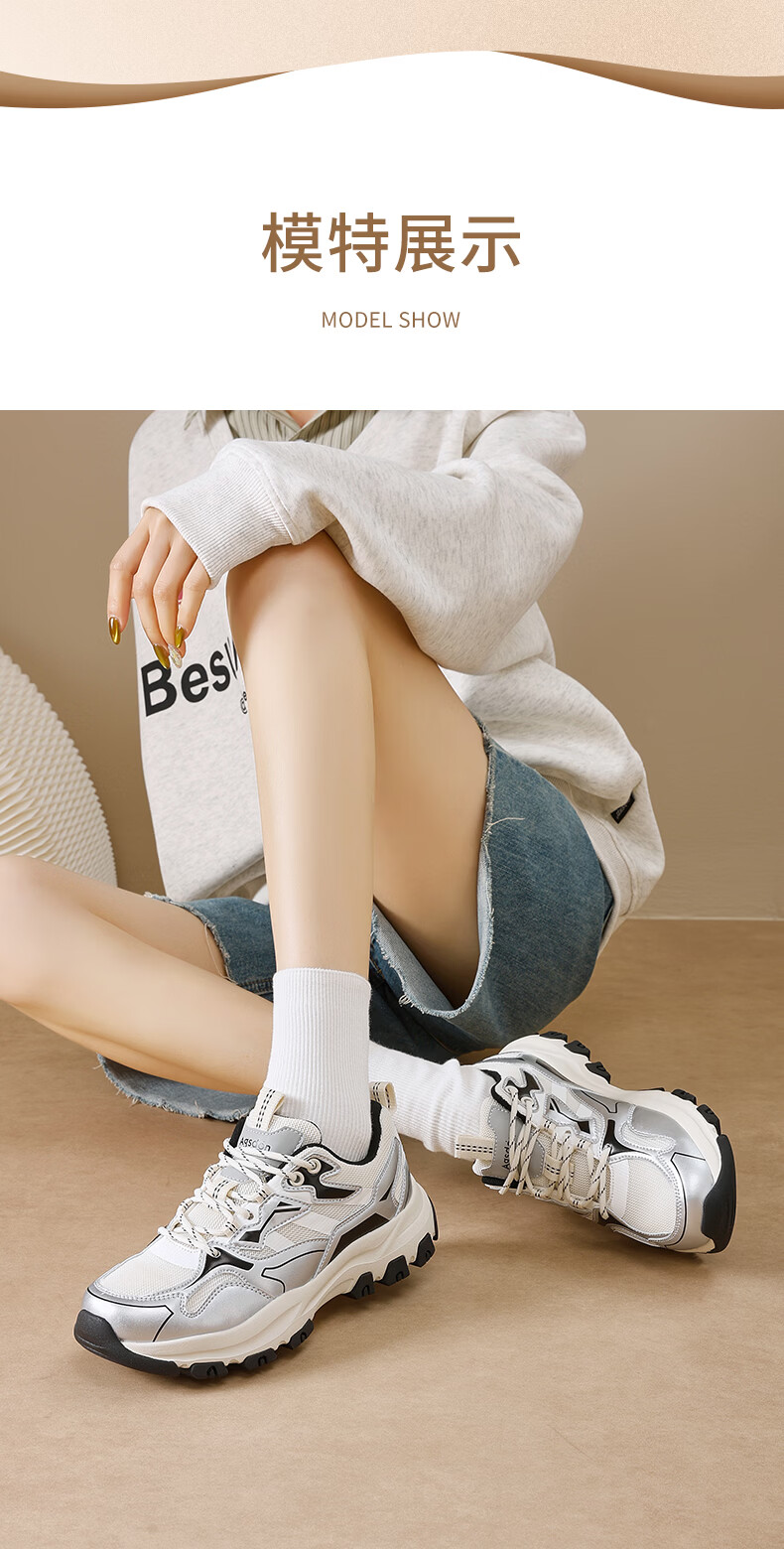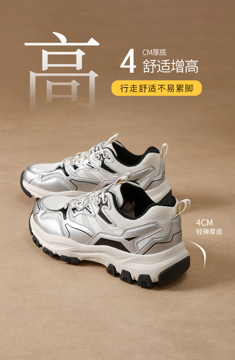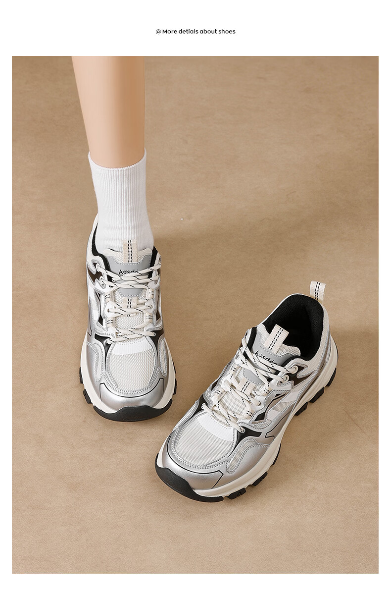 Augushiden thick-soled dad shoes for women 2026 spring new style simple versatile comfortable heightening slim mesh sports casual shoes W261156 silver black 36