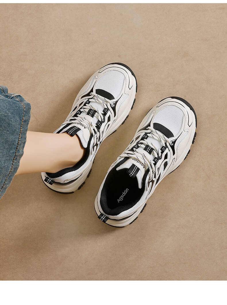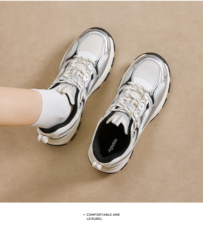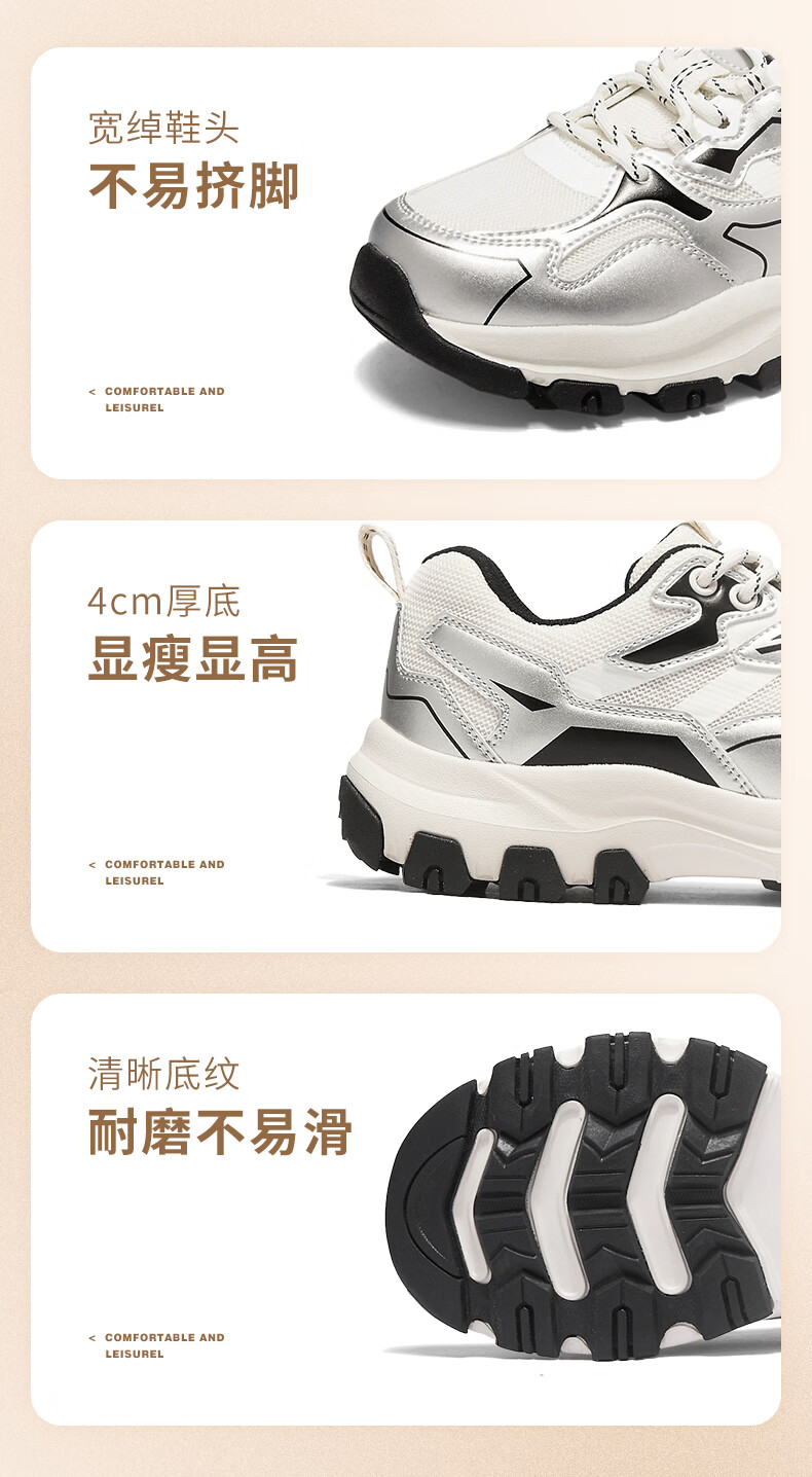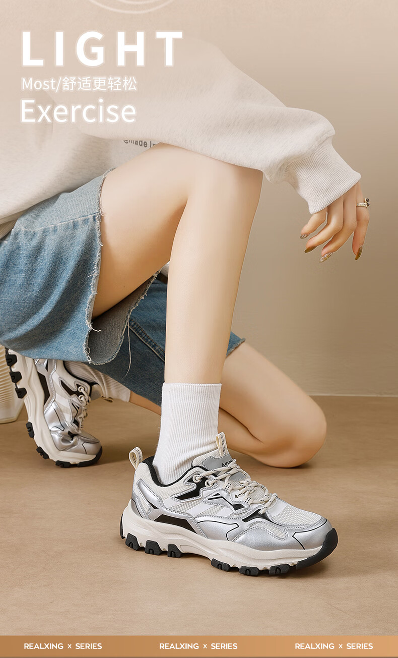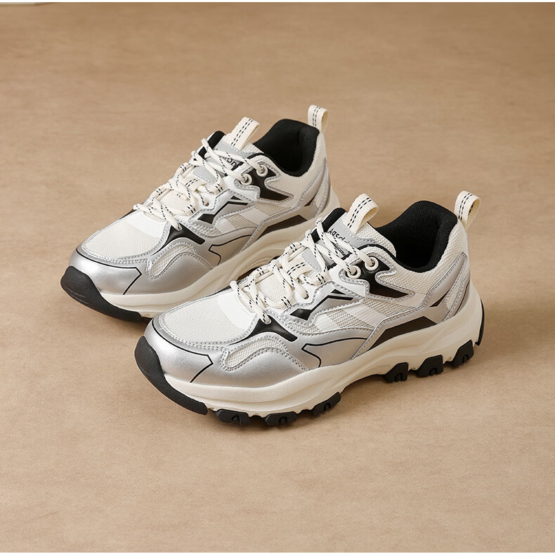 Augushiden thick-soled dad shoes for women 2026 spring new style simple versatile comfortable heightening slim mesh sports casual shoes W261156 silver black 36