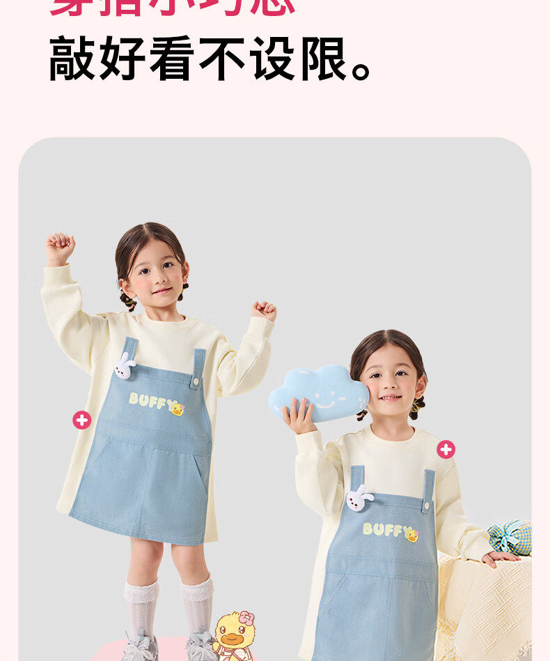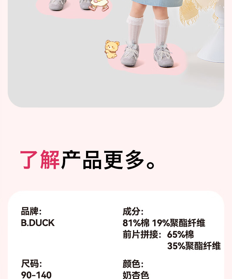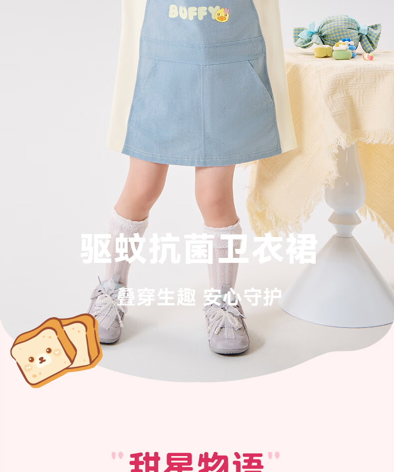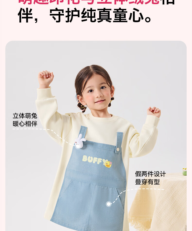 B.Duck Mosquito Repellent and Antibacterial Little Yellow Duck Children's Clothing Girls Dress Fake Two-piece Tops 2026 Spring Baby Girl Skirt Milk Apricot (7A Antibacterial + Anti-mosquito Technology) 90 cm