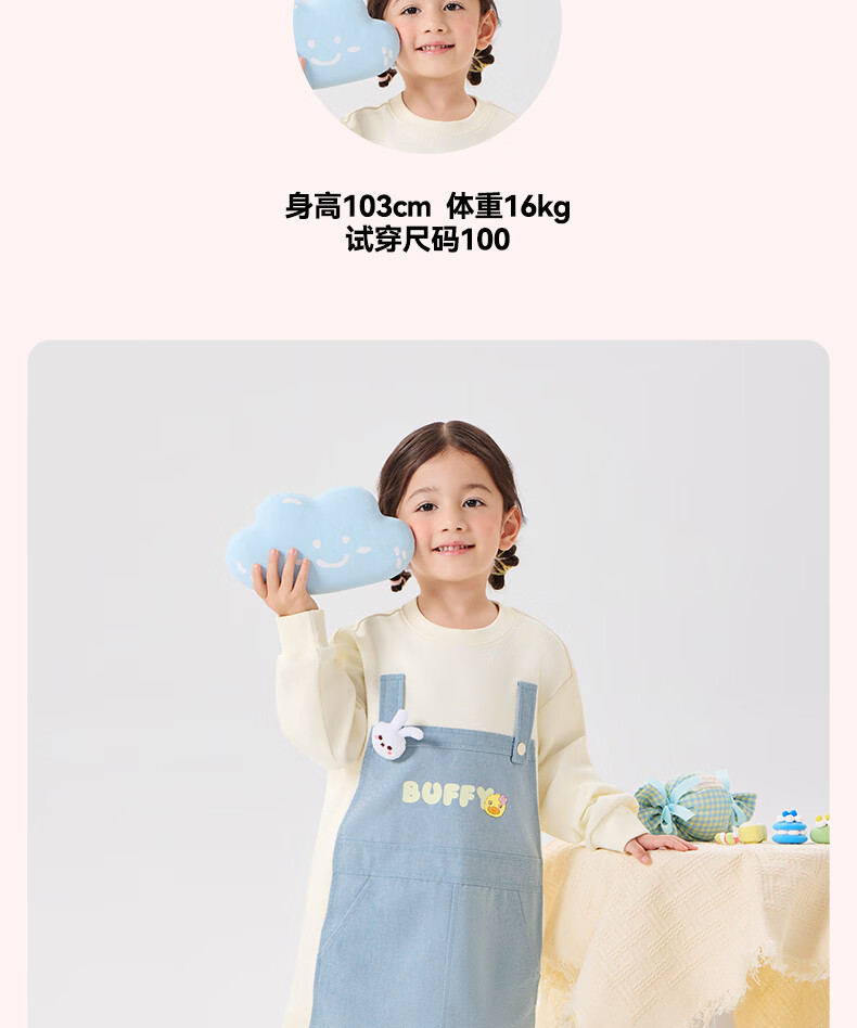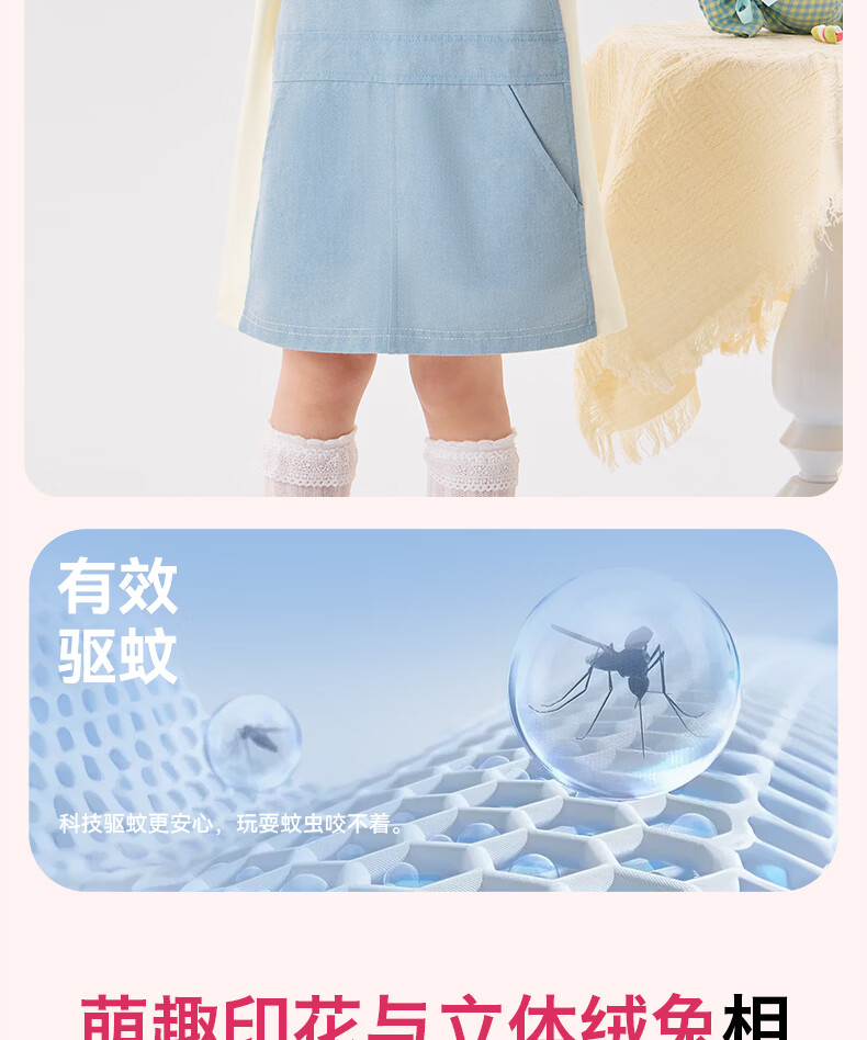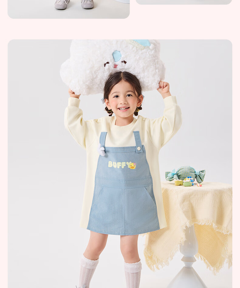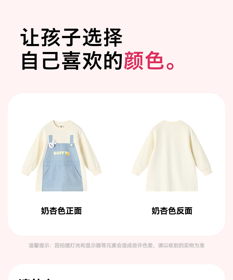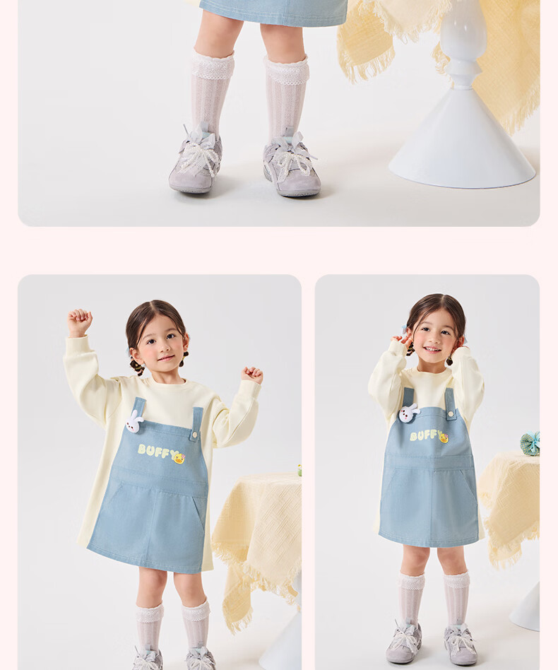 B.Duck Mosquito Repellent and Antibacterial Little Yellow Duck Children's Clothing Girls Dress Fake Two-piece Tops 2026 Spring Baby Girl Skirt Milk Apricot (7A Antibacterial + Anti-mosquito Technology) 90 cm