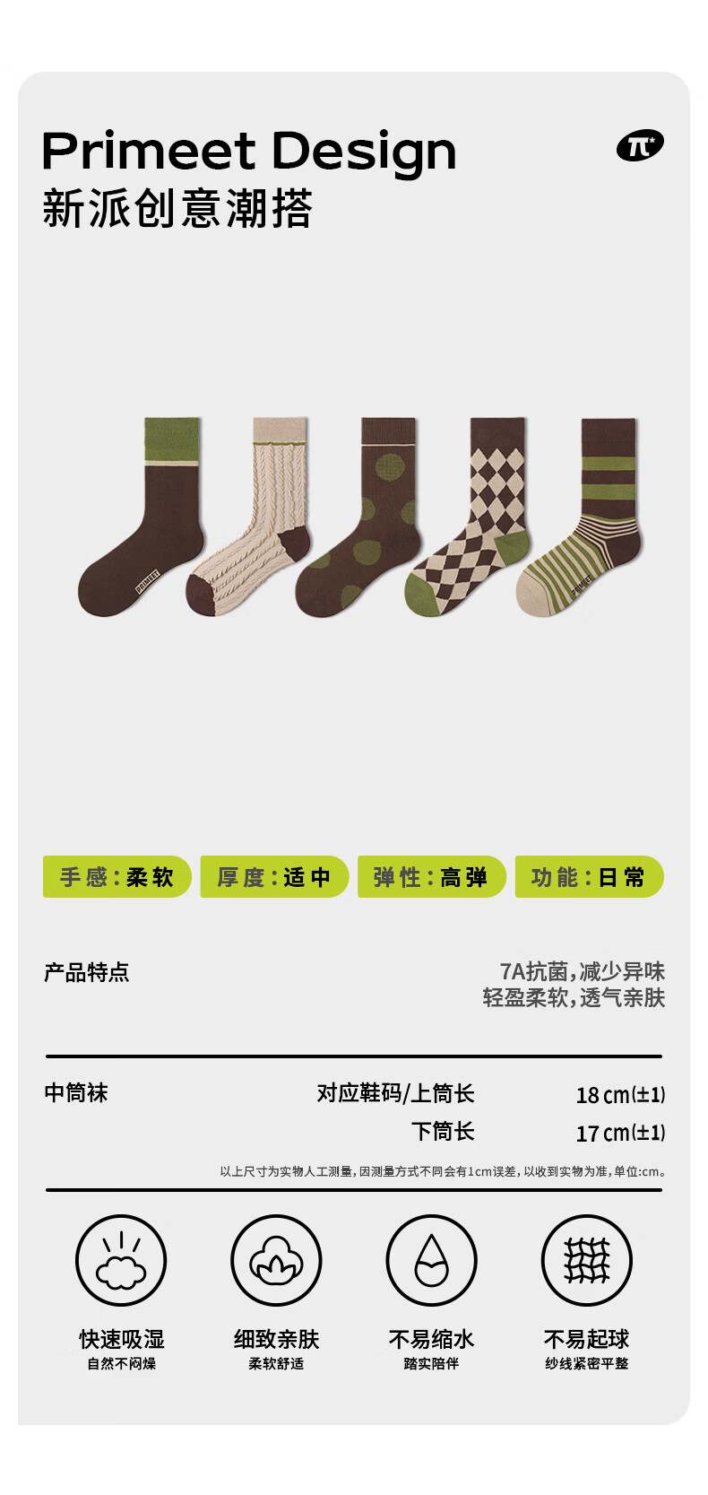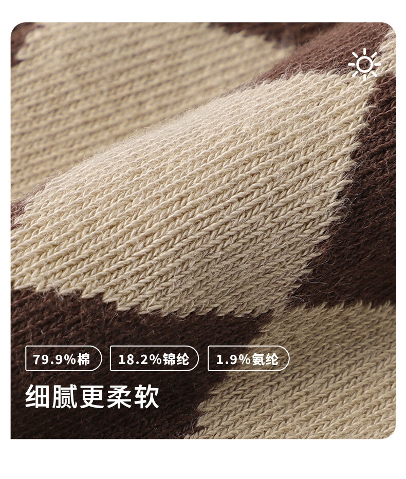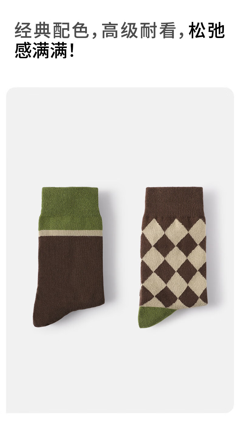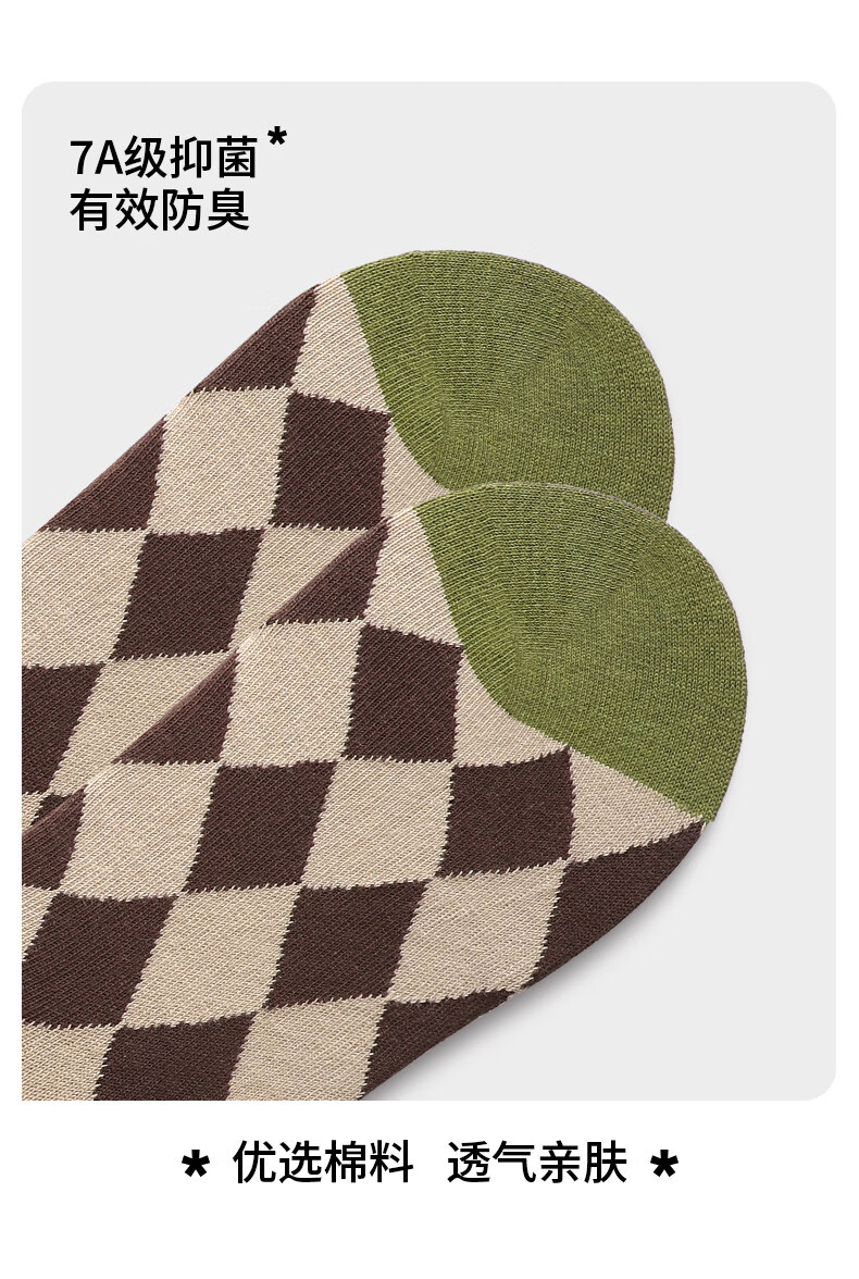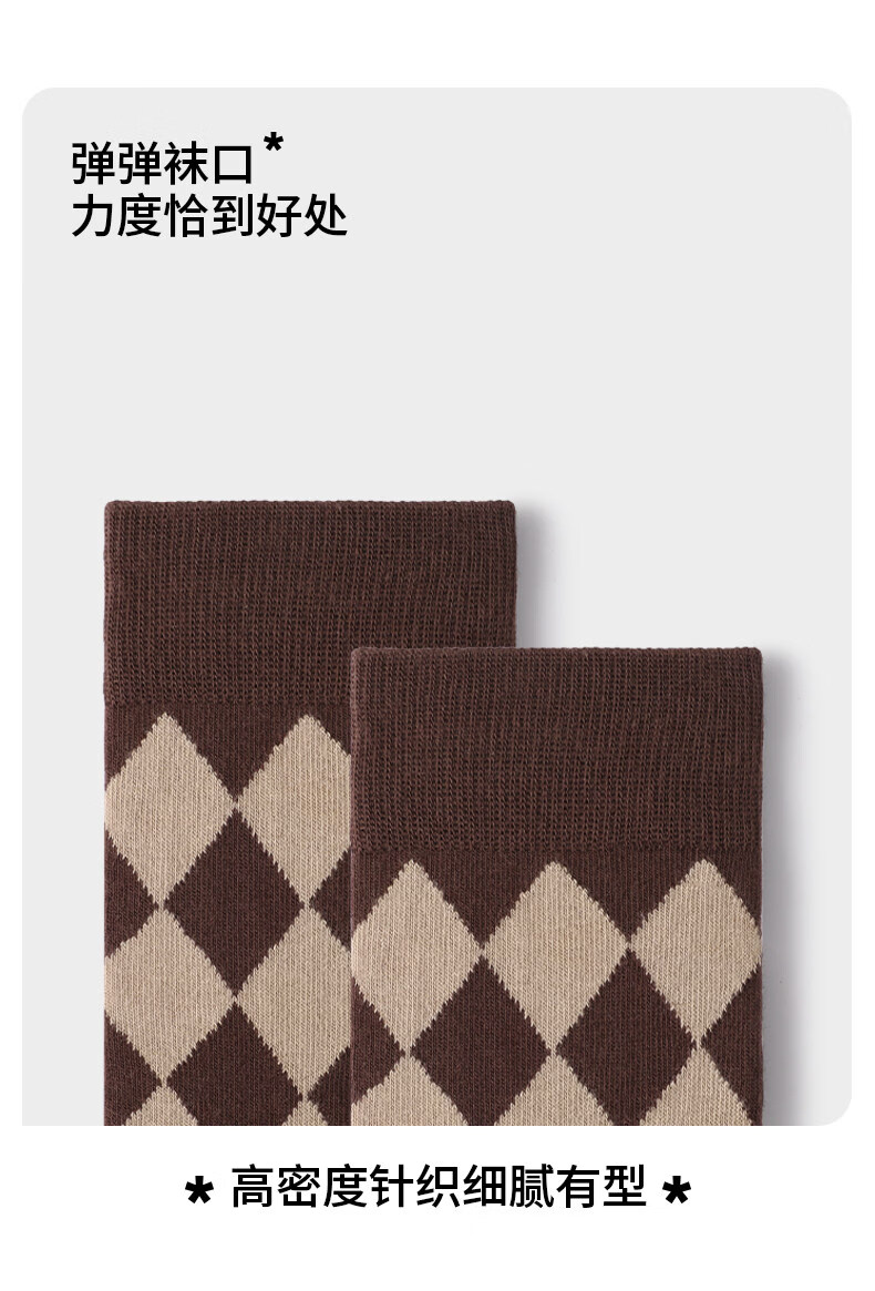 Pami (pami) brown socks for women spring and autumn 2025 new retro style Maillard rhombus mid-calf socks autumn and winter long stockings retro mid-calf socks group A_suitable for (36-39 sizes) one-size-fits-all five pairs