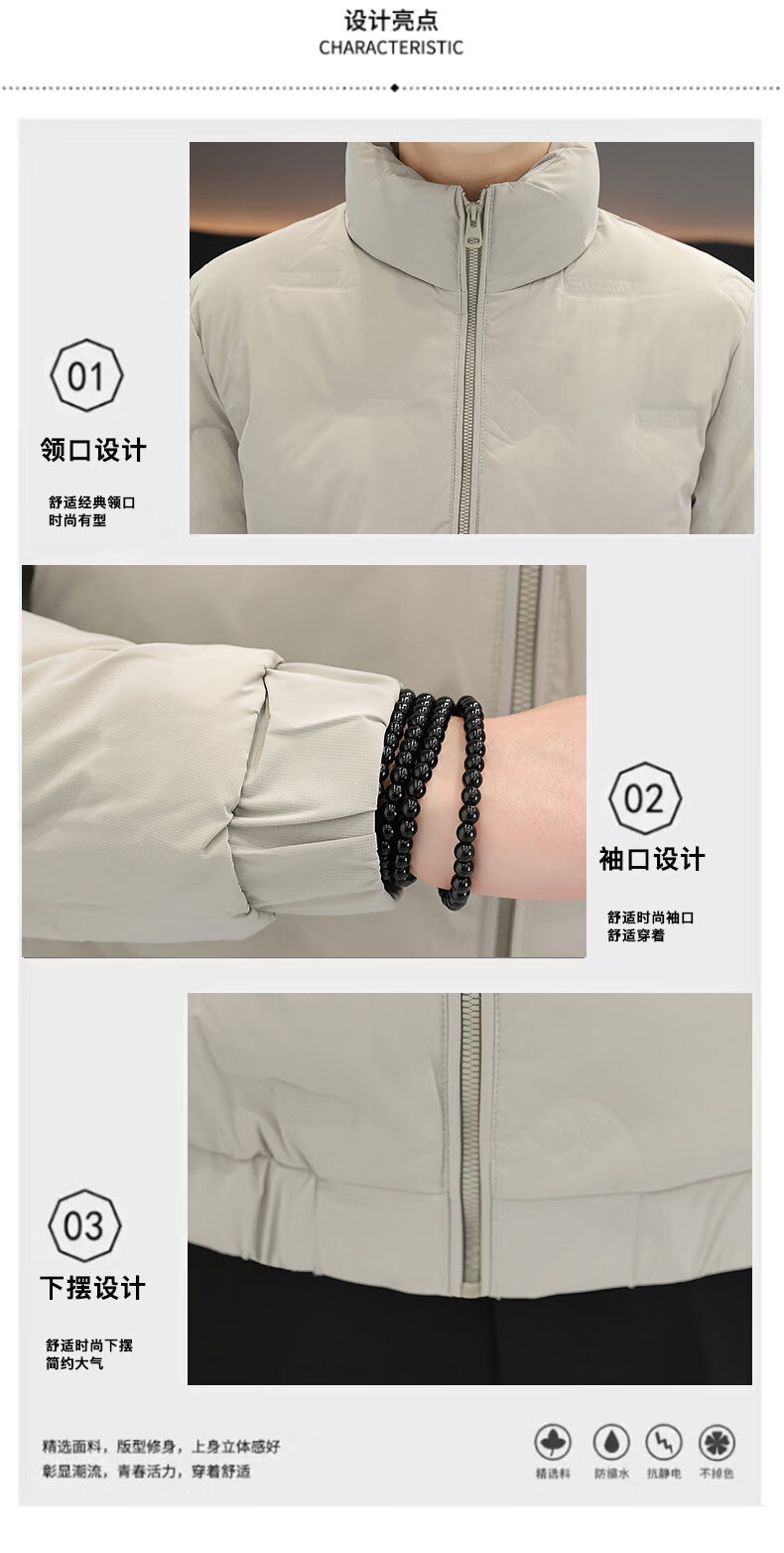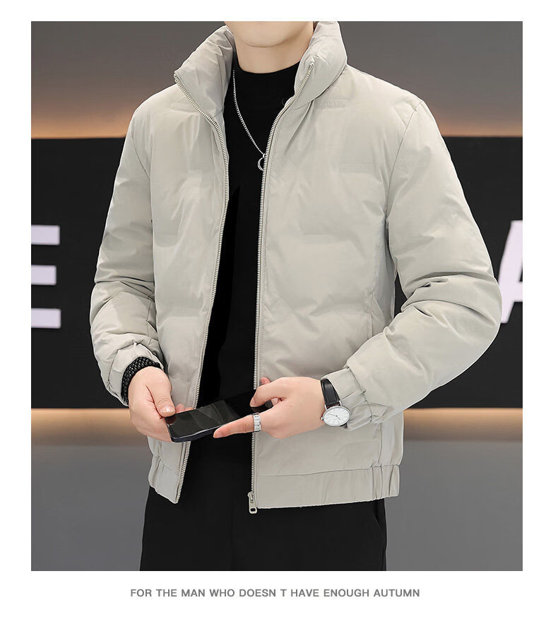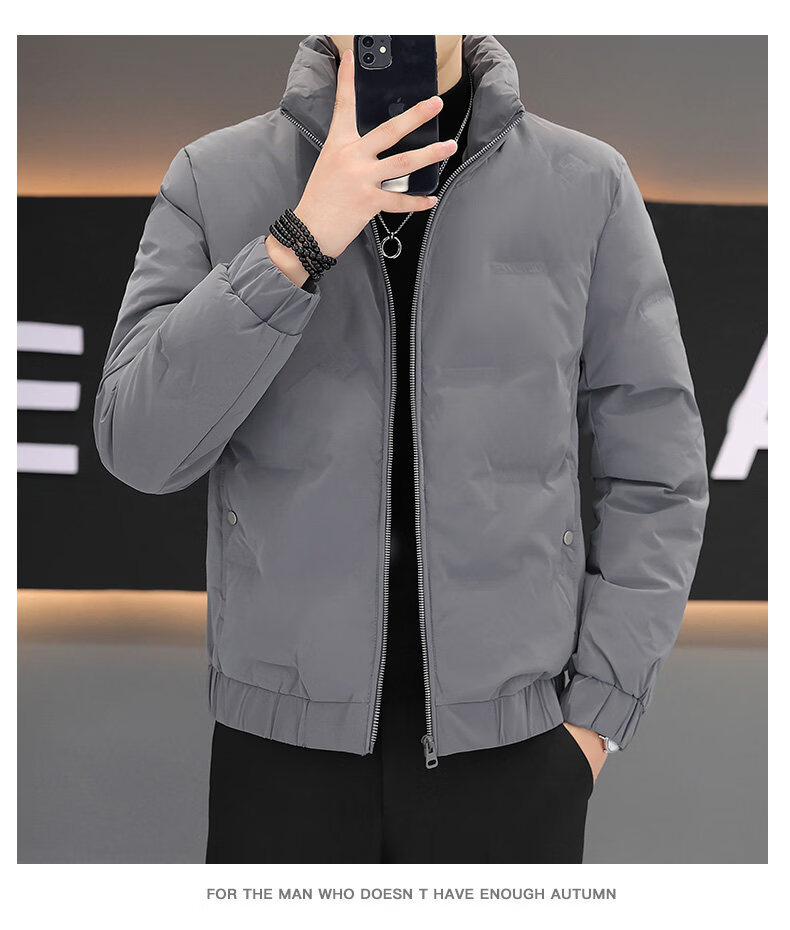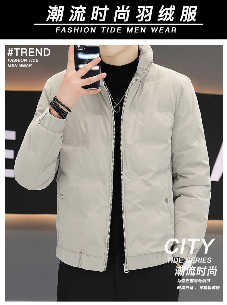 KBXNG劲霸短款修身男士羽绒服冬装新款休闲立领夹克轻薄保暖加厚外套 深灰色 L 80到95斤