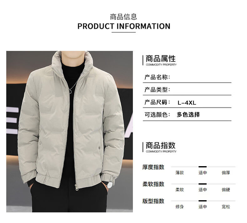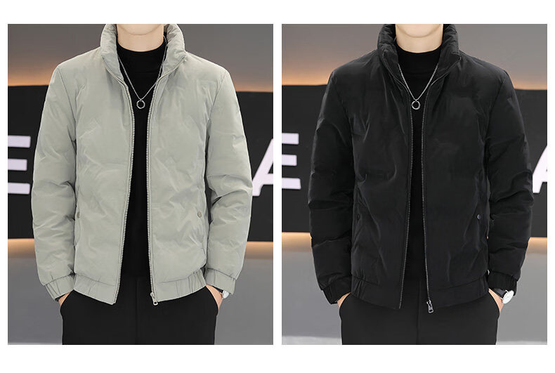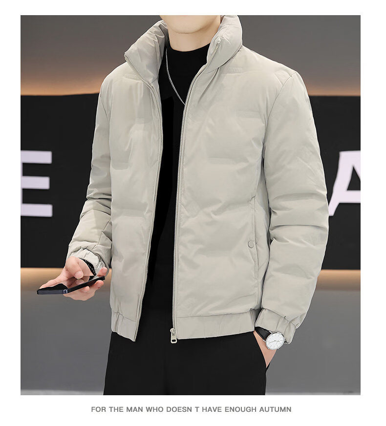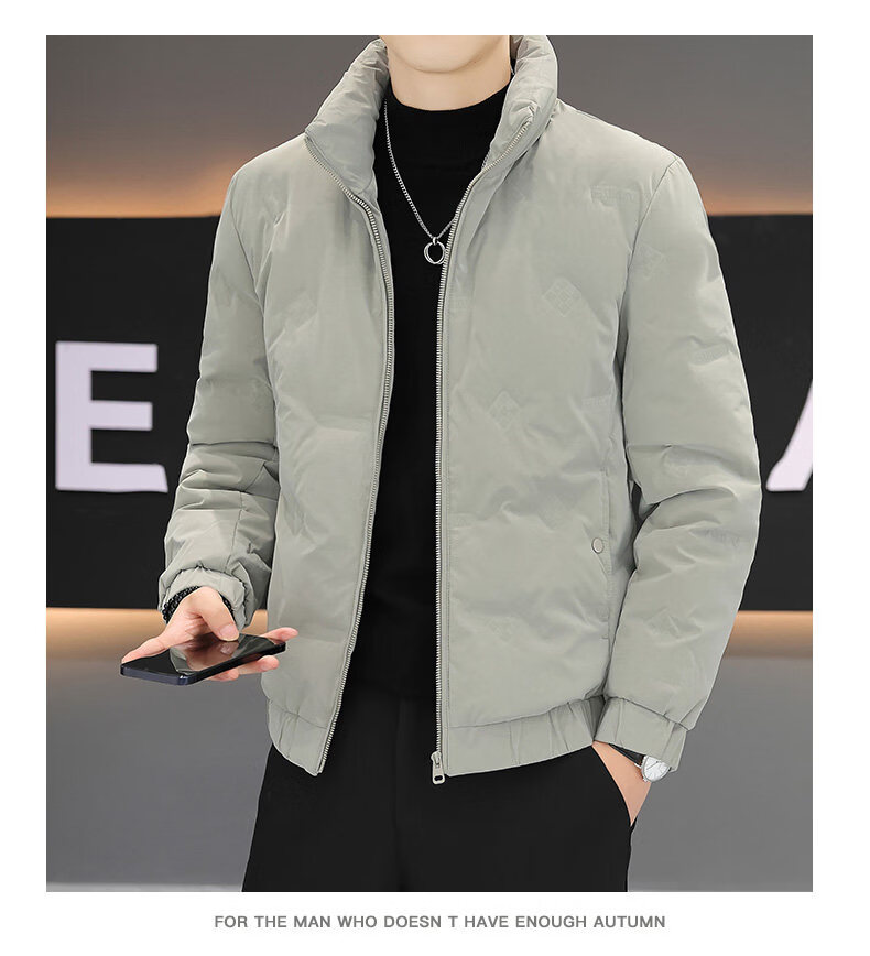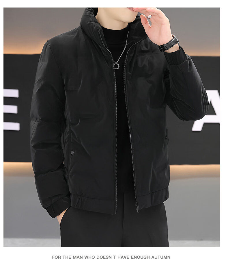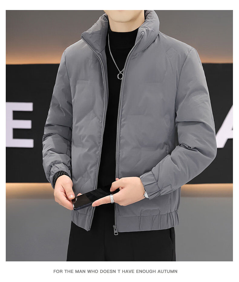 KBXNG劲霸短款修身男士羽绒服冬装新款休闲立领夹克轻薄保暖加厚外套 深灰色 L 80到95斤