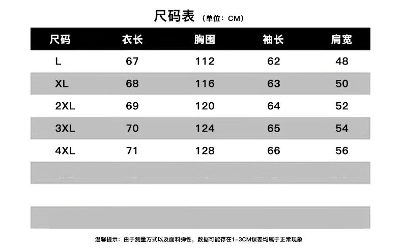 China (cm) 165 / 88-90 170 / 96-98 175 / 108-110 180 / 118-122 185 / 126-130