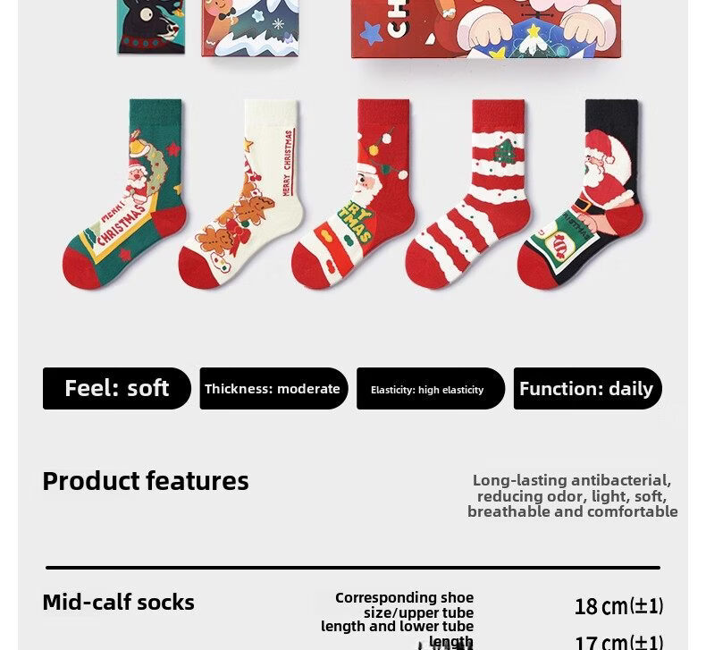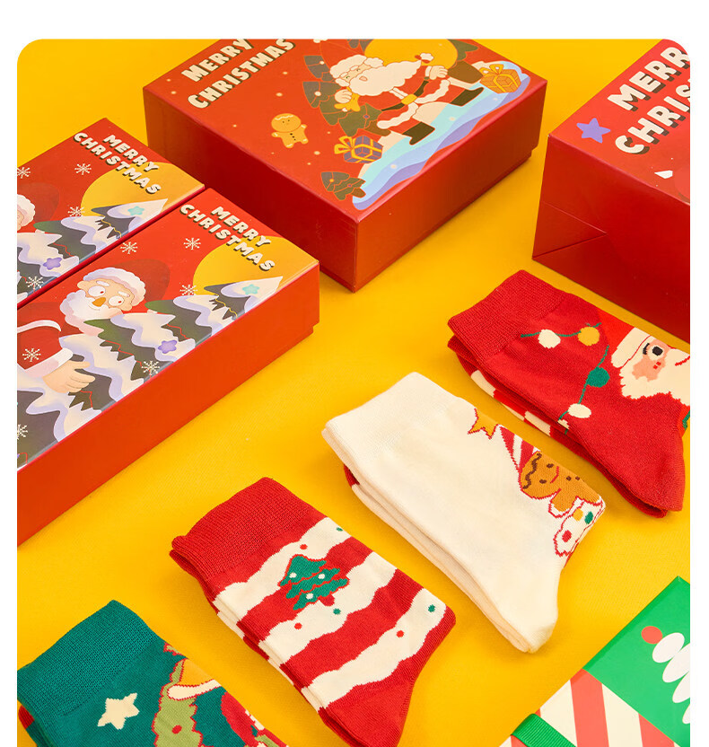 Pami Christmas Socks Women's Spring and Summer Mid-Tube Socks Cartoon Animated Christmas Gifts Spring Warm Parents Socks Gift Bag Christmas Socks Set B-Pack 5 pairs One size fits all (suitable for sizes 36-43) Contact customer service to write greeting cards