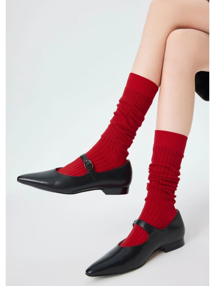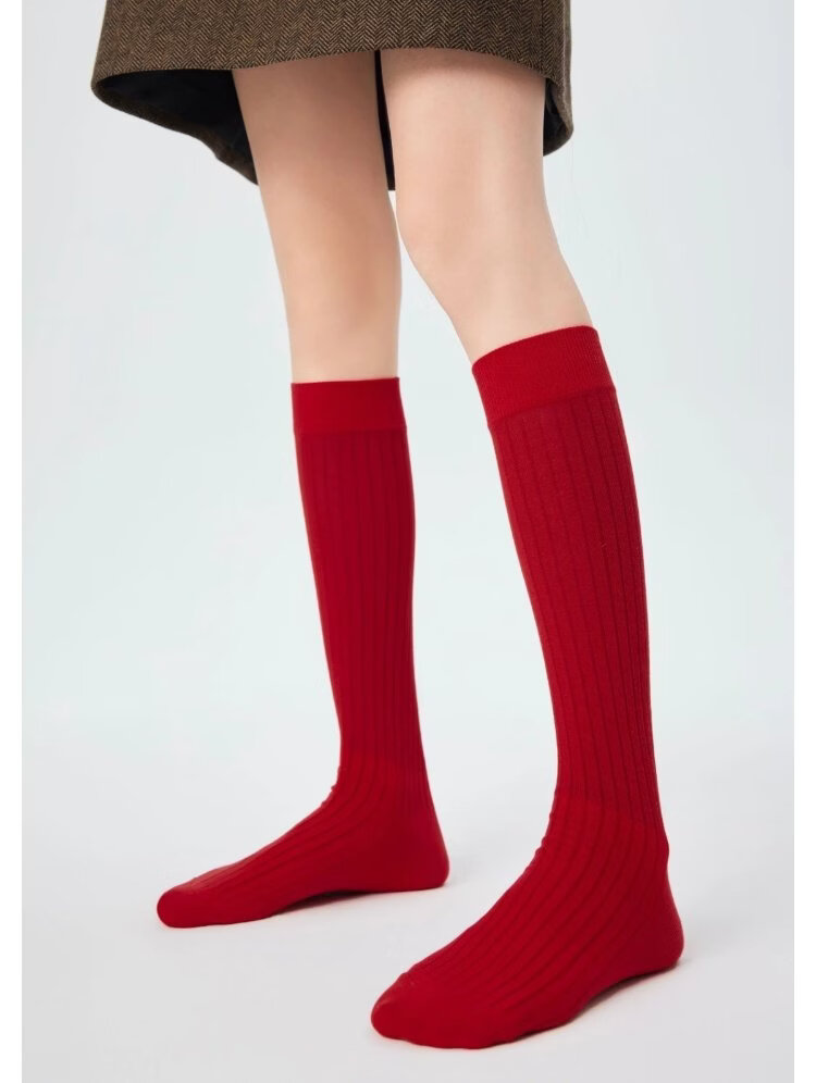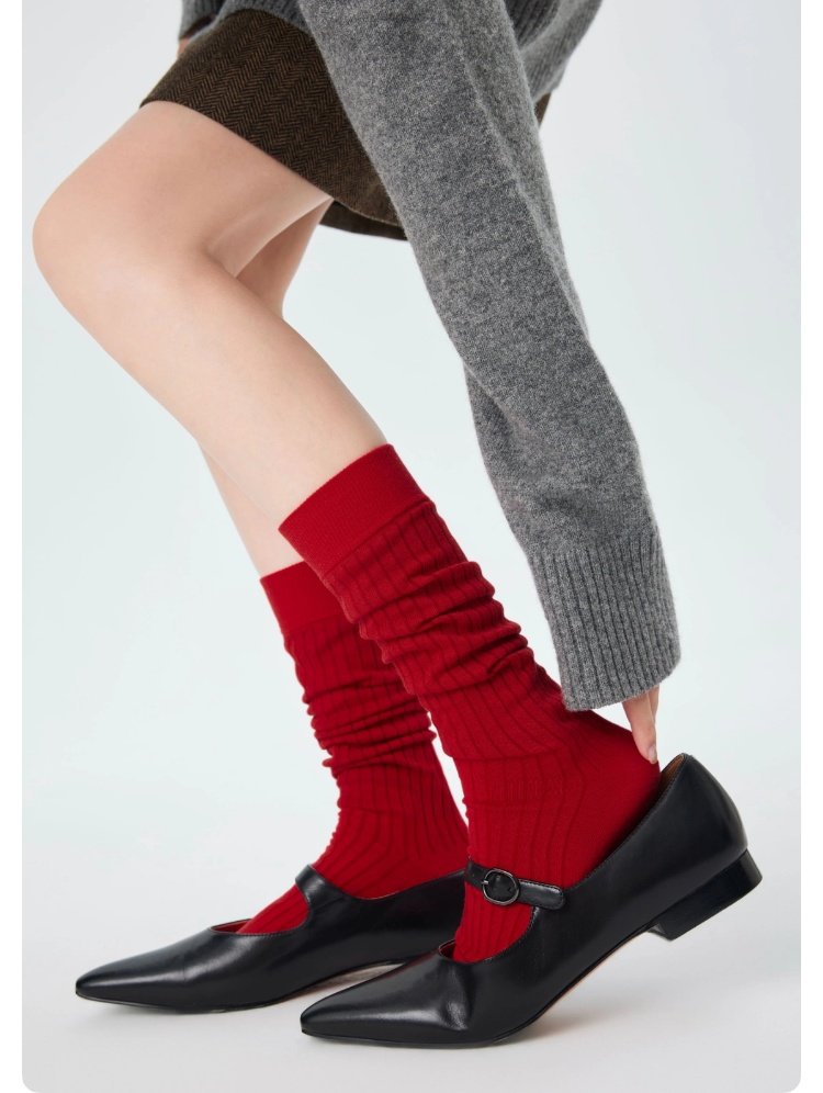 Shangsen faction (senpice) Shangsen red pile socks spring and autumn mid-calf stockings small leather shoes with pile socks pack 3 pairs one size fits all size 35-39