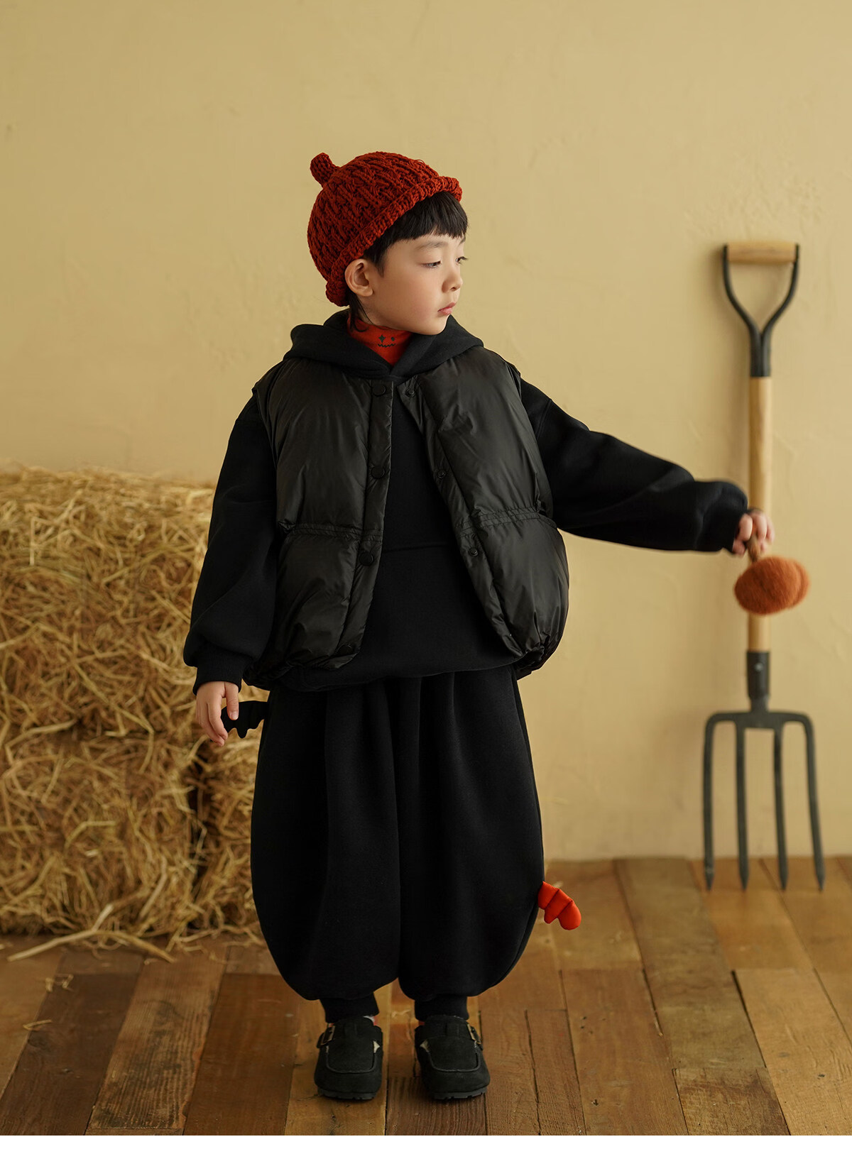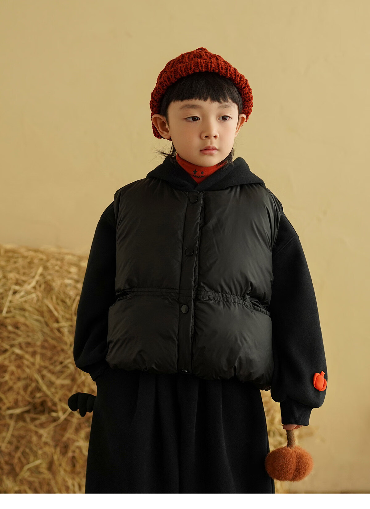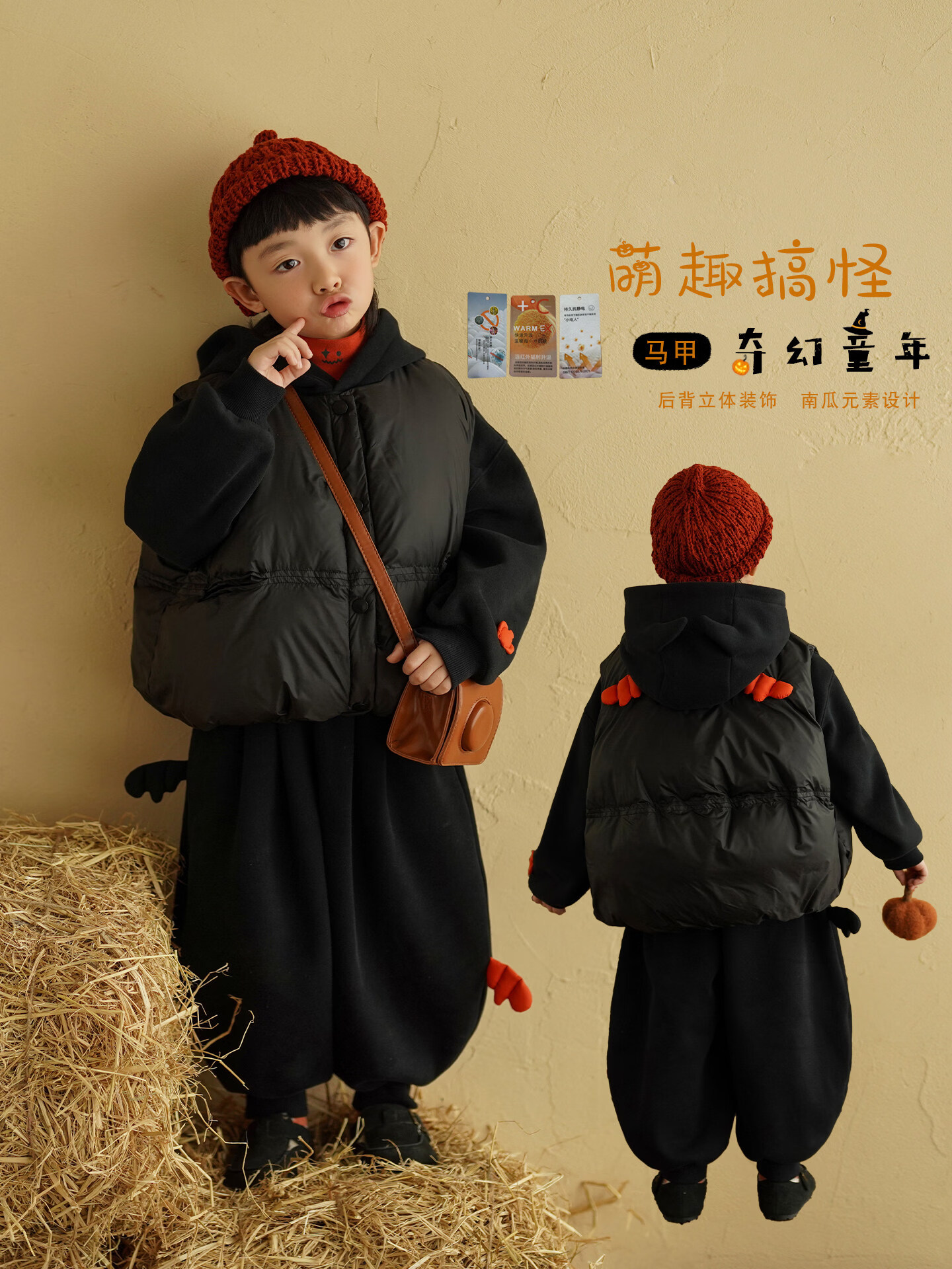 Yantaijia children's clothing boys cotton vest warm outer wear 2025 winter clothing children's black vest Korean style style waistcoat black without wings 80