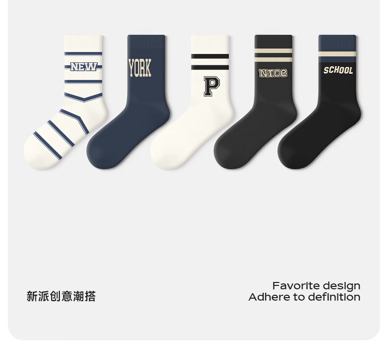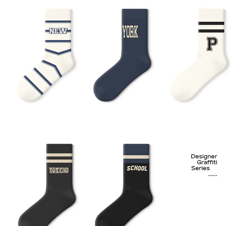 Pami socks men's summer mid-calf socks 2025 new style youth men's breathable sports letter basketball stockings cotton fantasy life-pack 5 pairs one size fits all (suitable for sizes 36-43)