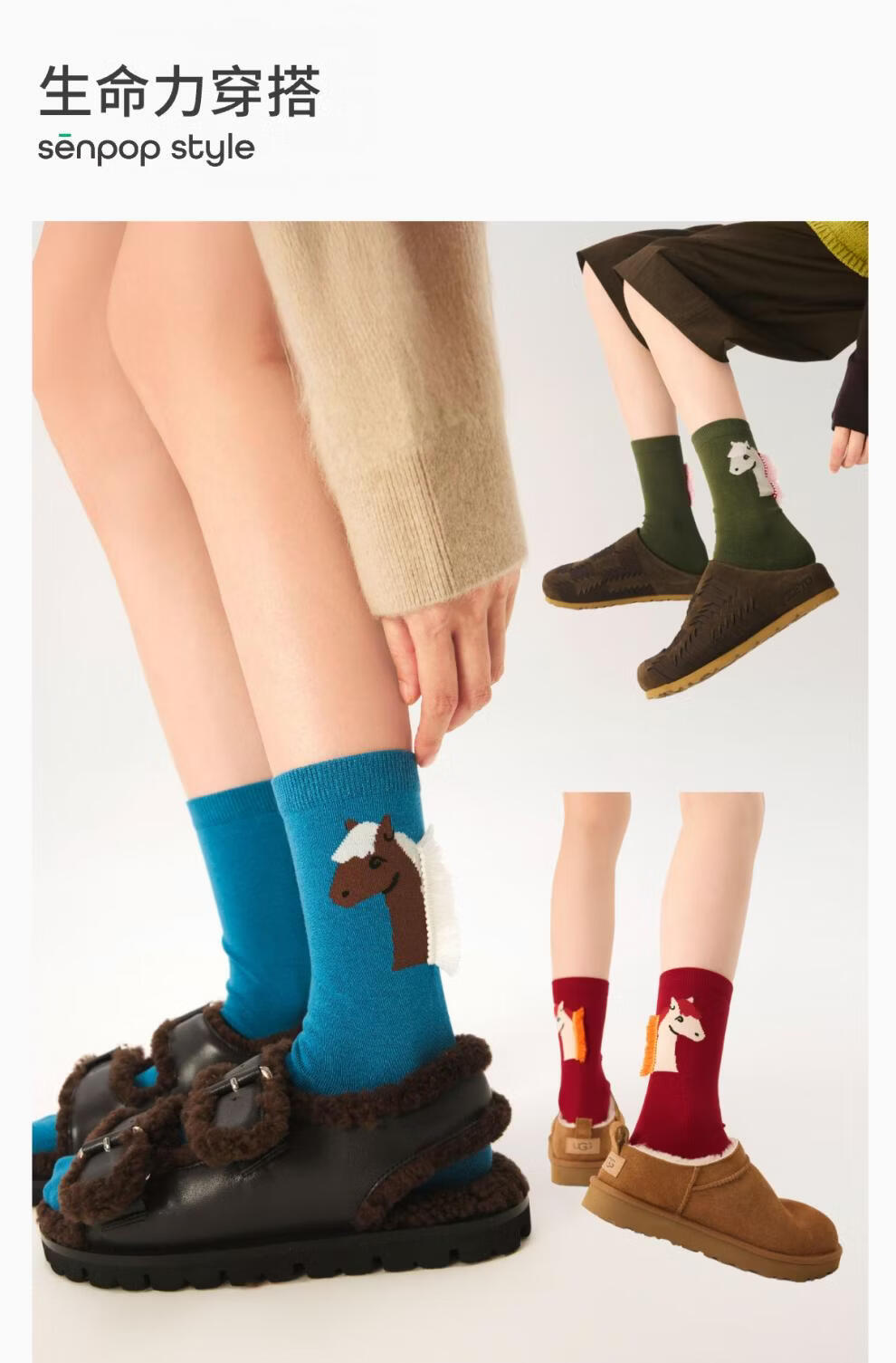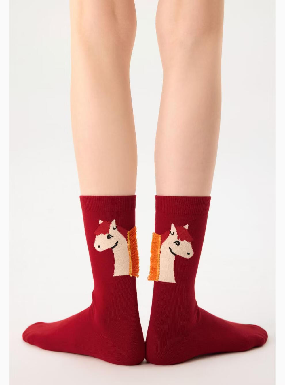 Shangsen Faction (senpice) Shangsen Red Zodiac Year Socks Winter Warm Cotton Socks New Year's Gift Horse Year Pile Socks Pack Red + Blue 2 Pairs One-size-fits-all Size 35-39