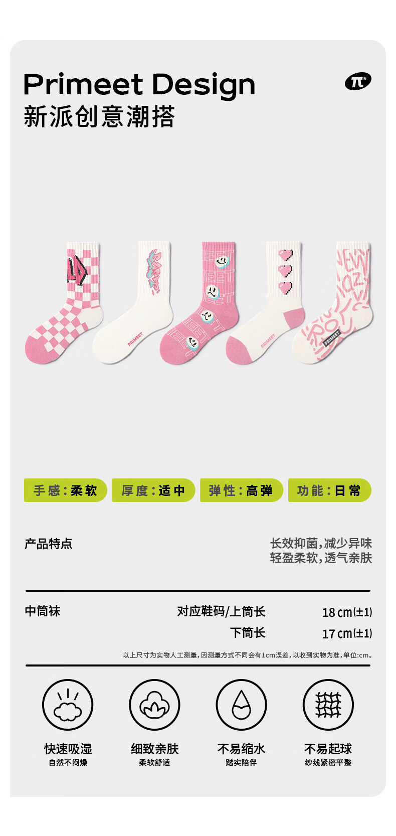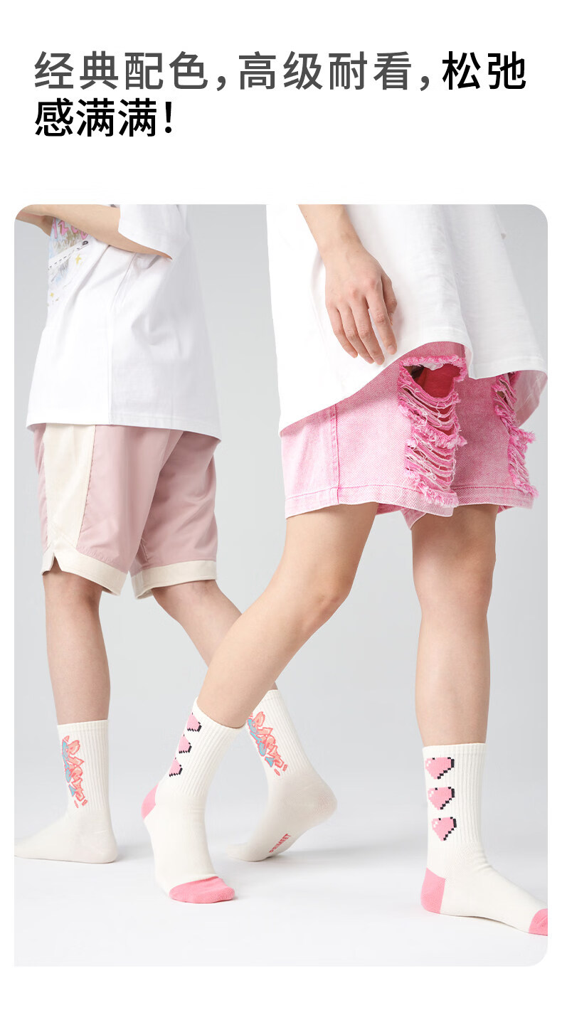 Pami (pami) pink socks women's ins trendy sports mid-calf socks cute dopamine internet celebrity spring and summer style 2025 new style pink trendy socks group A_couple style_(suitable for sizes 36-43) one size fits all five pairs 7A (36-39)