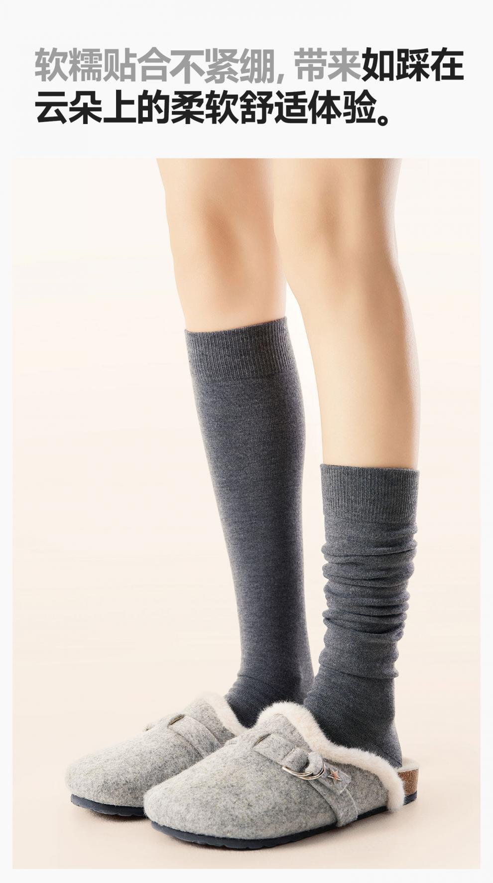Носки Pami для женщин осенью и зимой, утягивающие чулки, теплые и бархатные, утолщенные, не спадающие, ворсовые носки, высокая трубка, матовая теленка светло-серого цвета - в упаковке 1 пара, один размер подходит всем, 36-39 ярдов, ворсовые носки_не скатываются_не стягивают ноги