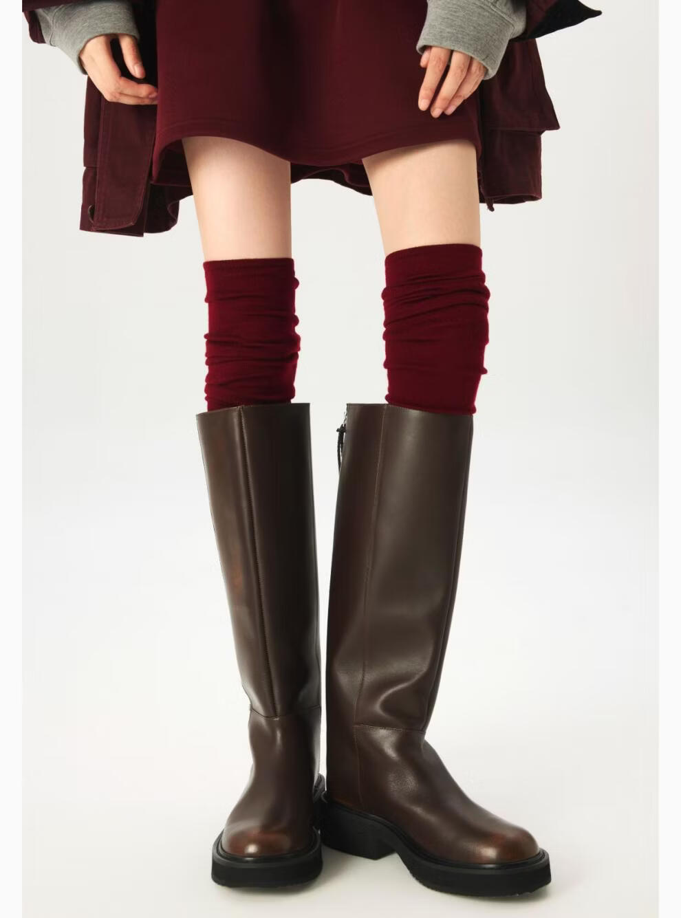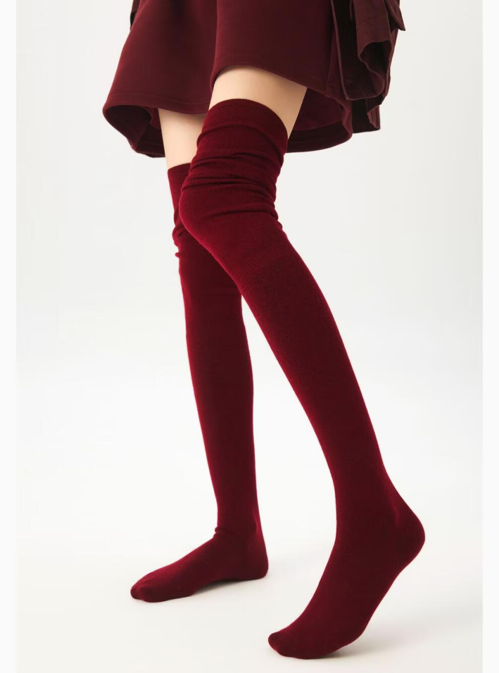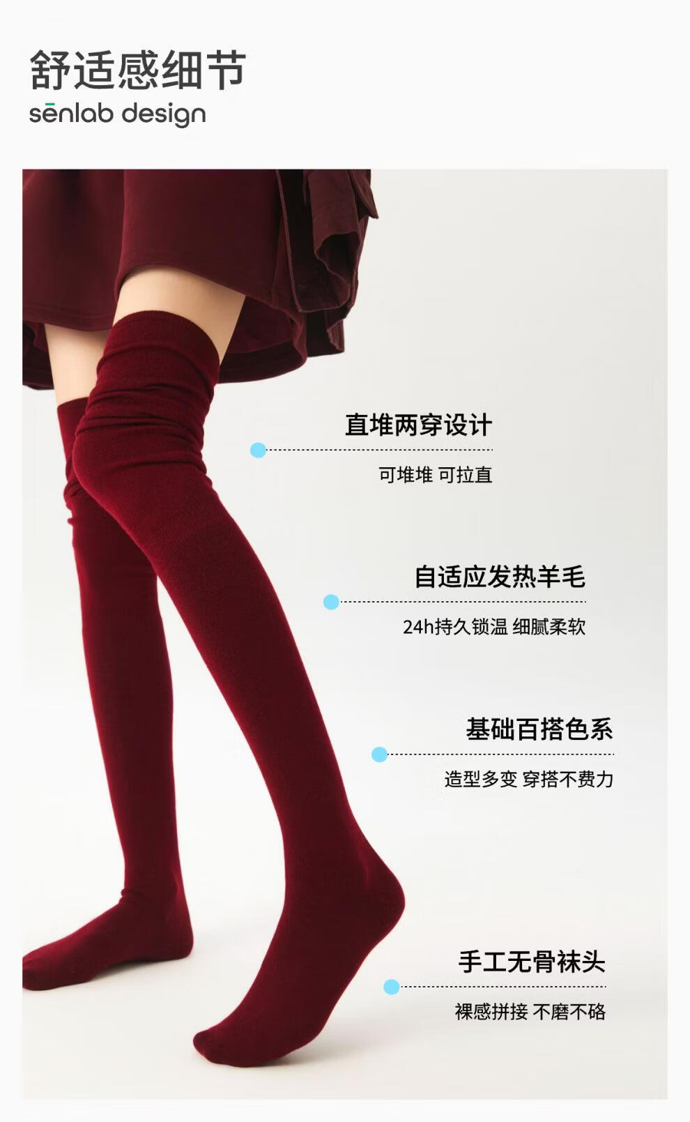 Uemori faction (senpice) Uemori red wool stockings women's autumn and winter high stockings knee protection over-the-knee socks over-the-knee wool red one size fits all size 35-39