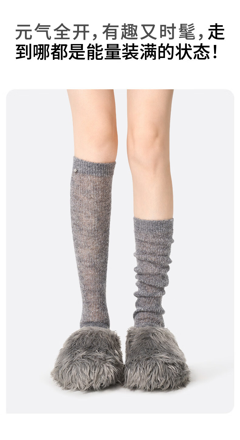 Pami PRIMEET/Pami gray calf socks autumn and winter new stockings warm pile socks miu stockings dark gray - pack 1 pair one size fits all (suitable for sizes 36-39)