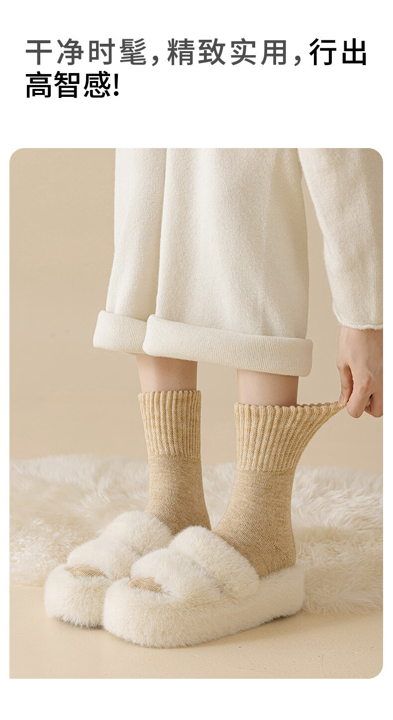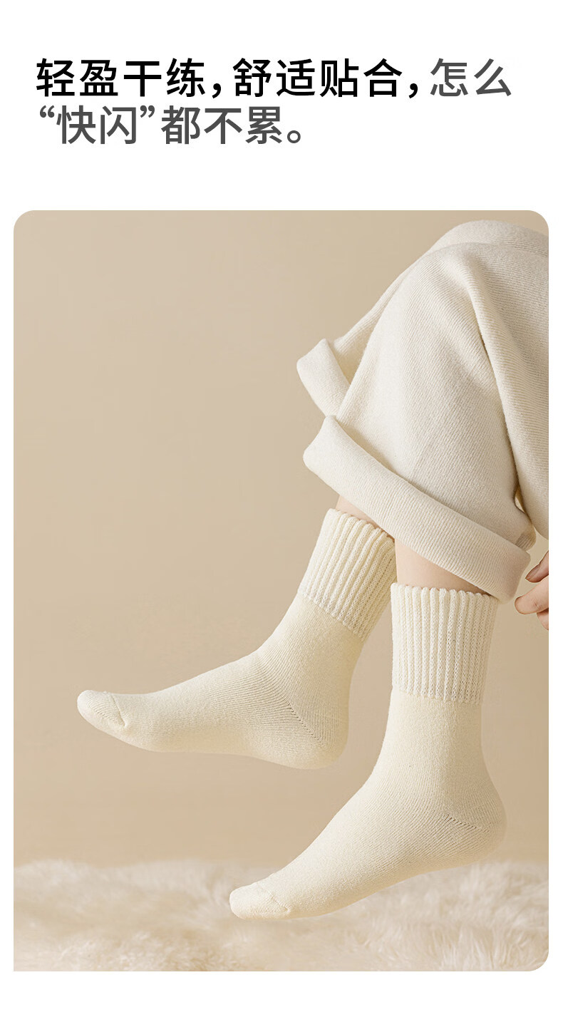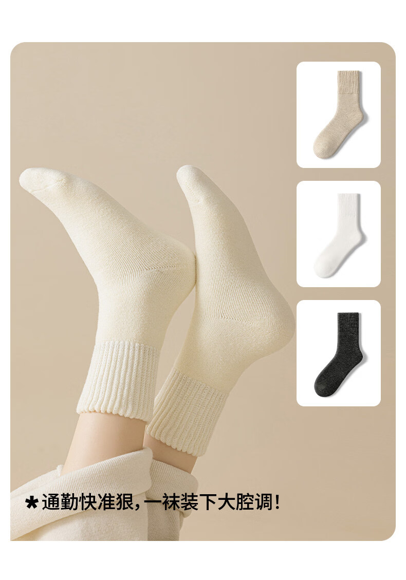 Pami socks women's autumn and winter thickened velvet warm mid-calf socks white winter 2025 new women's confinement socks cotton thermal socks set A - pack 3 pairs one size fits all (suitable for sizes 36-39)