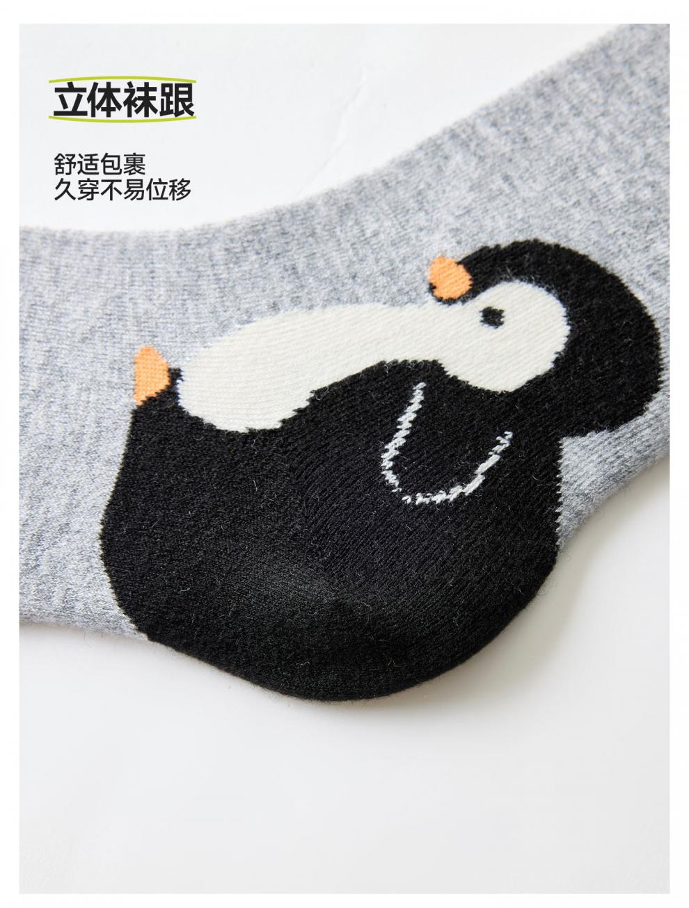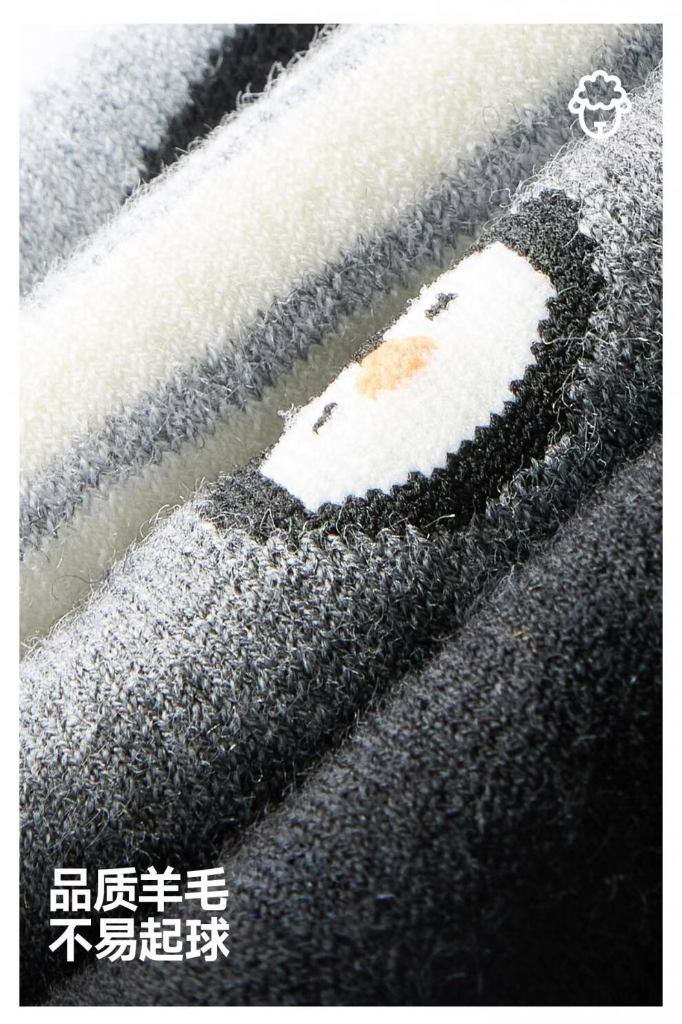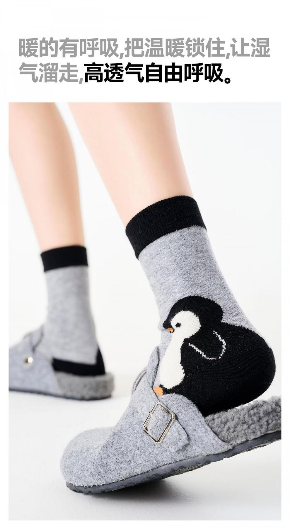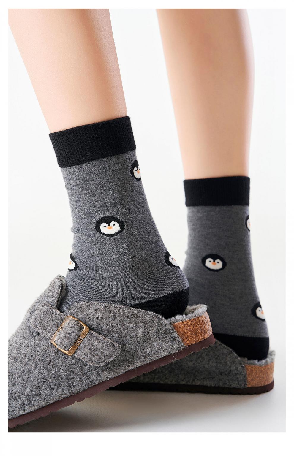 Pami 20% Merino Gray Socks Women's Autumn and Winter Thickened Warm Mid-Tube Socks Cartoon Penguin Pile Socks Cute Penguin-pack 4 pairs One size fits all (suitable for sizes 36-39)
