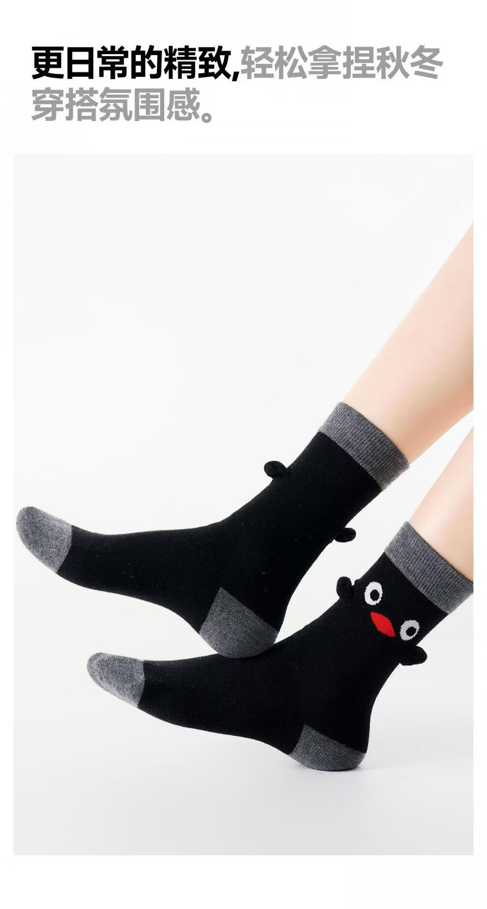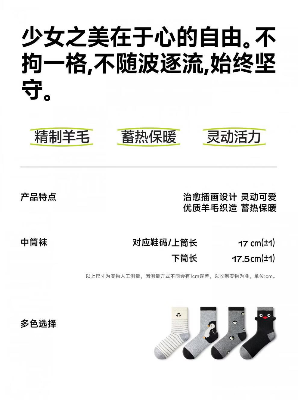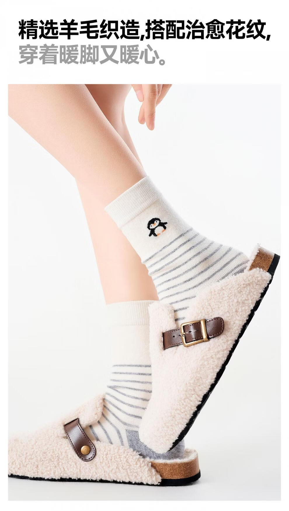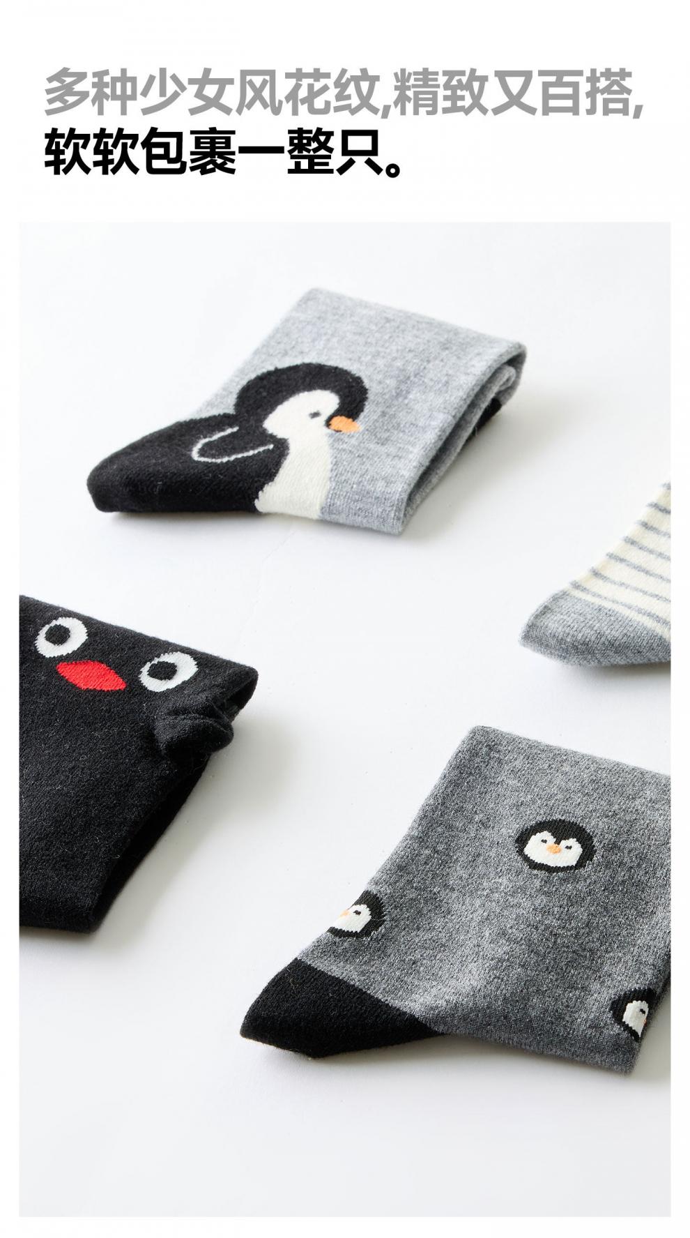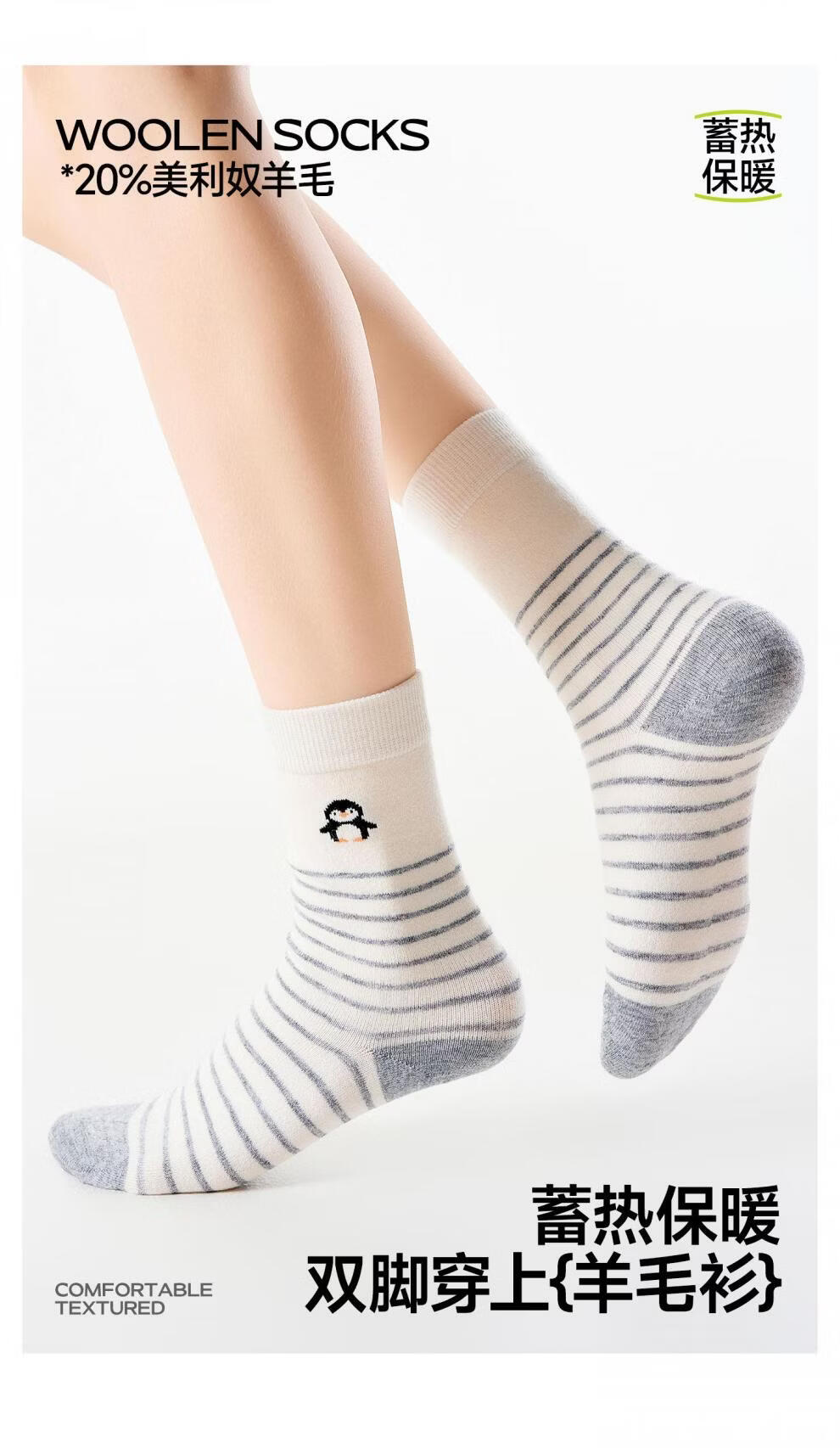 Pami 20% Merino Gray Socks Women's Autumn and Winter Thickened Warm Mid-Tube Socks Cartoon Penguin Pile Socks Cute Penguin-pack 4 pairs One size fits all (suitable for sizes 36-39)