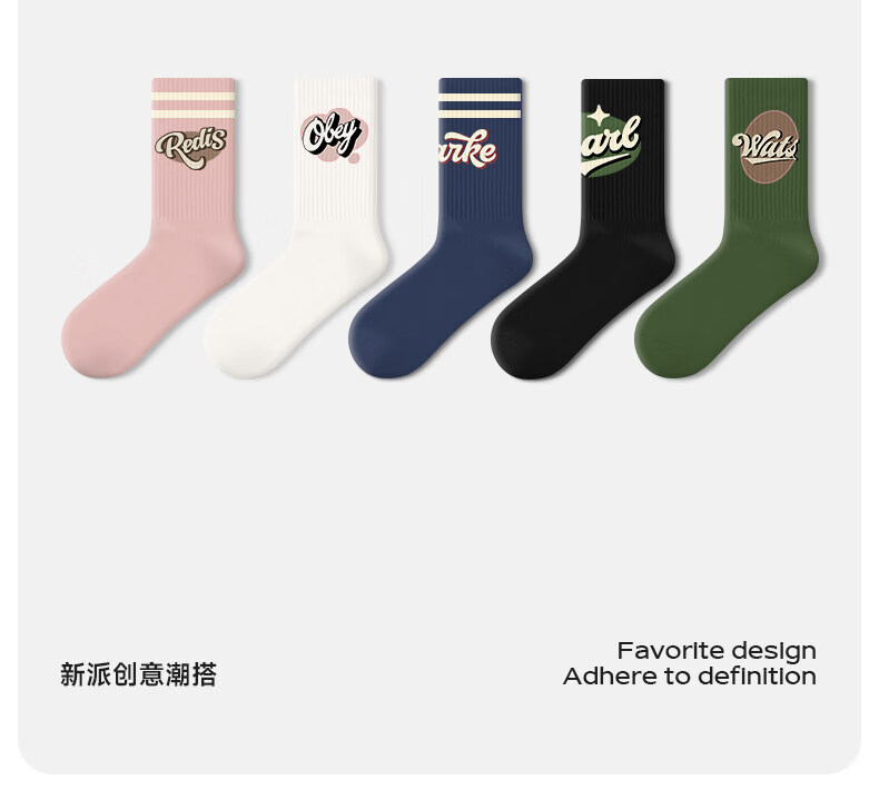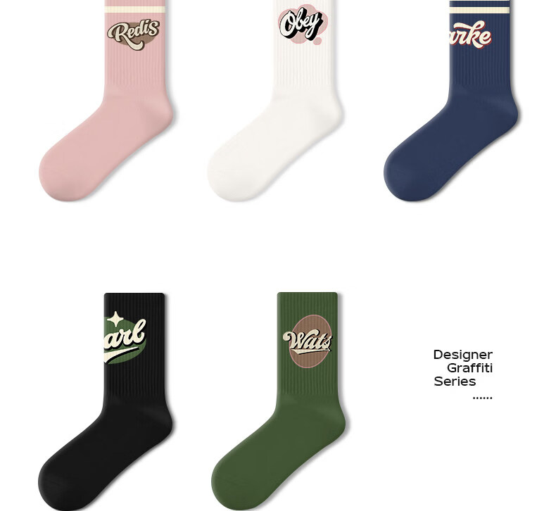 Pami socks for women spring and summer ins trend mid-tube socks American retro letter sports tennis spring and summer men's basketball stockings Graffiti World - Pack of 5 pairs One size fits all (suitable for sizes 36-43)